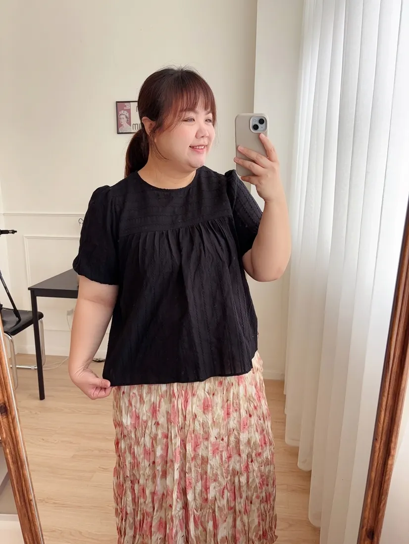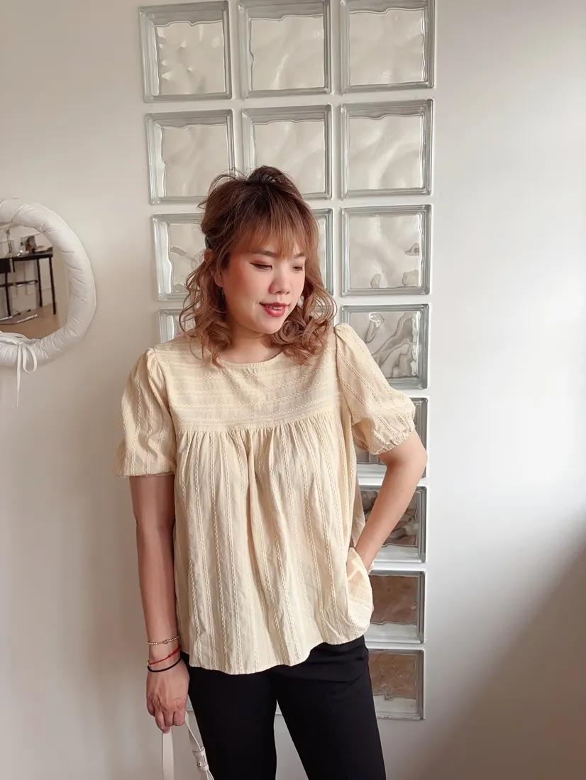 ✓ 肩線+胸前抓摺設計,穿上更加有女人味