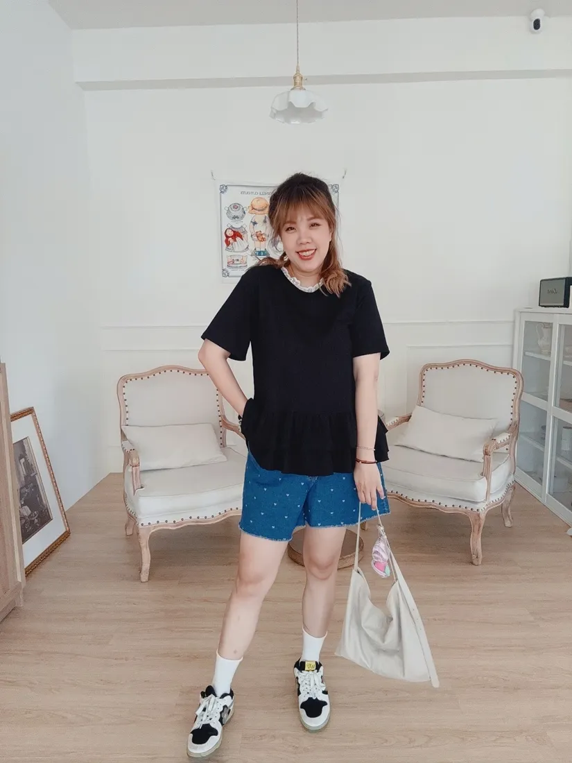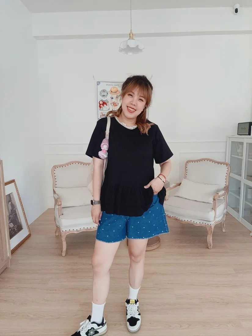 | 尺寸(平量/cm) | 領口寬 | 肩寬 | 胸寬 | 腋下寬 | 袖長 | 下擺寬 | 全長 | 實穿說明 |