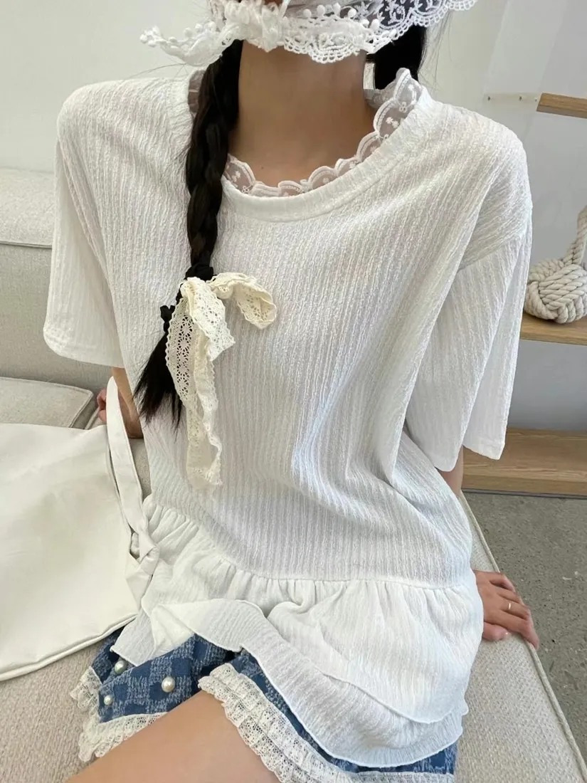 ✓ 領口有加寬設計,拼接蕾絲綴飾