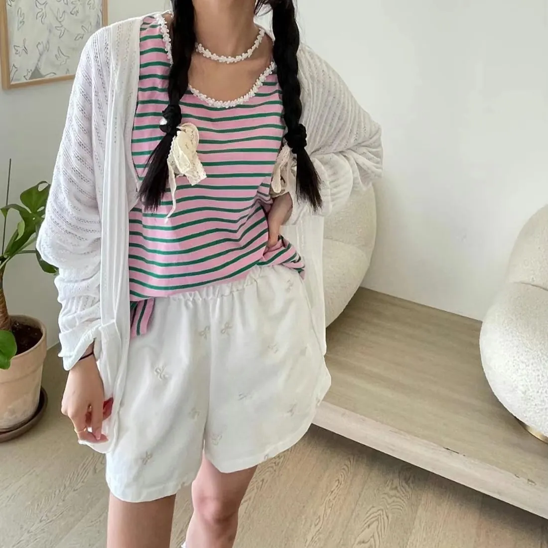 ✓ 不會太厚的針織,適合春秋、夏季室內冷氣房穿著