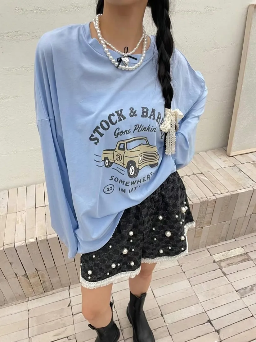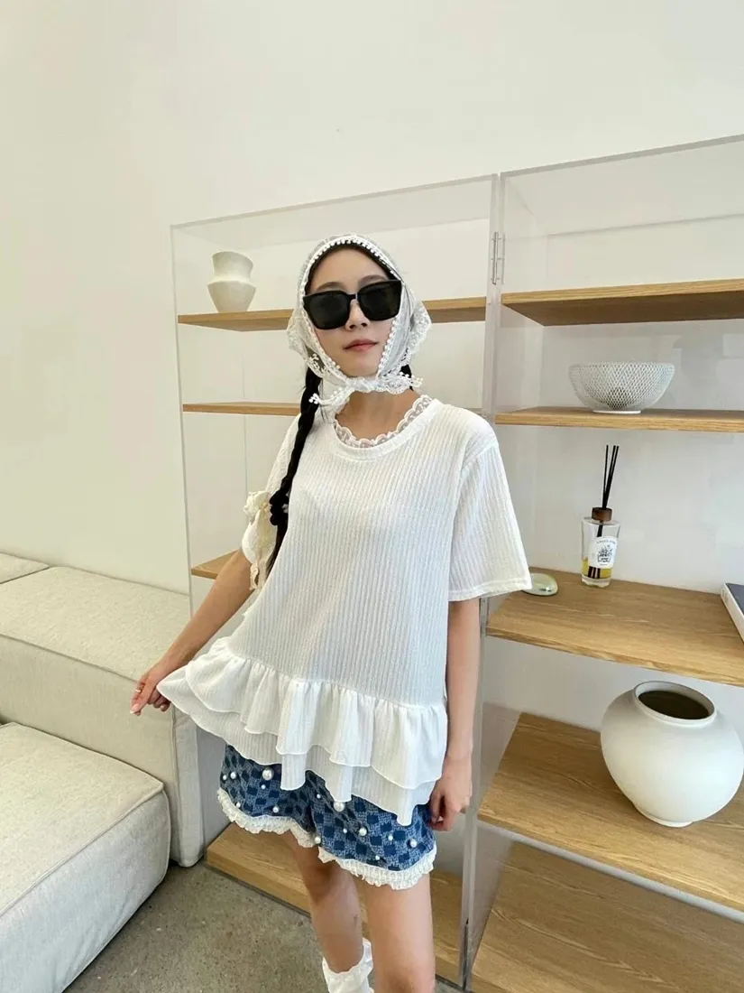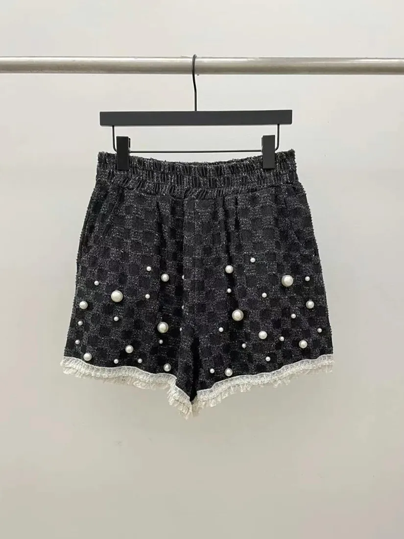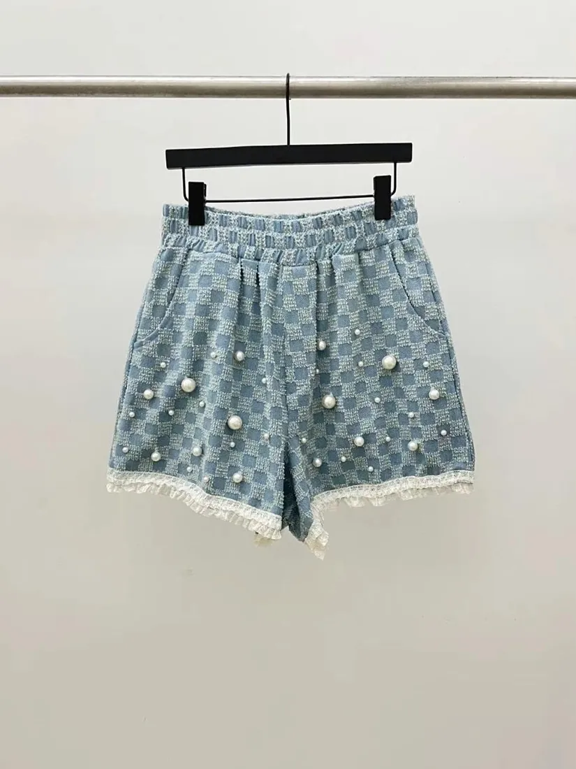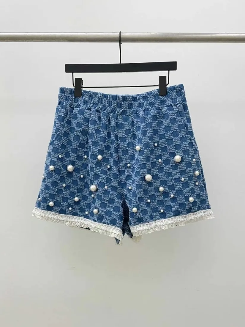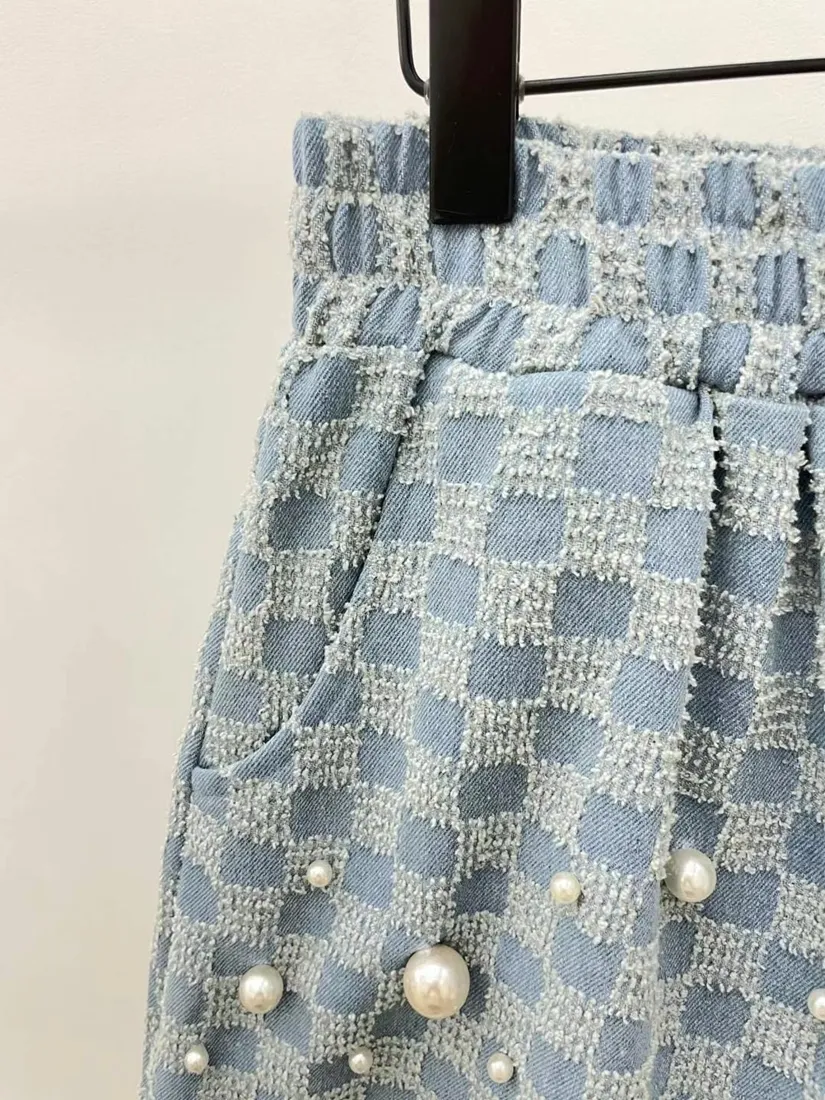 ✓ 布料表面抓破設計,釘大小珍珠裝飾(洗滌請務必手洗哦)