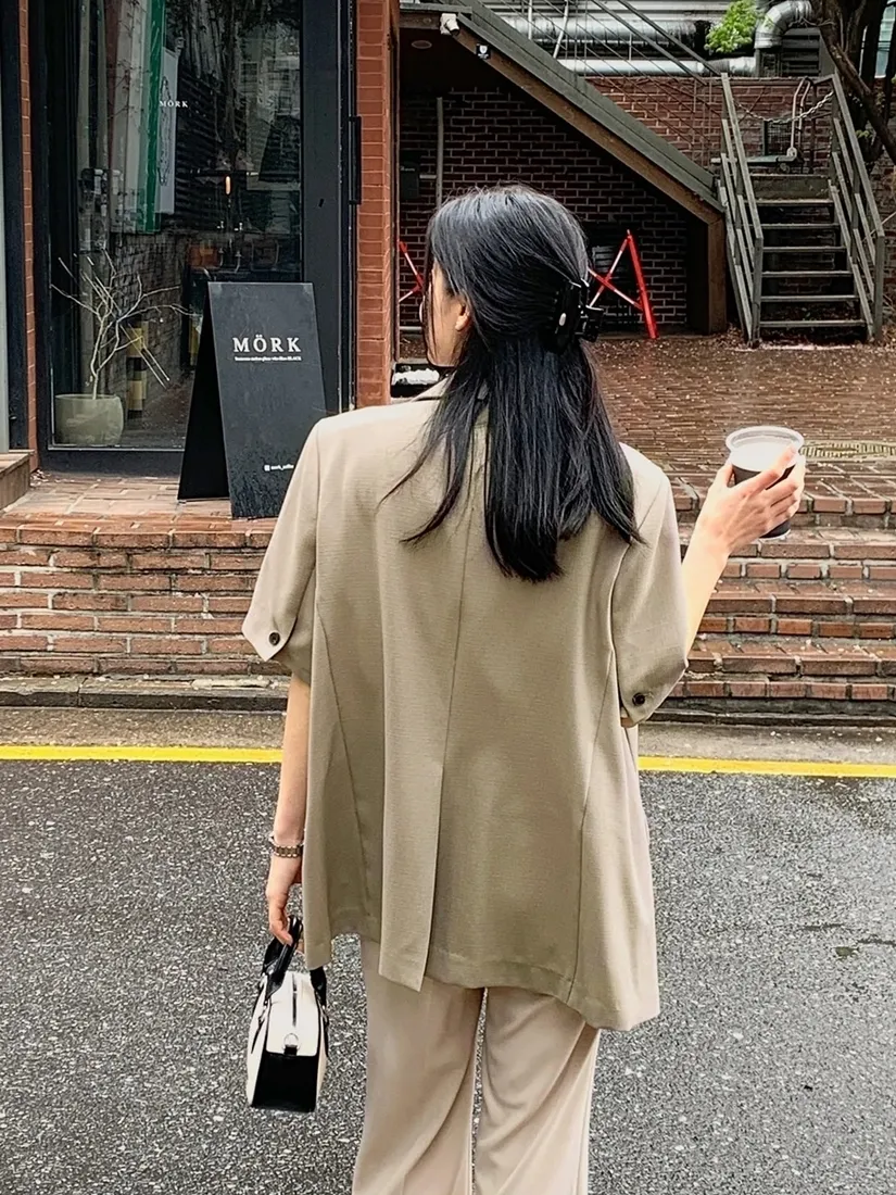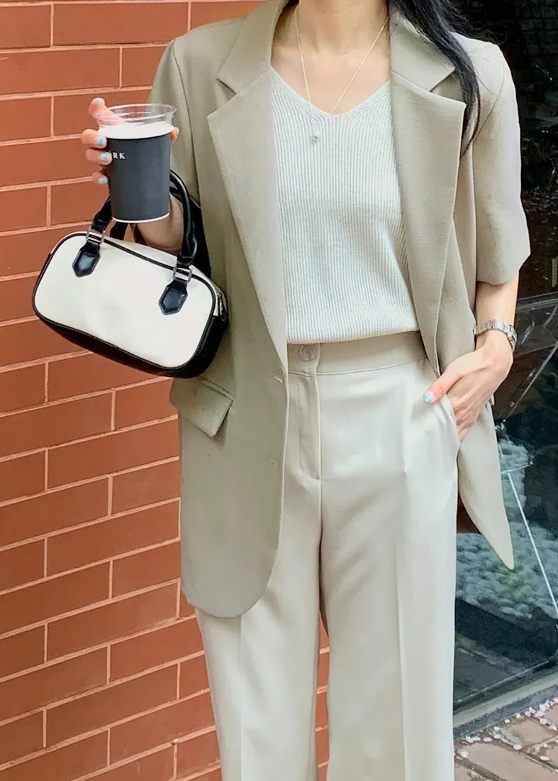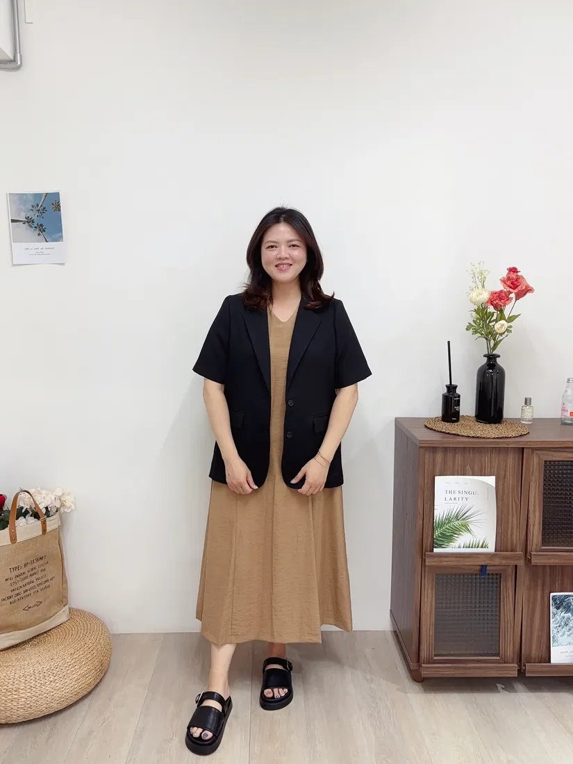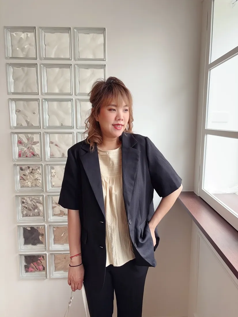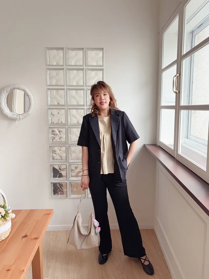 ✓ 夏季西裝面料,無內裡;布料微透光,不易皺,穿上輕薄無負擔