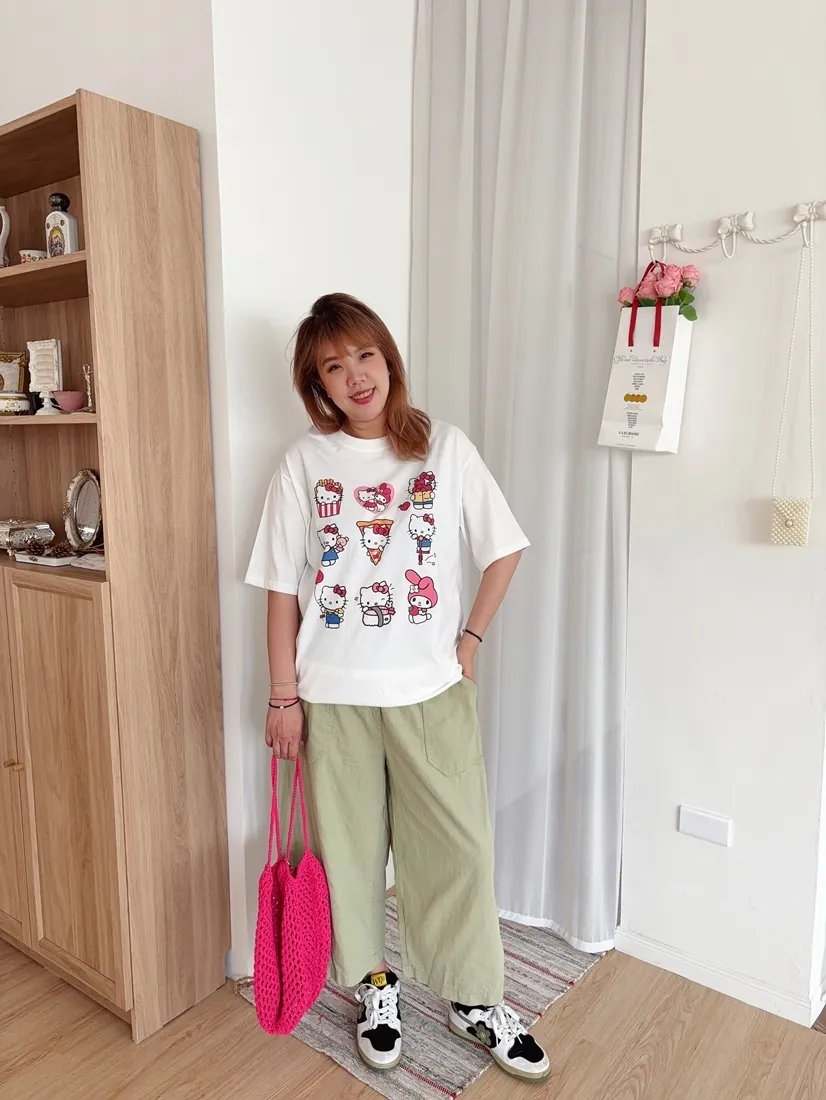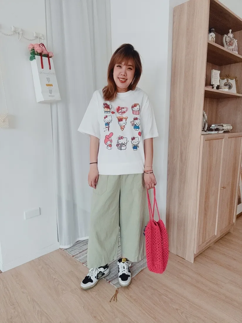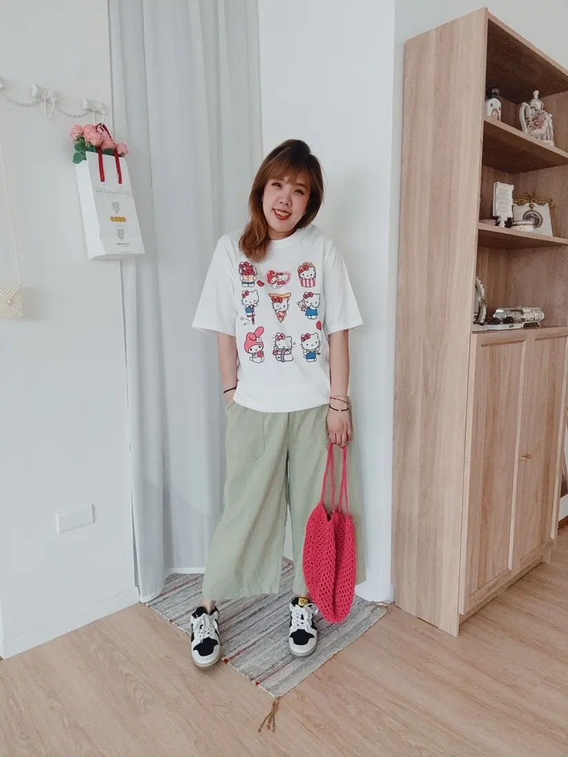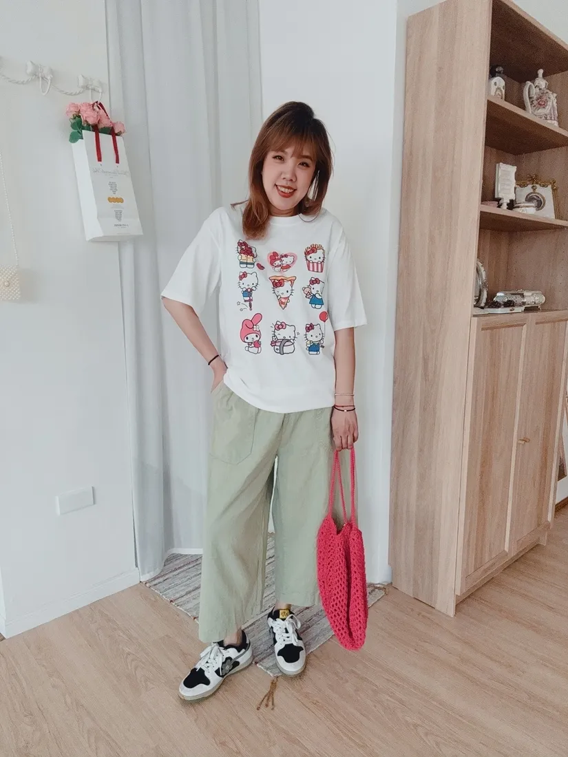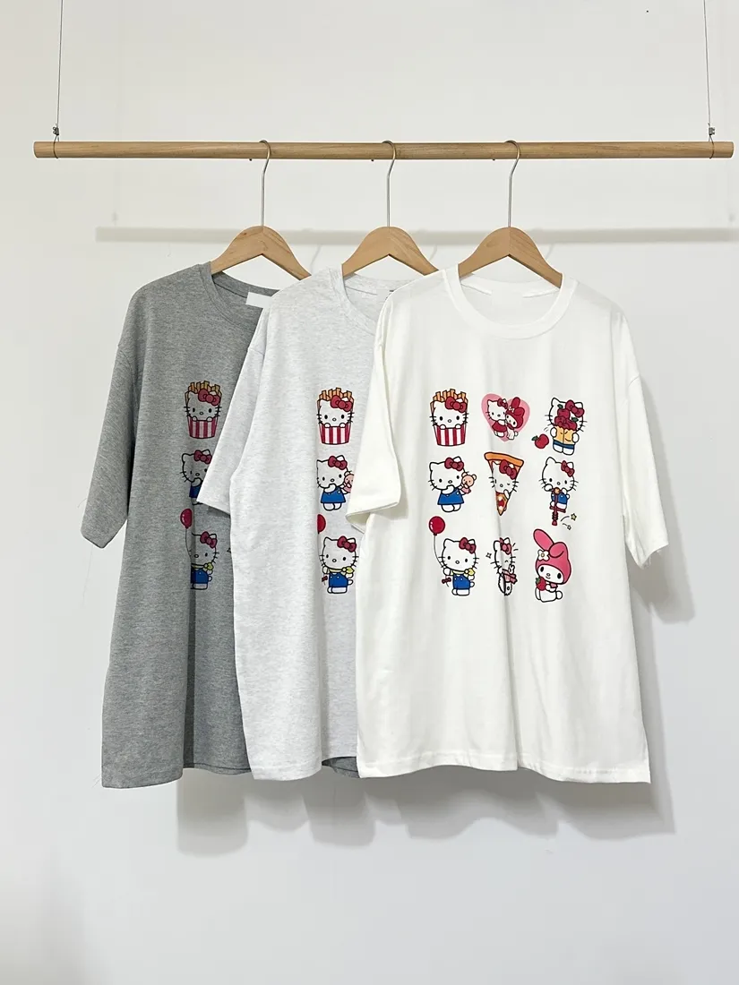 KITTY搭配美樂蒂,9個可愛圖案拼成的九宮格短T