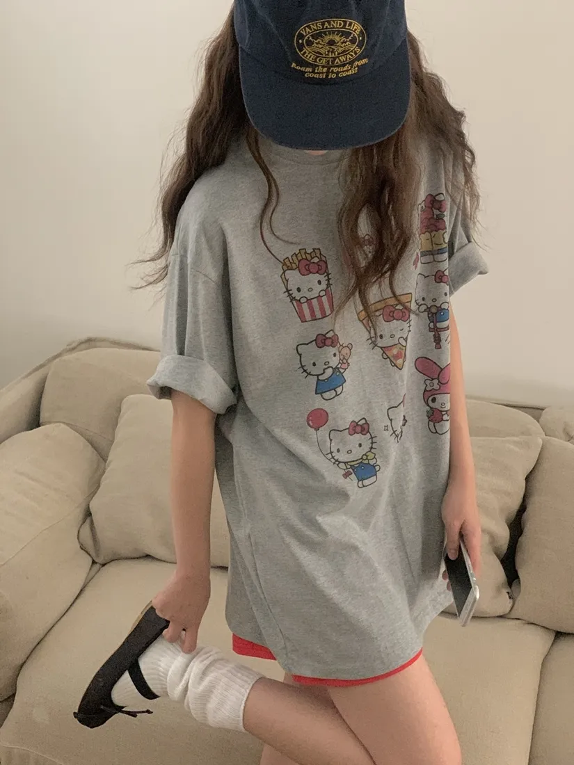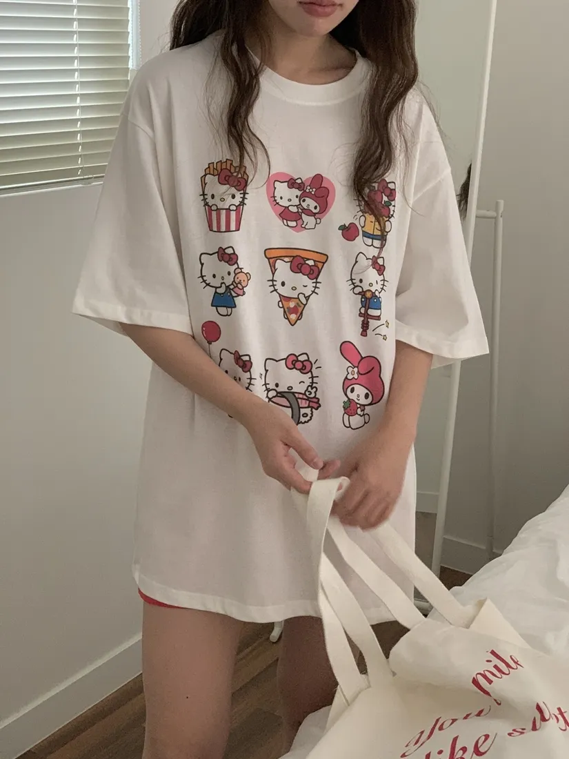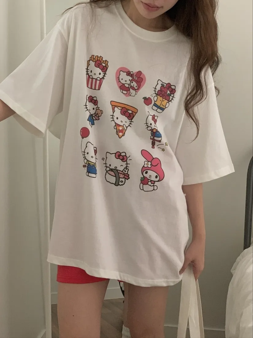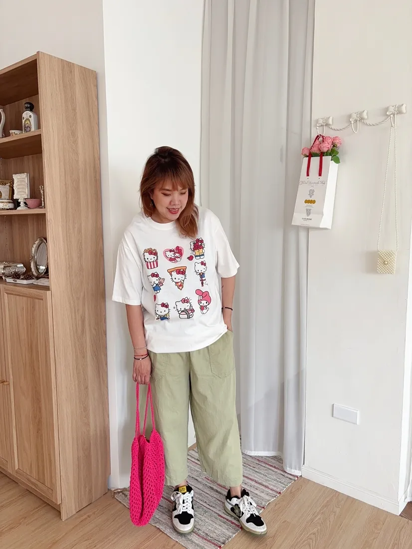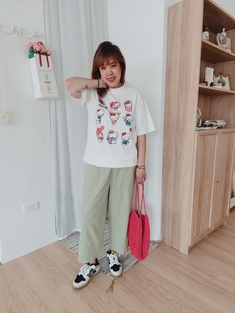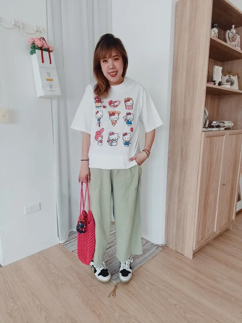 KITTY搭配美樂蒂,9個可愛圖案拼成的九宮格短T