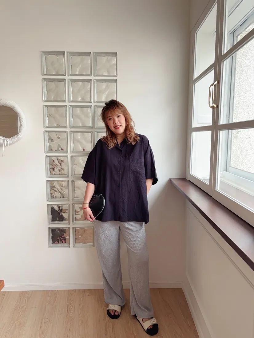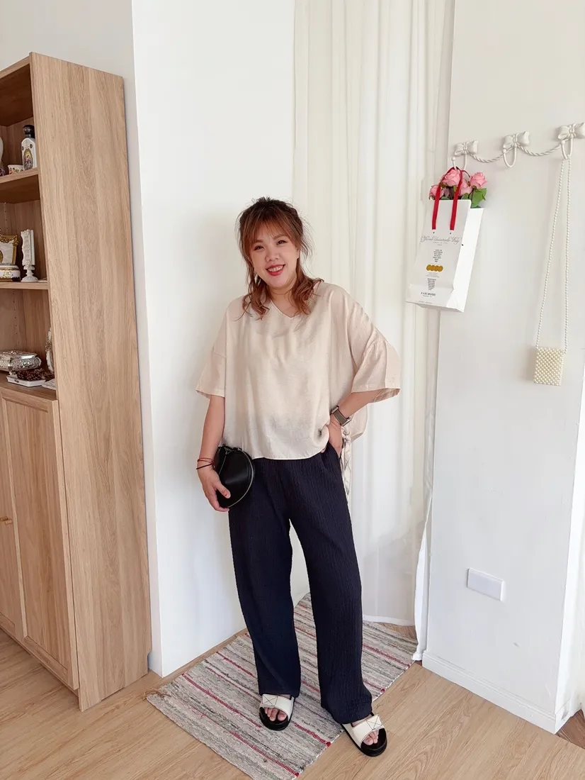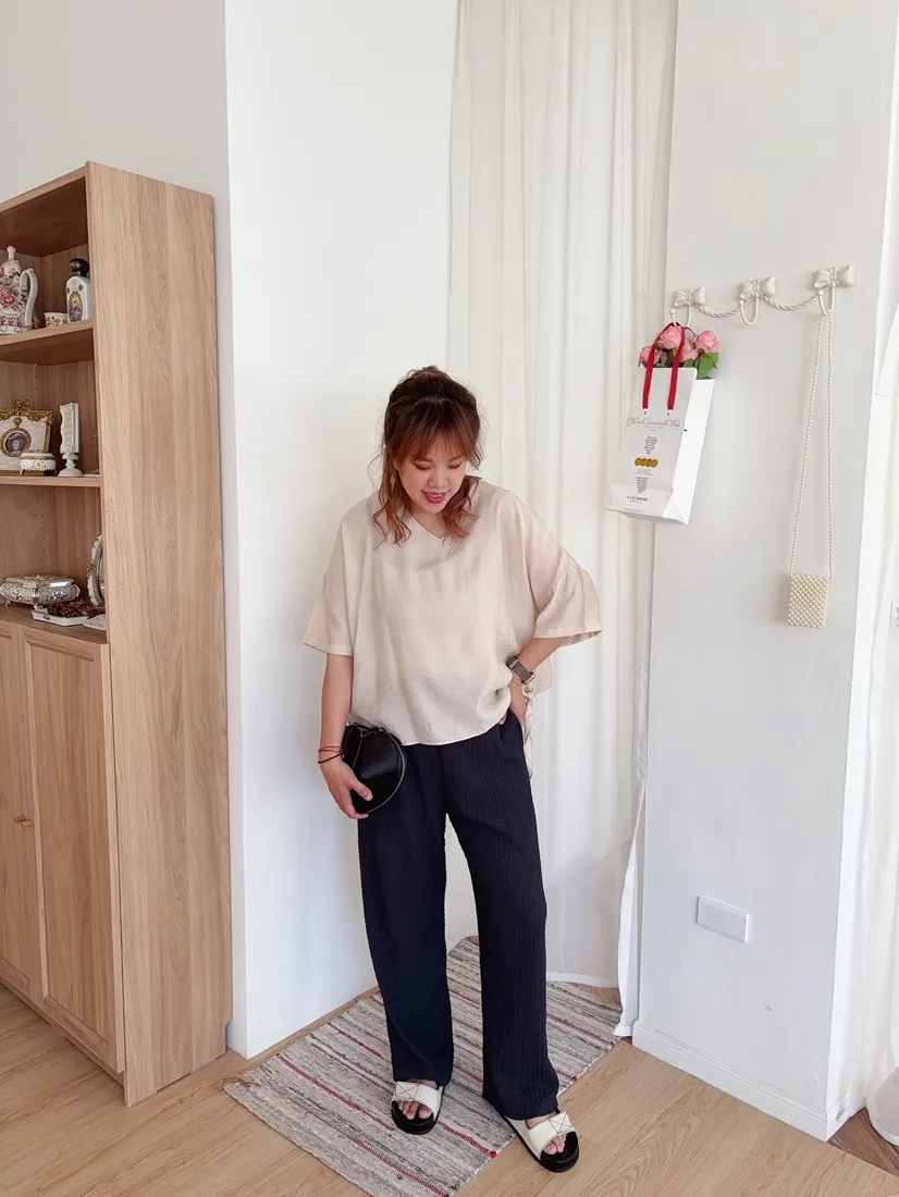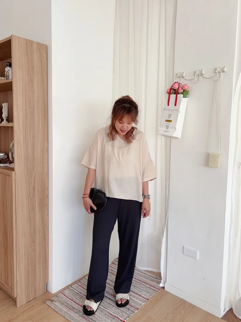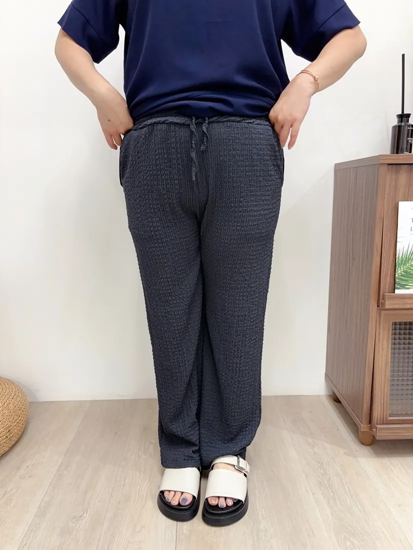✓ 直筒褲型,立體紋理有垂墜度,輕薄不貼腿
