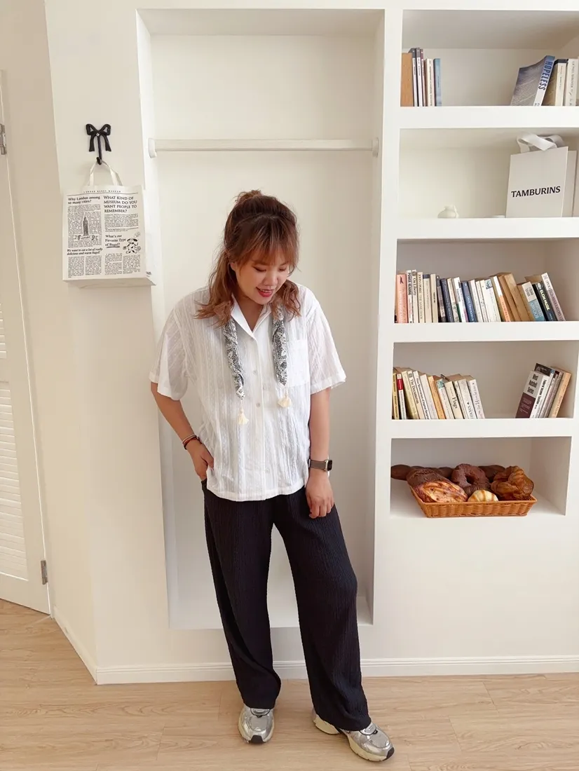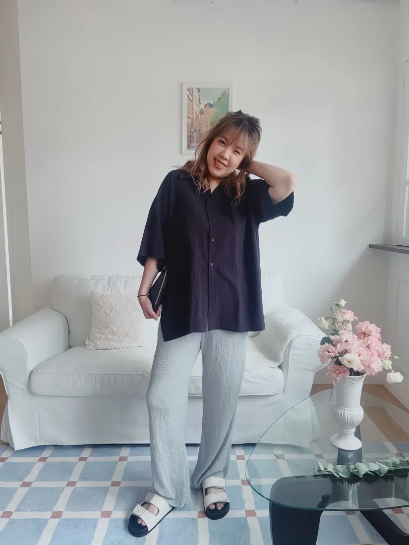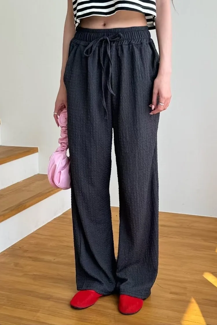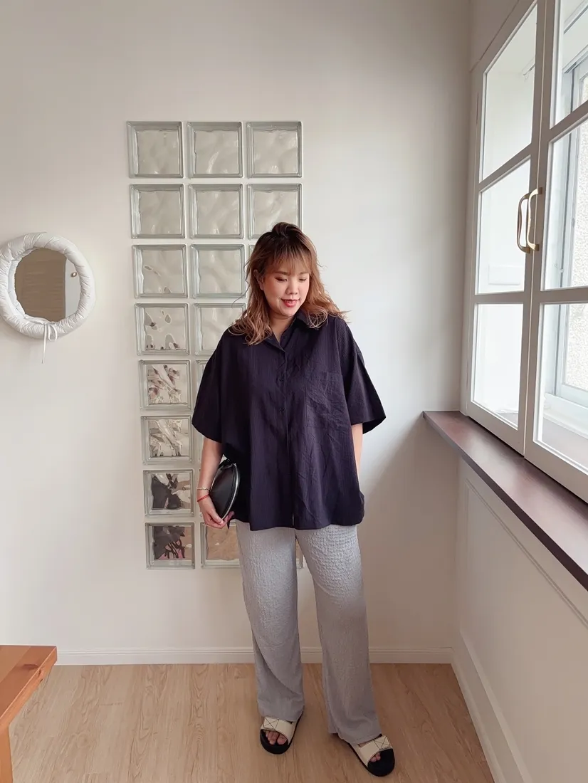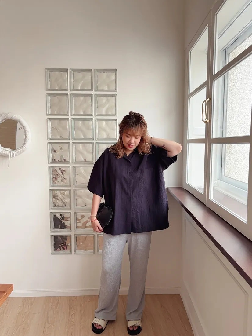 ✓ 直筒褲型,立體紋理有垂墜度,輕薄不貼腿