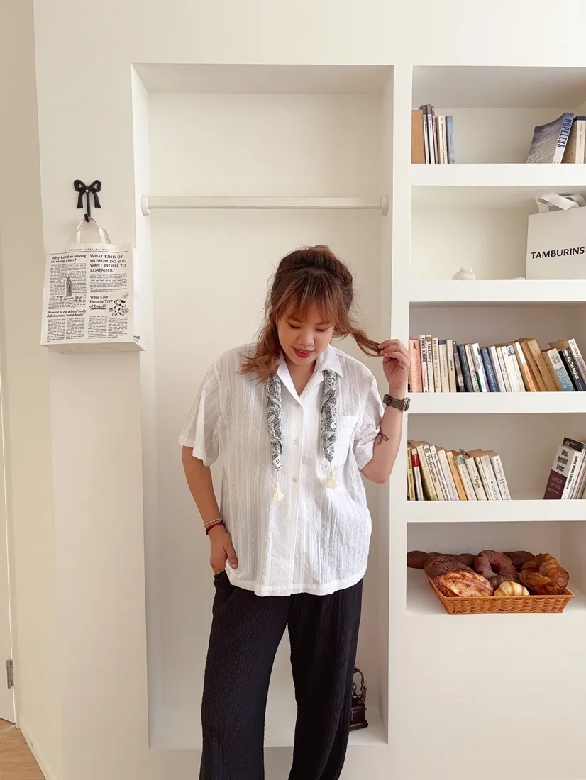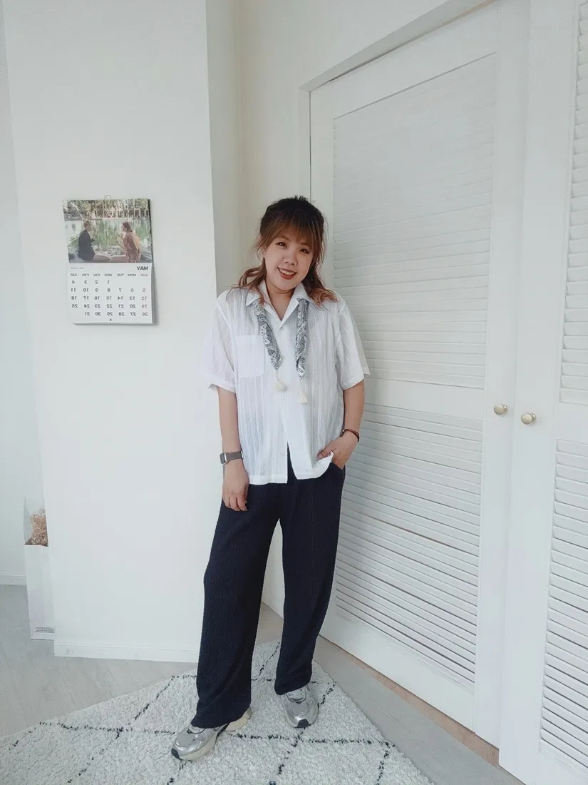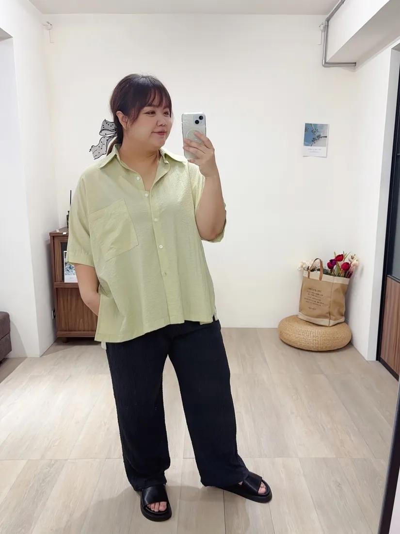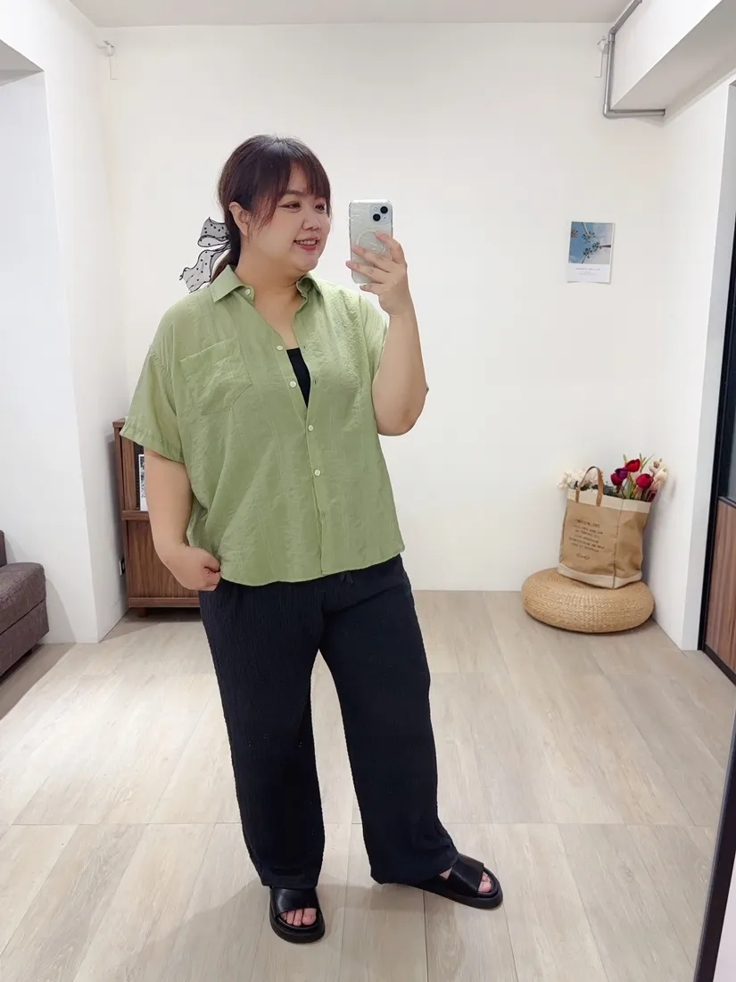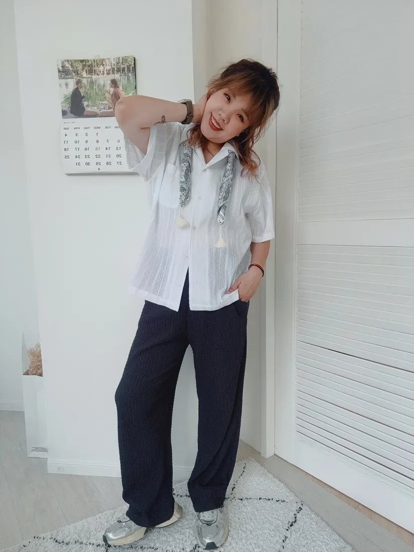 ✓ 柔軟皺皺面料,布料有延伸感,穿起來透氣舒服,不會癢