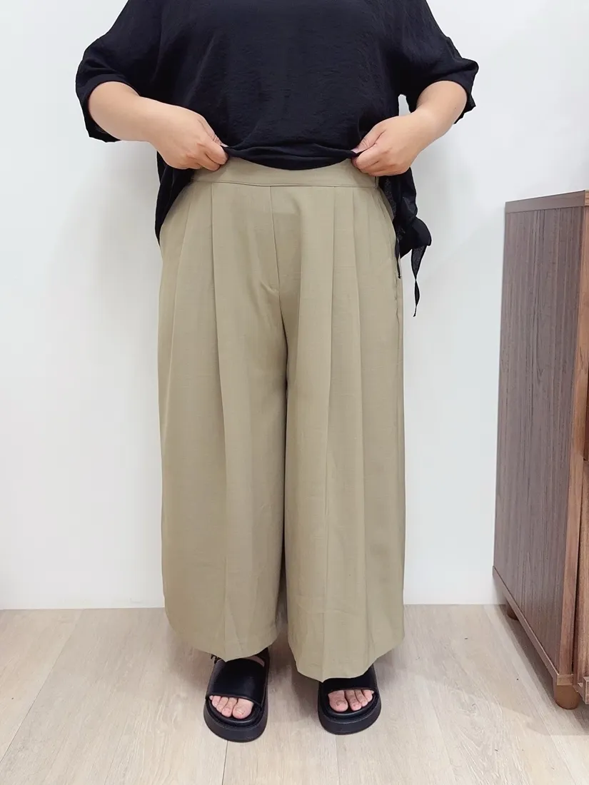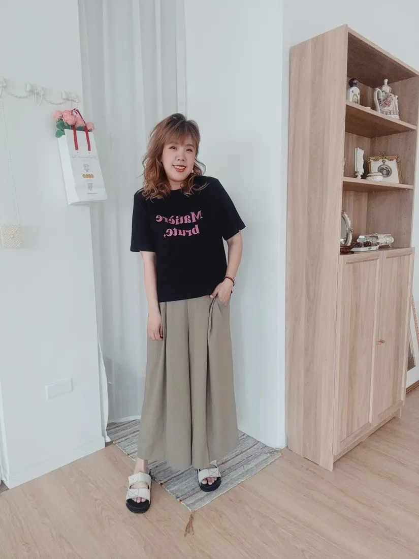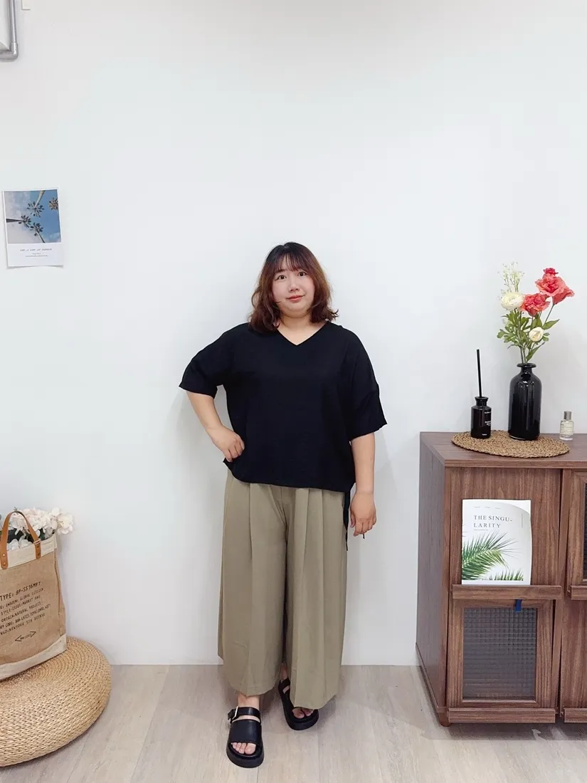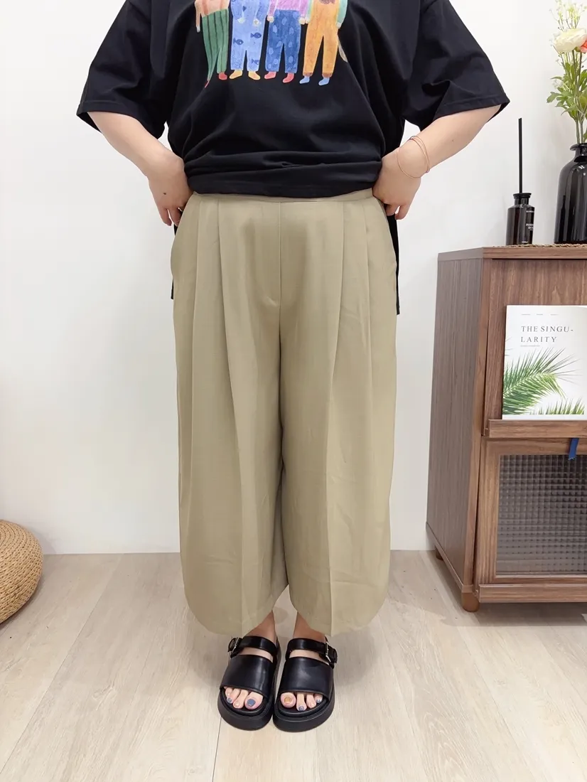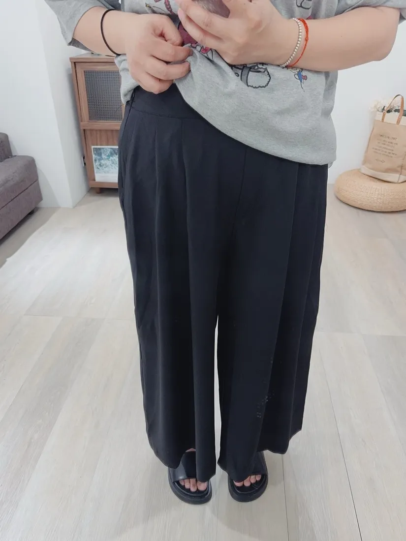✓ 腹部打折設計,寬褲版型,褲長約九分長