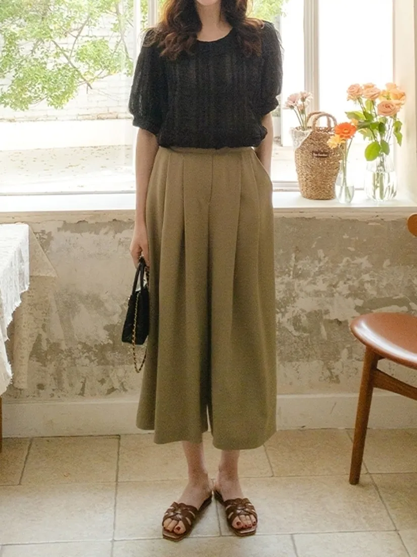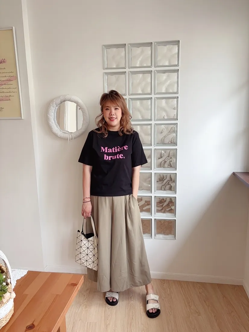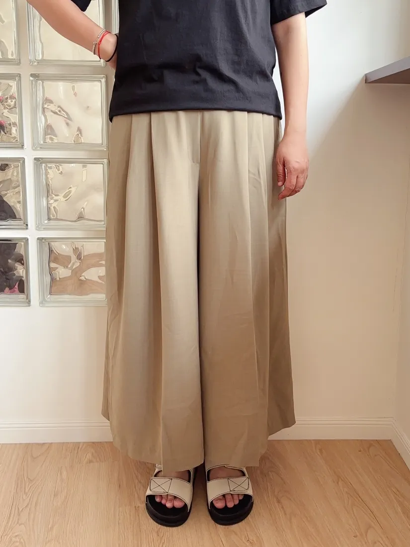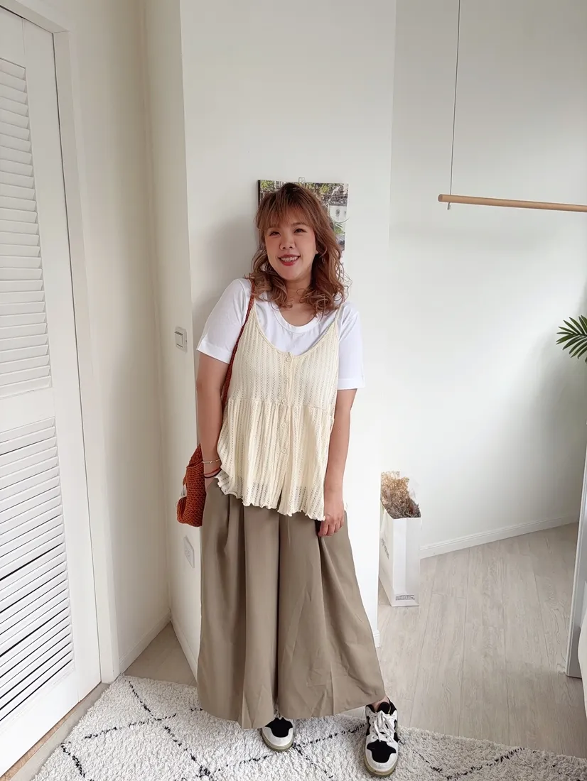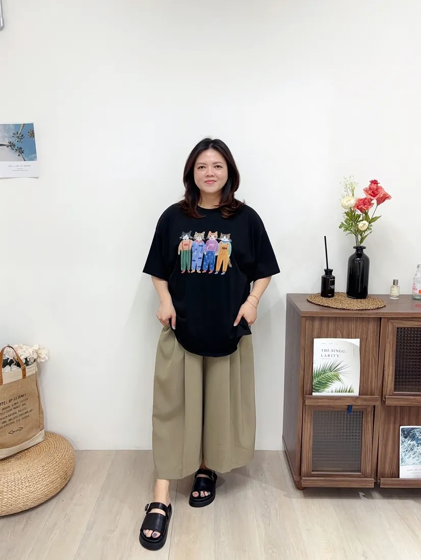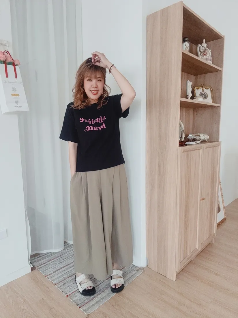 ✓ 腹部打折設計,寬褲版型,褲長約九分長