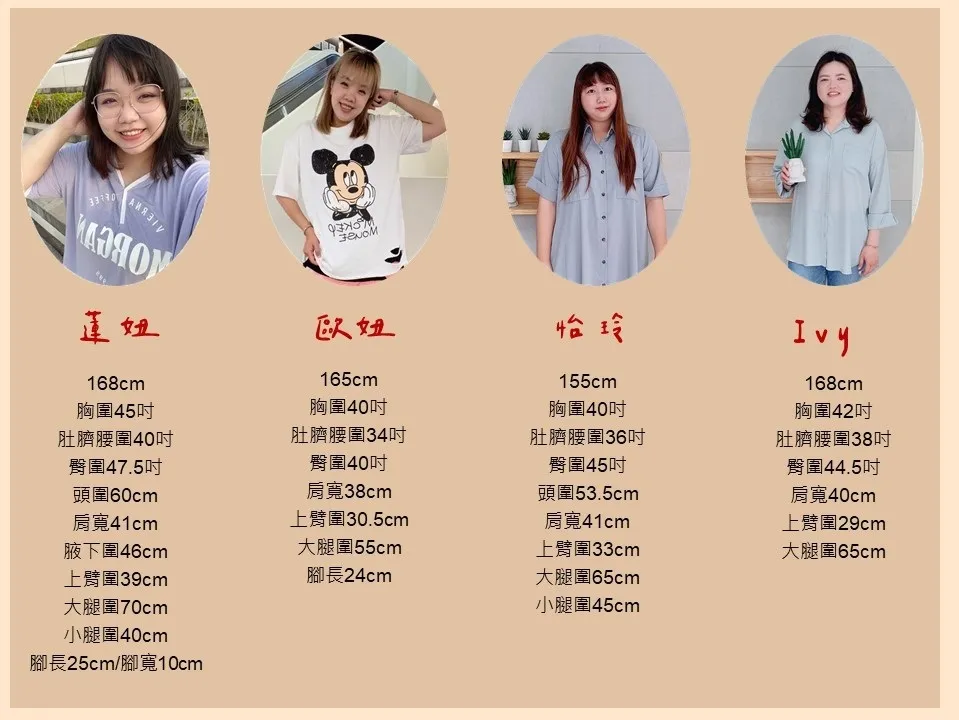 ※ 下方尺寸表有備註照片每個人穿的尺寸及著感哦 ※