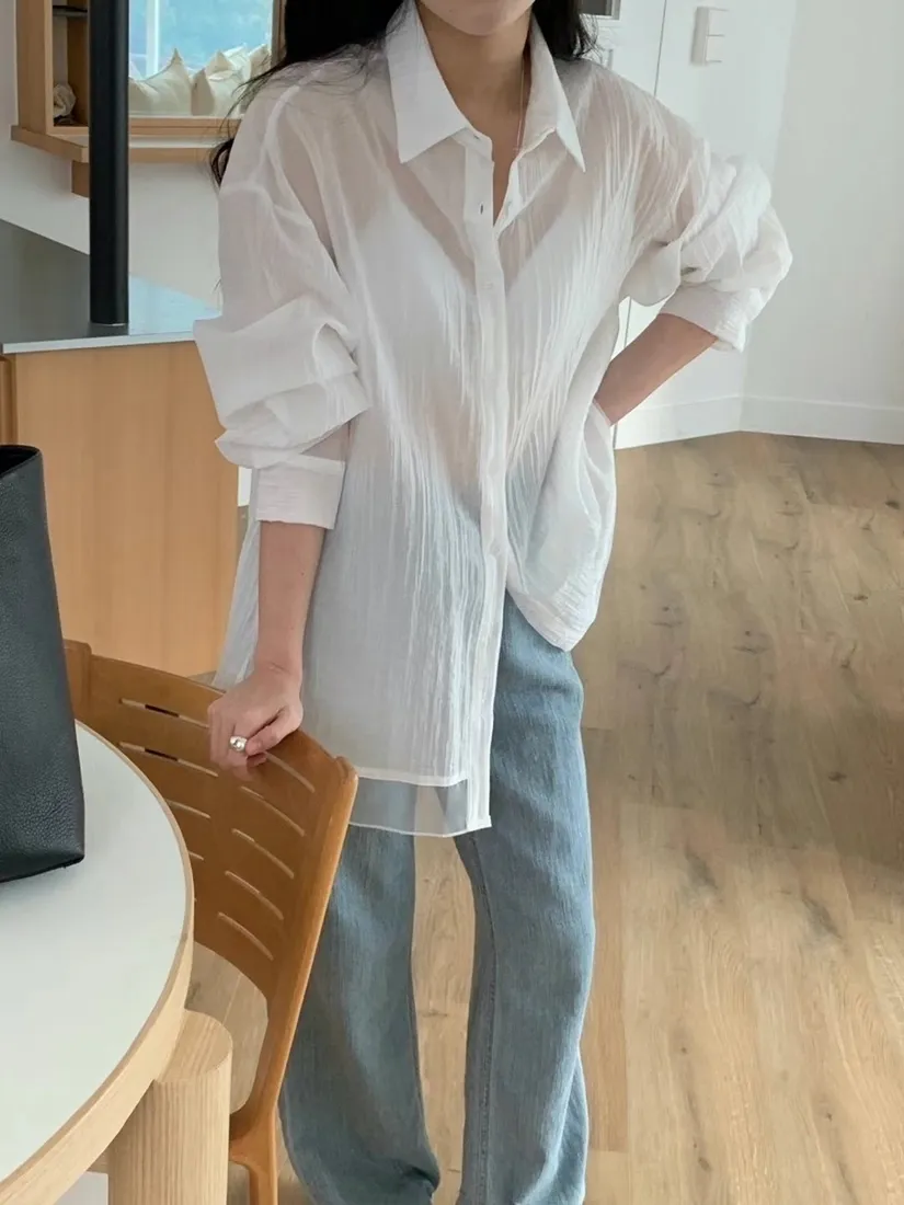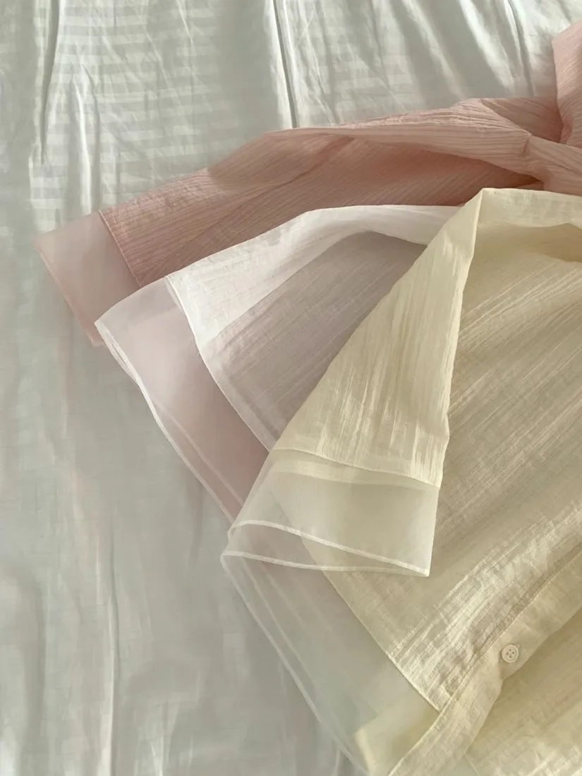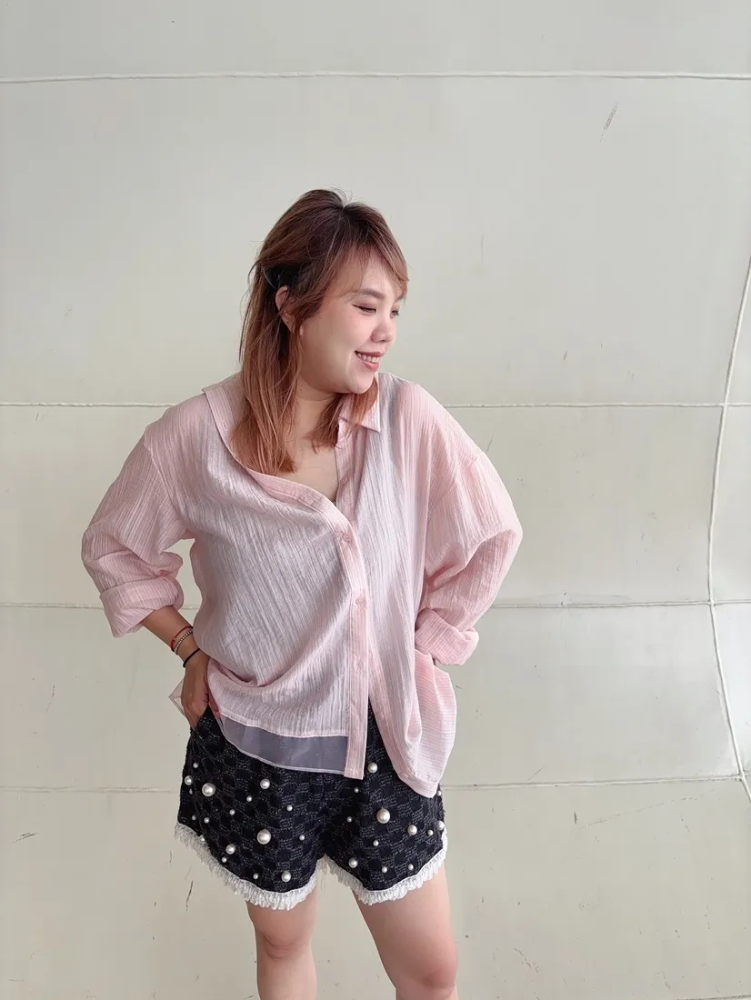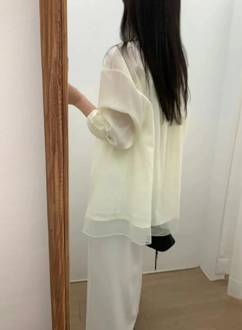 ✓ 透膚布料,布料本身有些微挺度,穿上身自帶輪廓不會軟塌