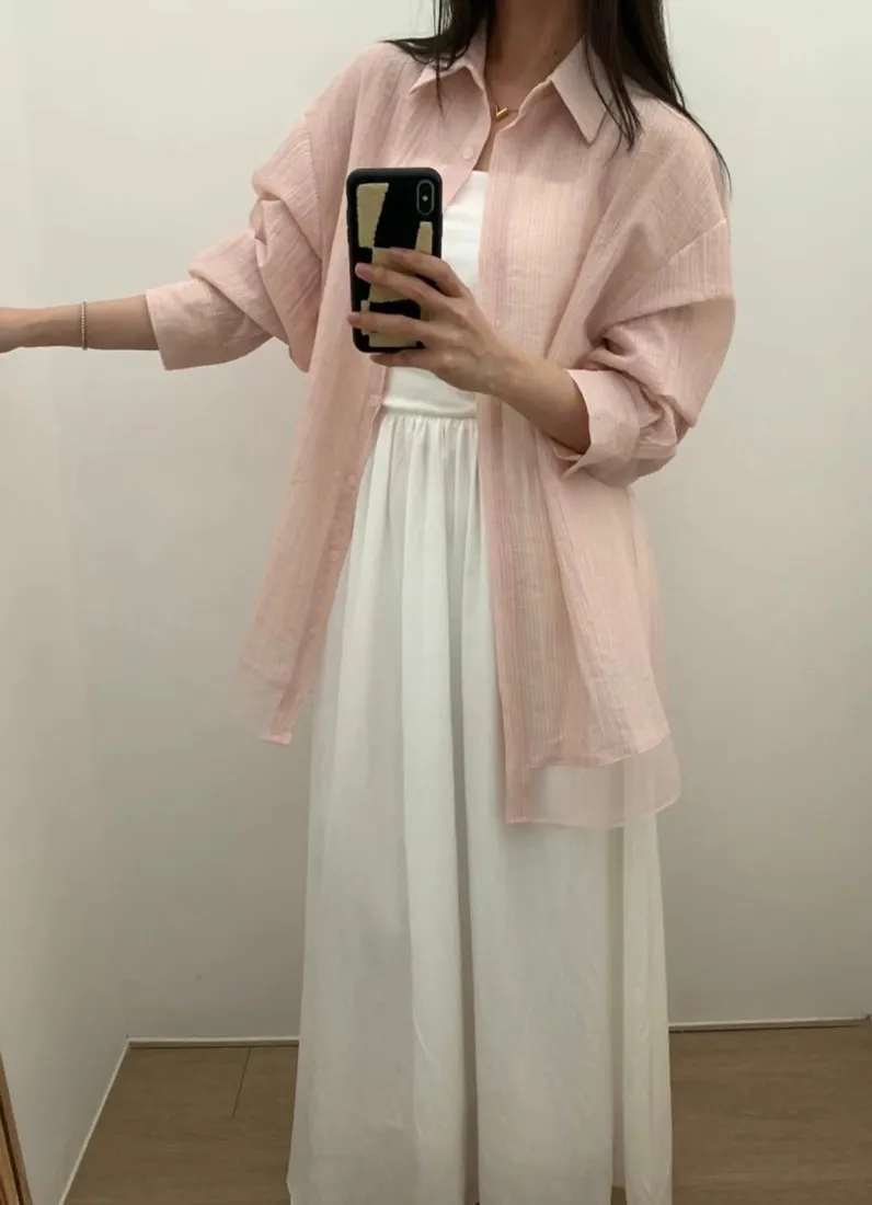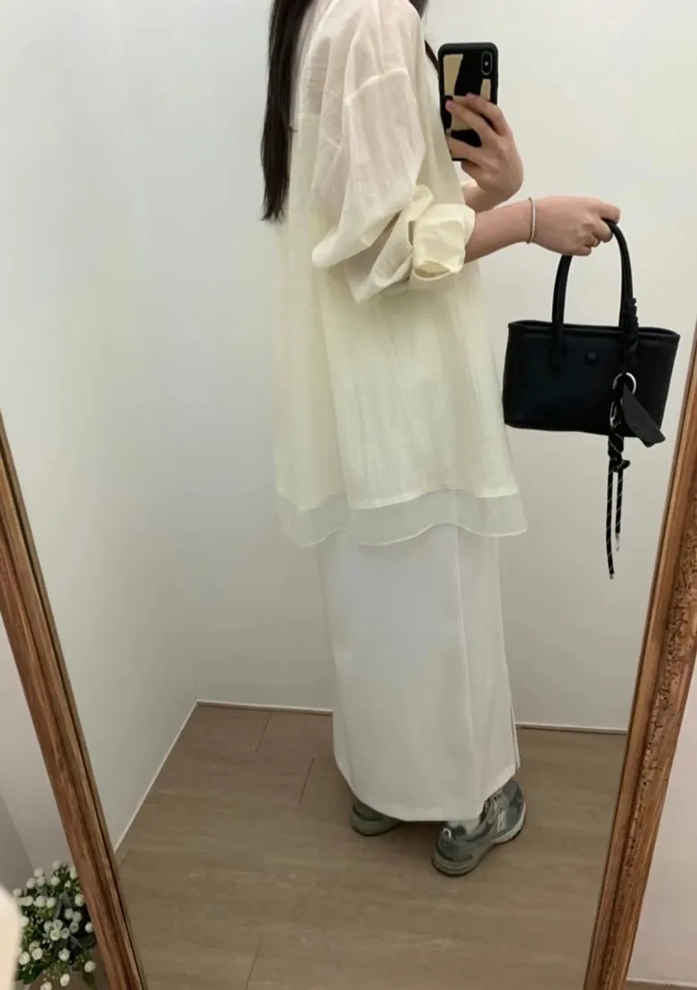 ✓ 下擺拼接透膚白紗,穿上增加層次感外,多了夏天清爽的透膚感