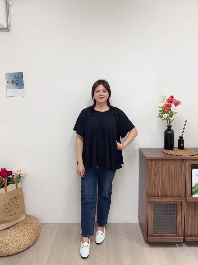 | 尺寸(平量/cm) | 領口寬 | (無肩線)單邊肩寬+袖長 | 胸寬 | 腋下寬 | 下擺寬 | 全長 | 實穿說明 |