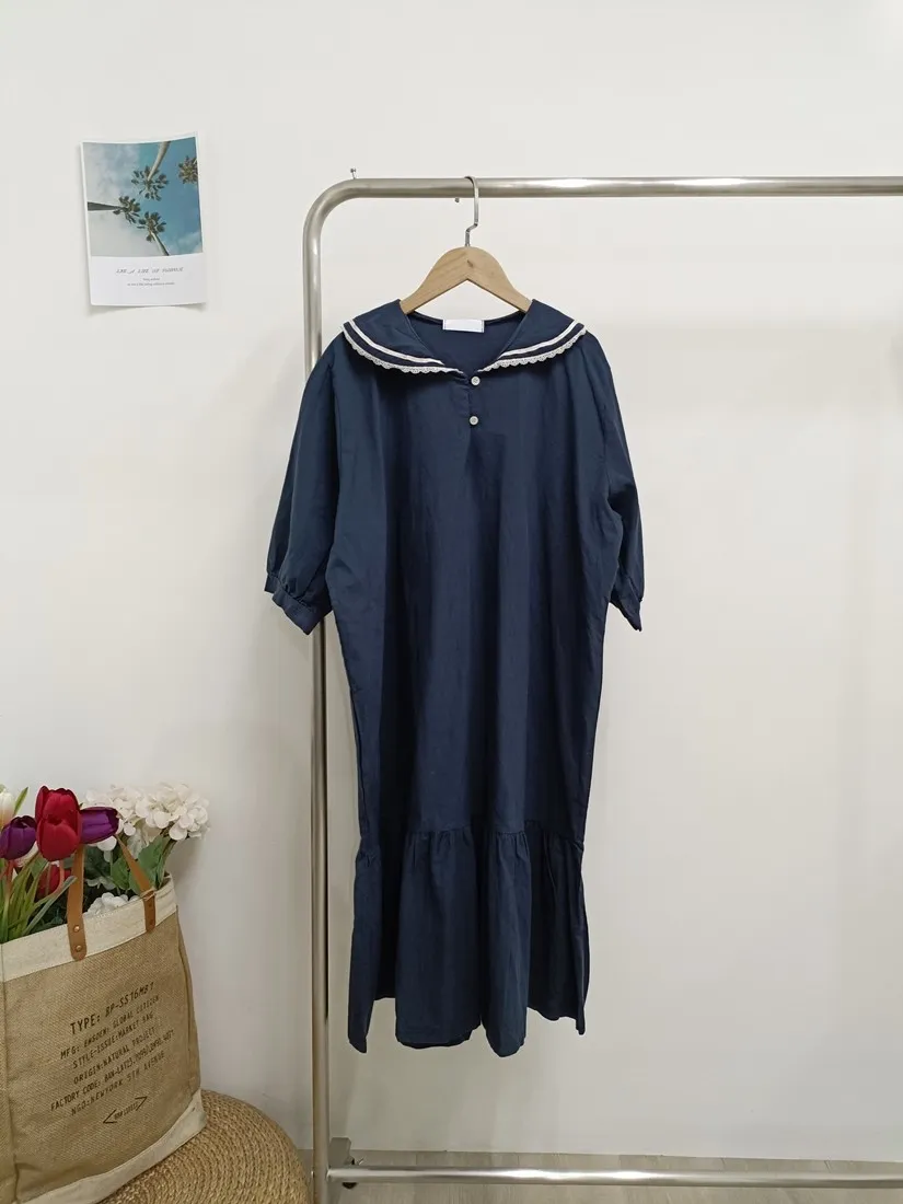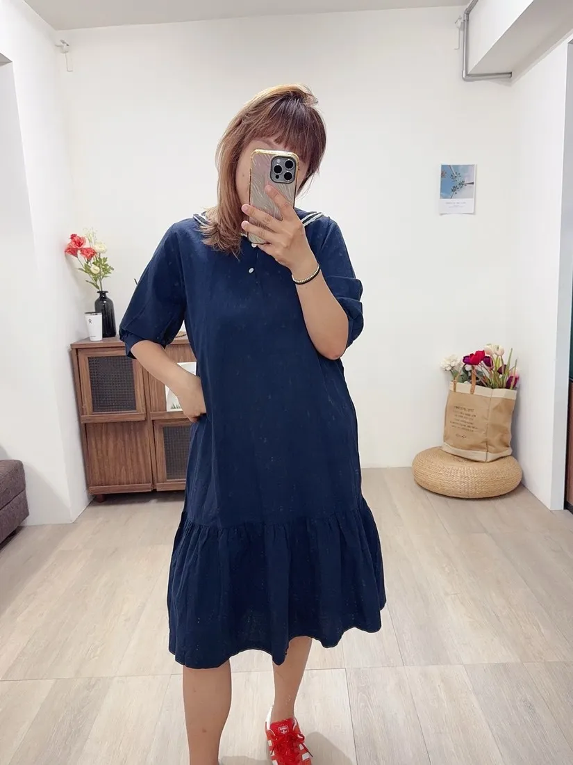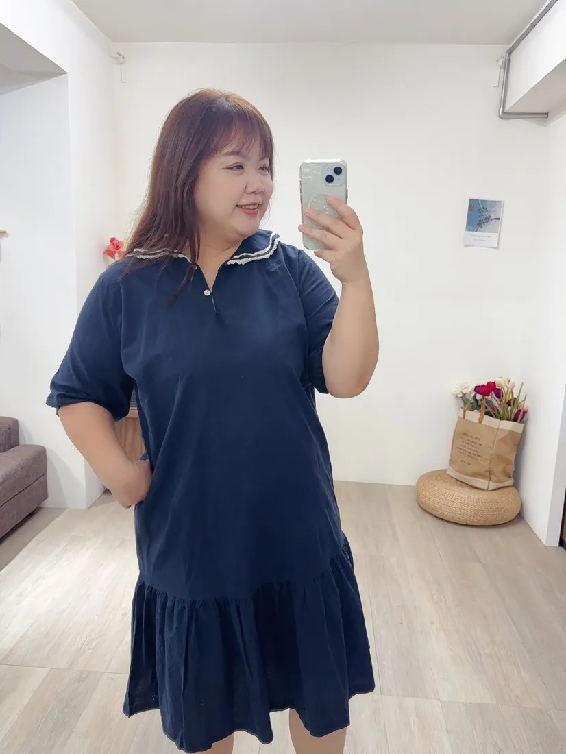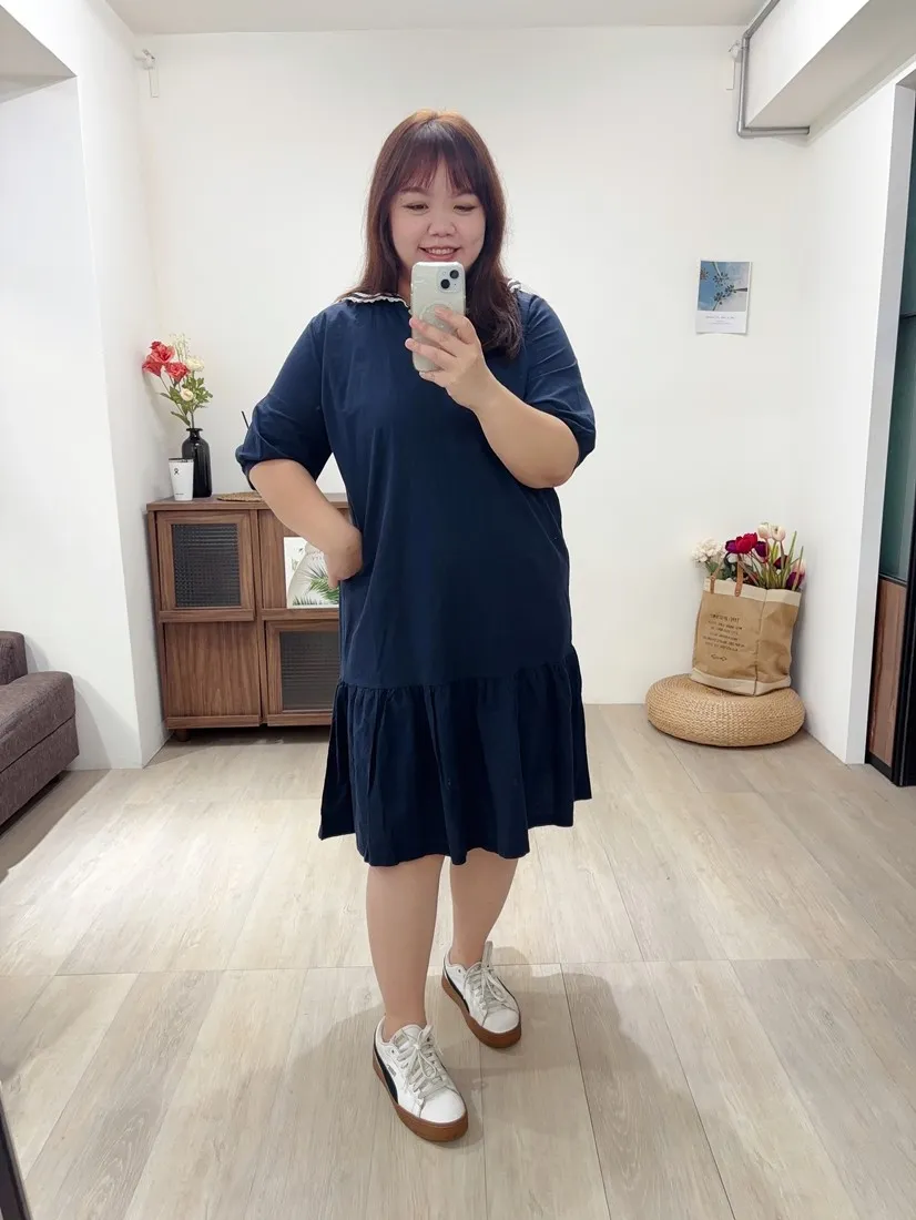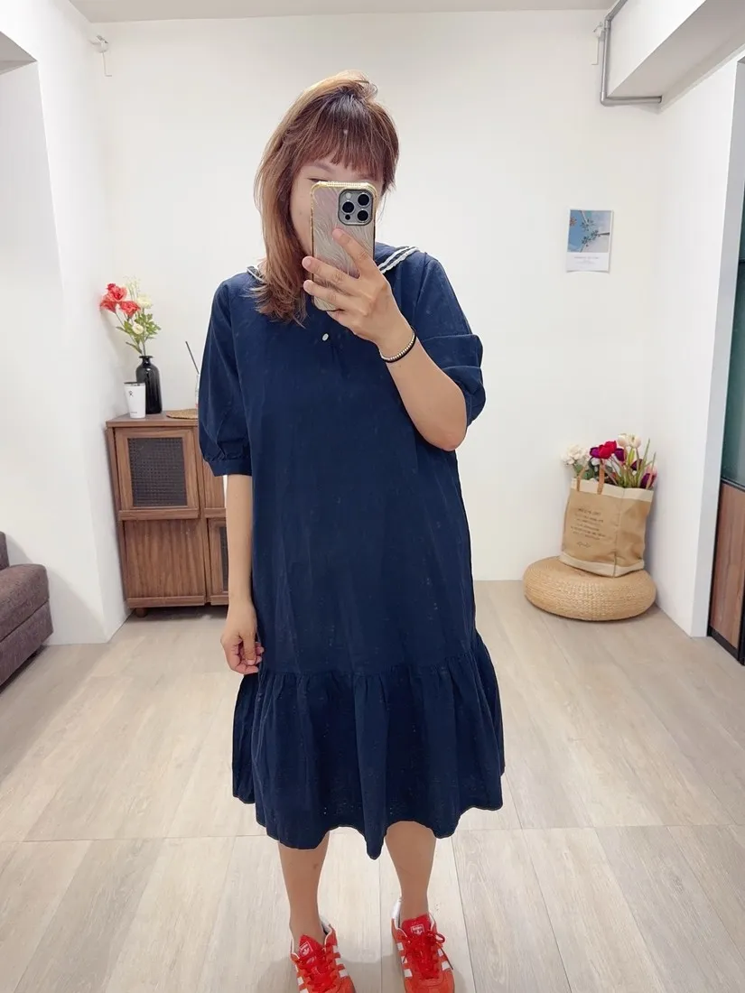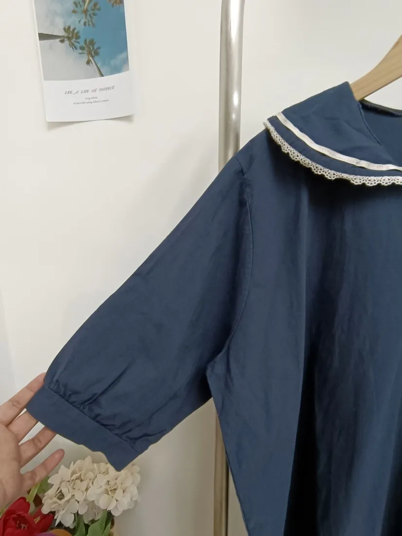 ✓ 海軍領設計,領口滾白色蕾絲花邊