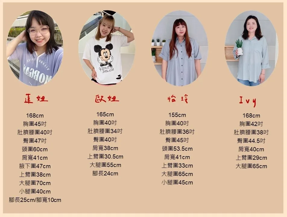 ※ 下方尺寸表有備註照片每個人穿的尺寸及著感哦 ※