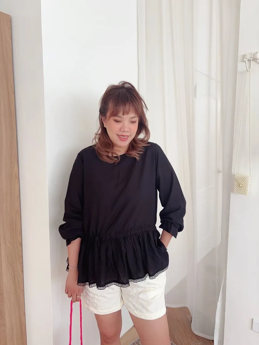 | L | 38-59(30-46.5吋) | 60(47吋) | 37 | 31 | 37 | 38 | 蓮妞穿貼臀不好看/怡玲、Ivy穿合身,會有些微卡檔感 |