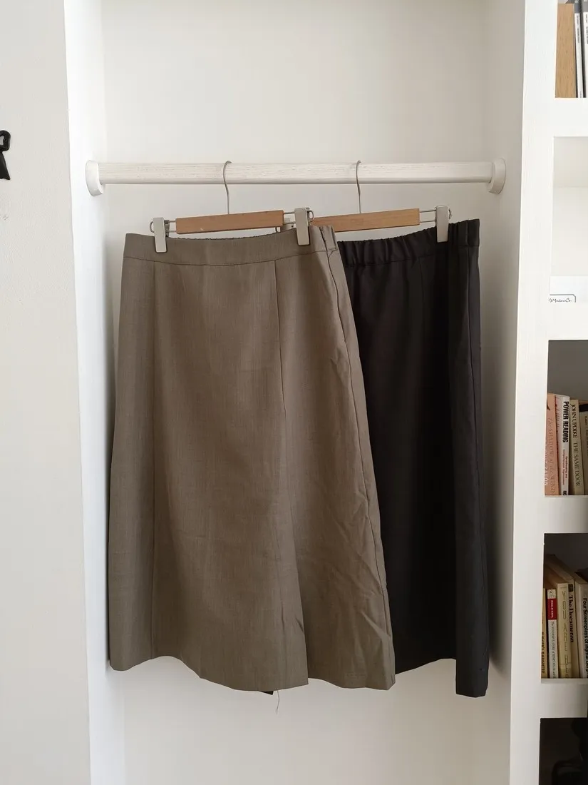 ✓ 裙頭後伸縮彈性,側拉鍊穿脫