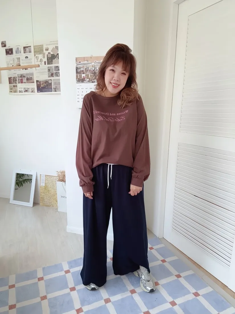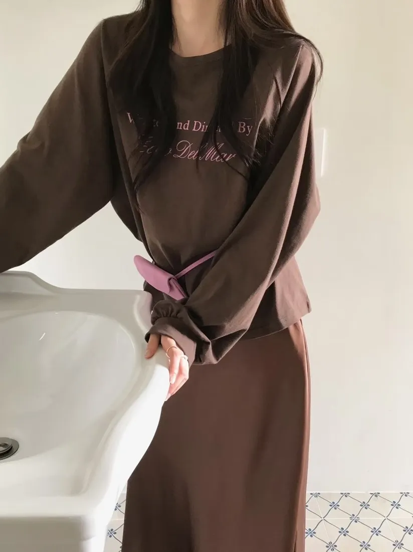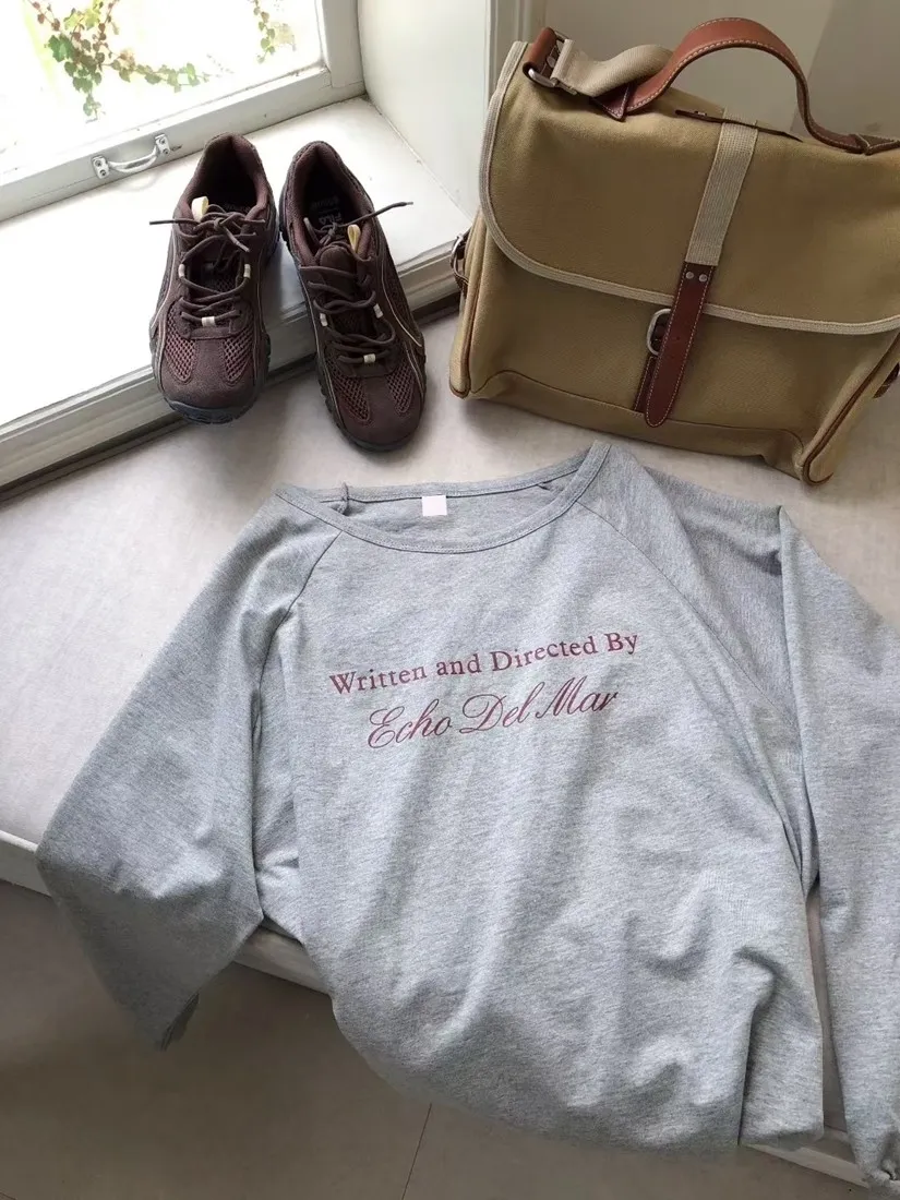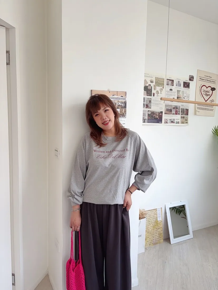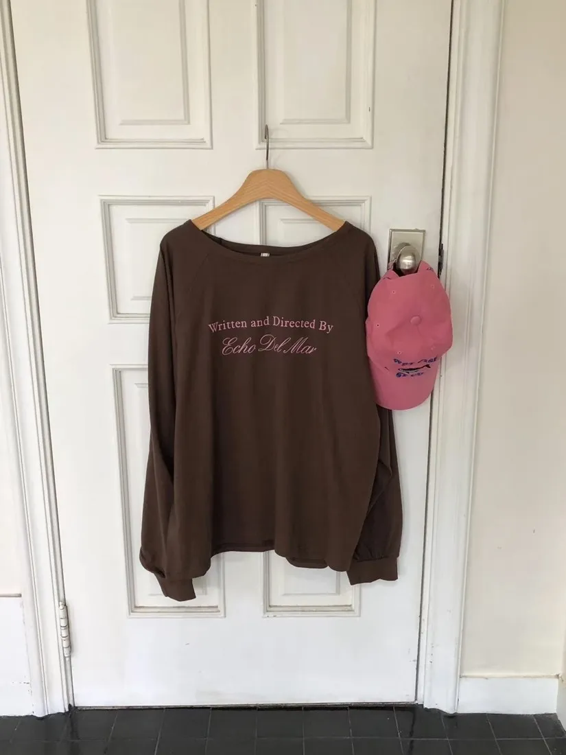 ✓ 跳色字母印刷,淺灰色上衣是酒紅色字母、咖色上衣是粉色字母