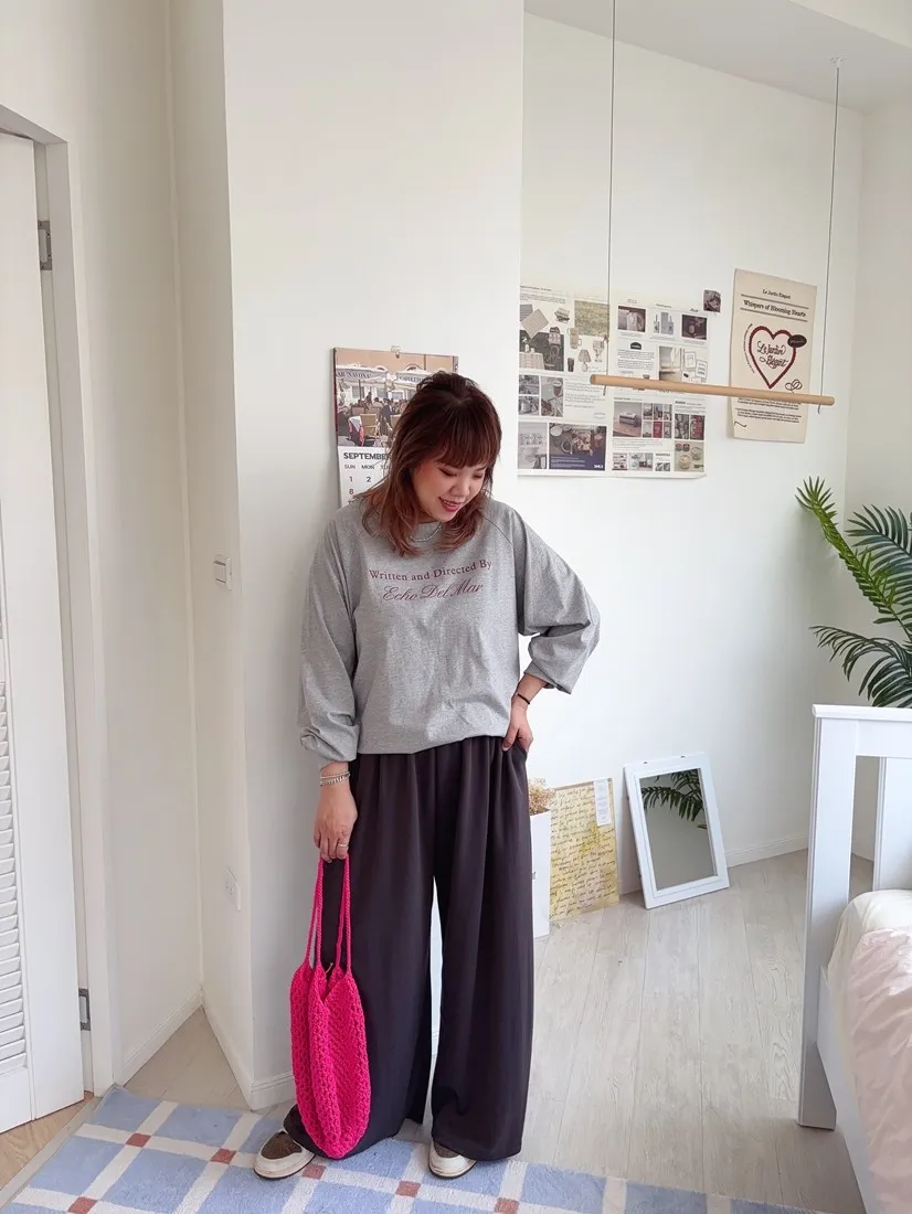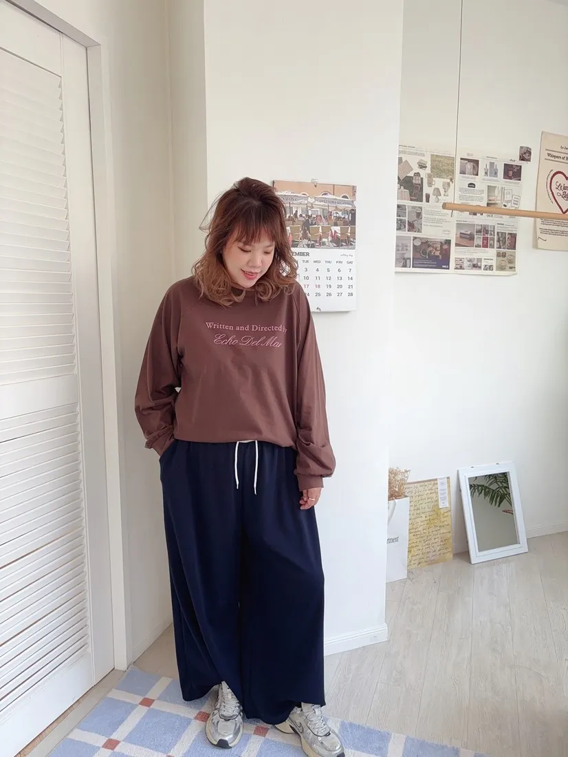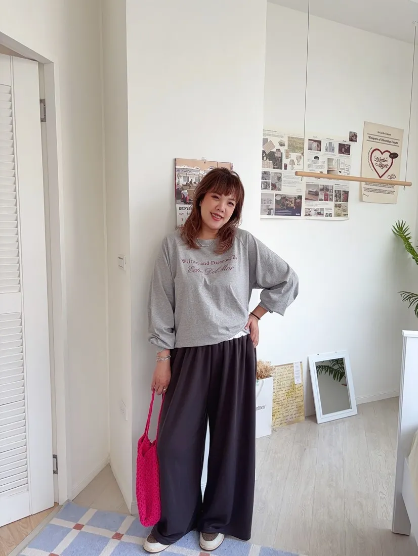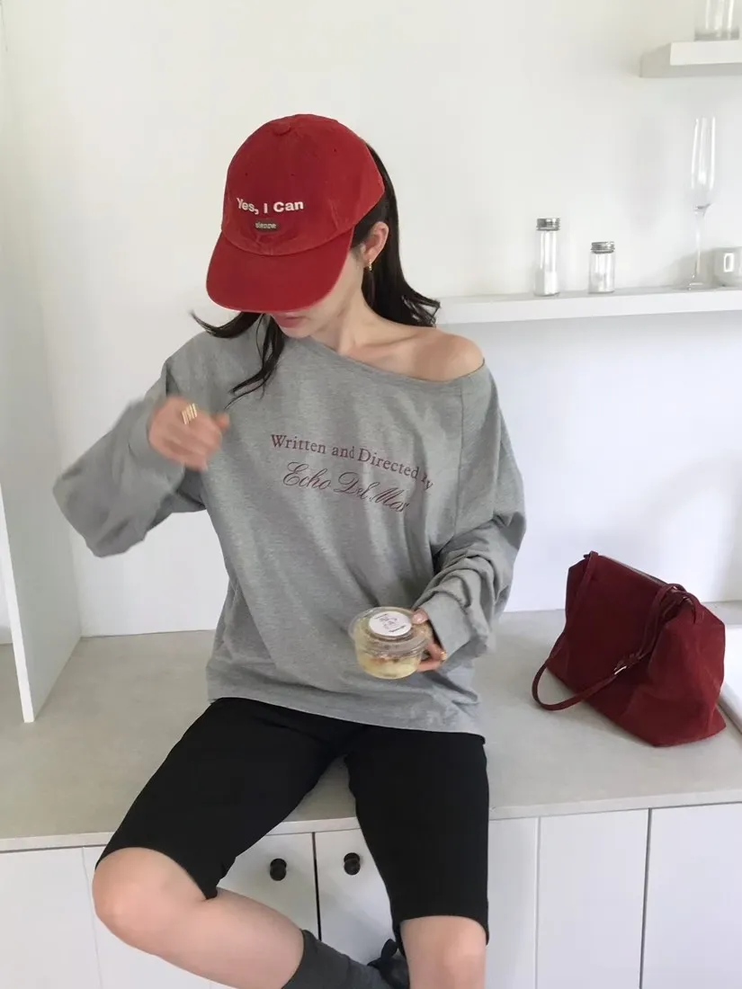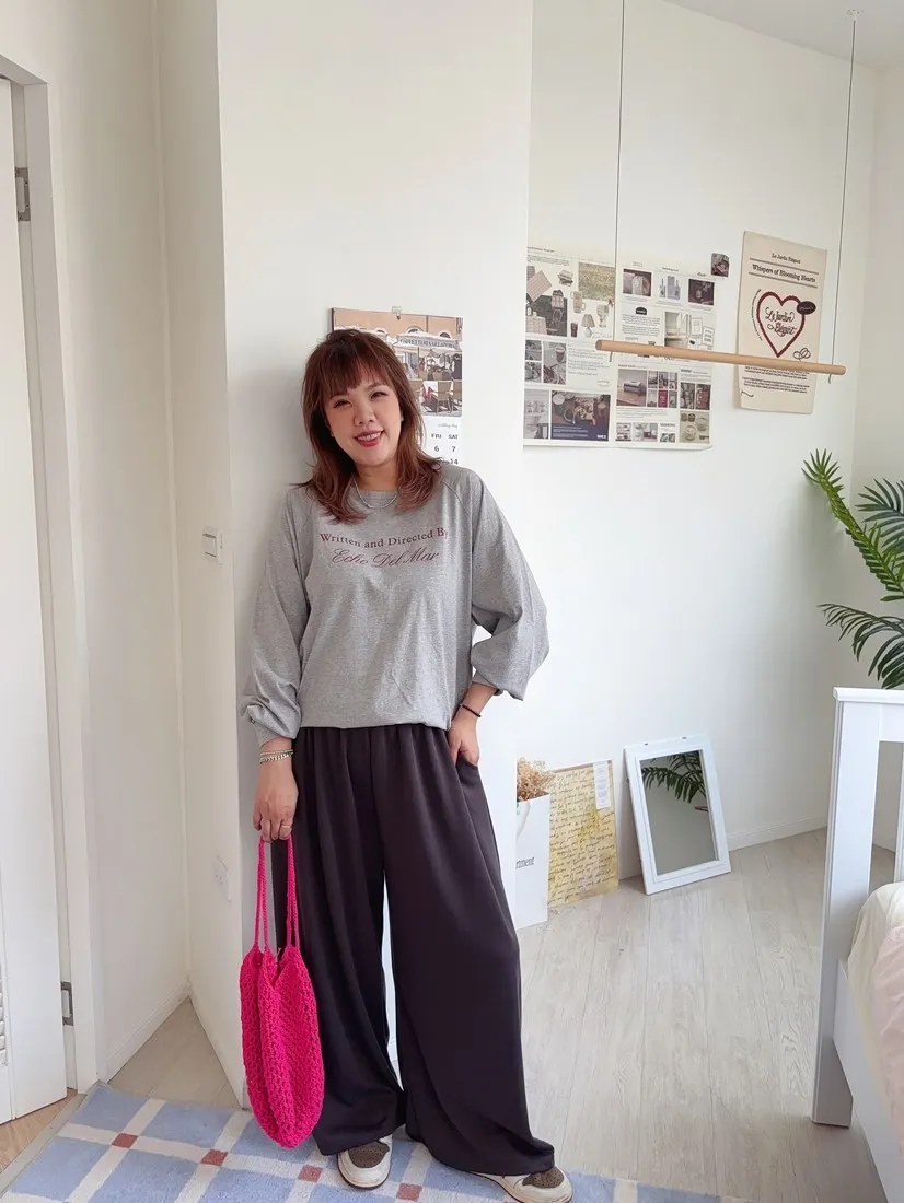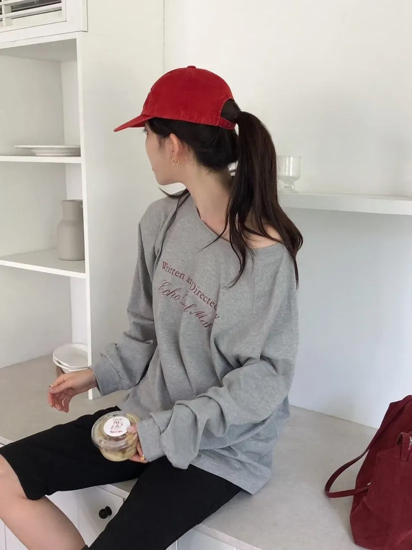 ✓ 跳色字母印刷,淺灰色上衣是酒紅色字母、咖色上衣是粉色字母