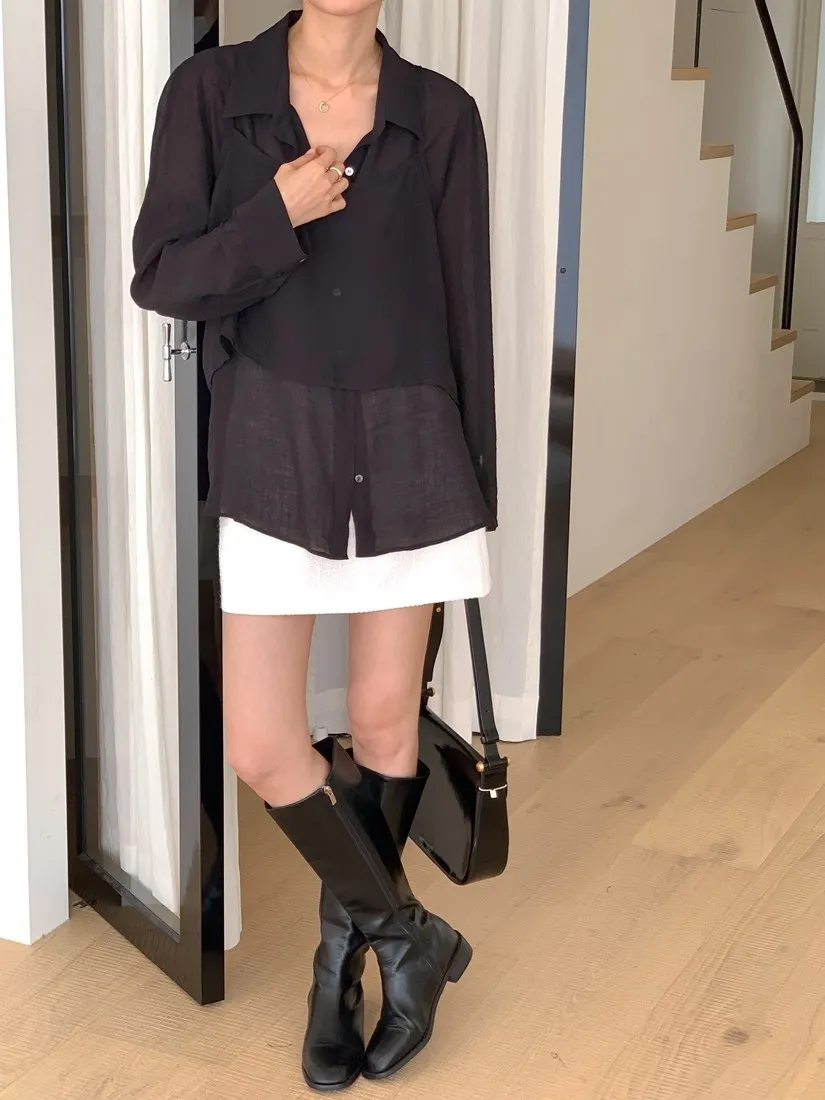 ✓ 混天絲布料,手感細緻柔順;布料微透膚,帶有紋路感