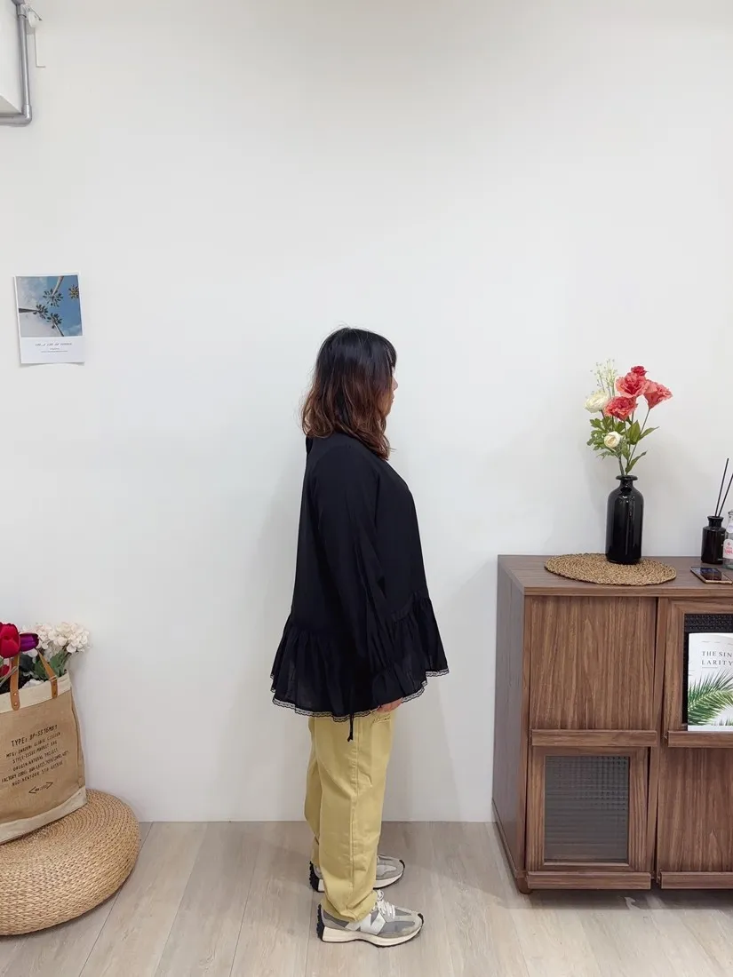 | 尺寸(平量/cm) | 領口寬 | 肩寬 | 胸寬 | 腋下寬 | 袖長 | 手臂寬 | 腰寬 | 全長 | 實穿說明 |
