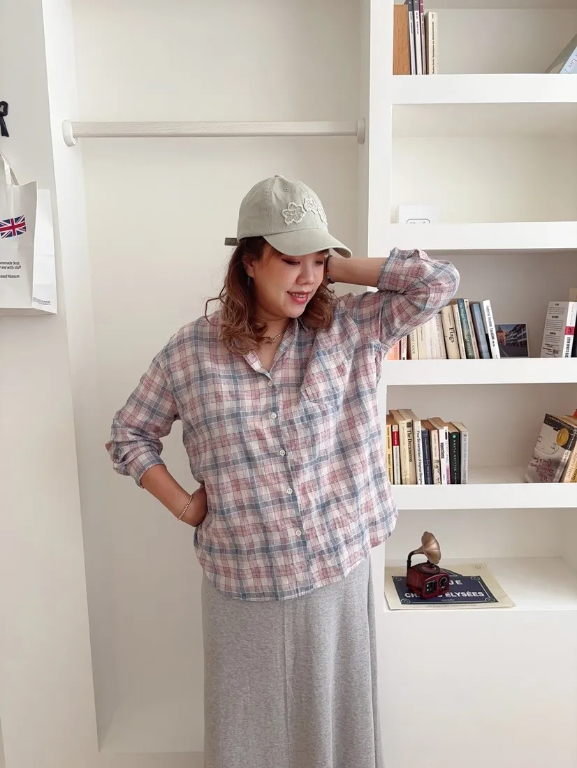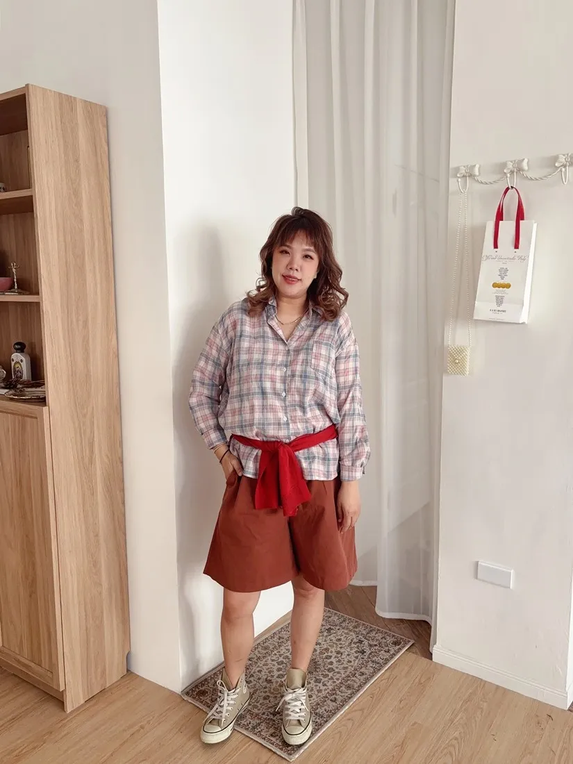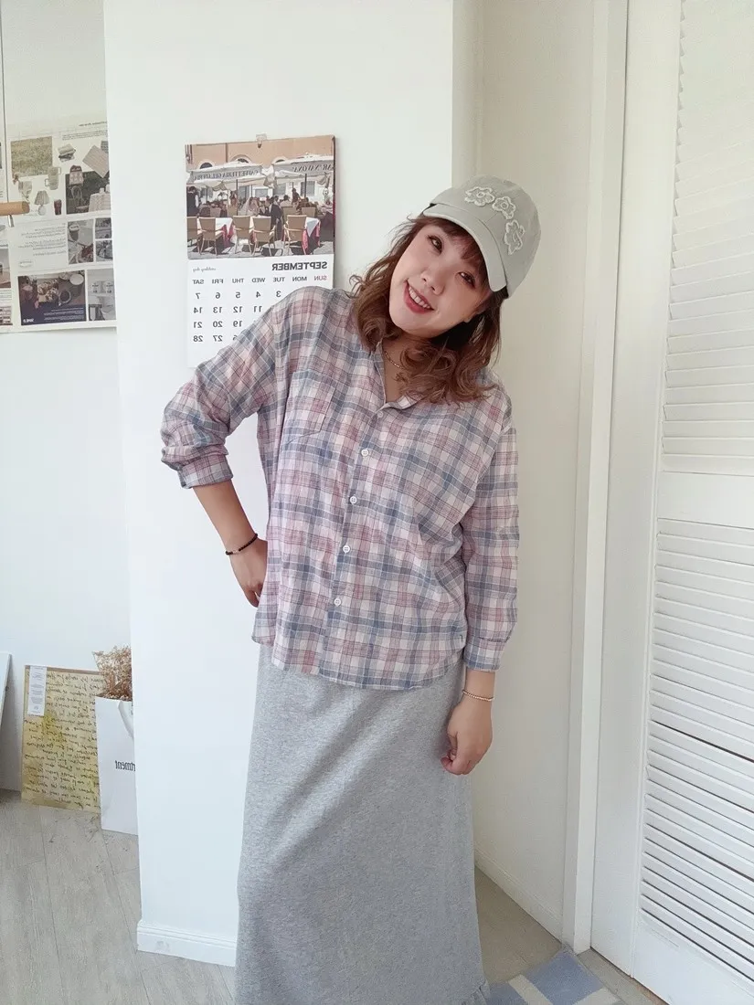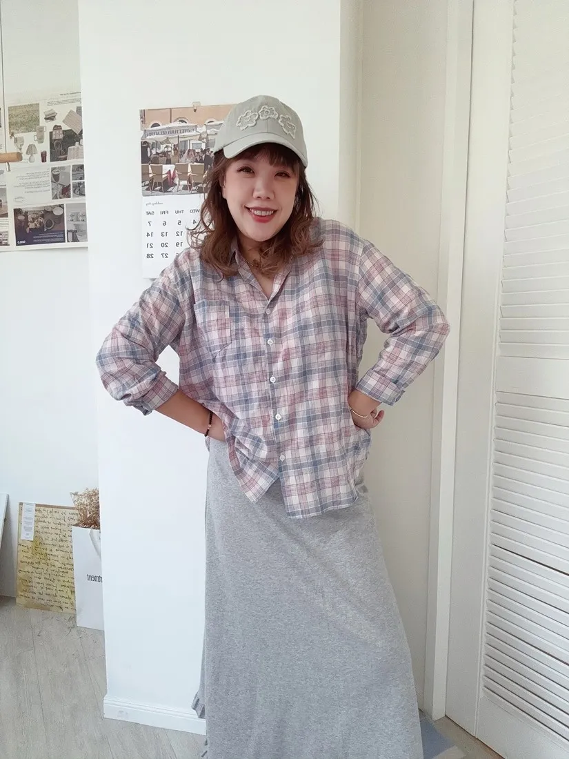 ✓ 低飽和的粉藍格,穿上很有溫柔感