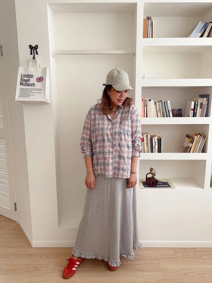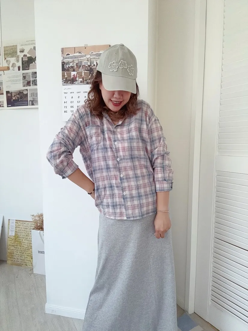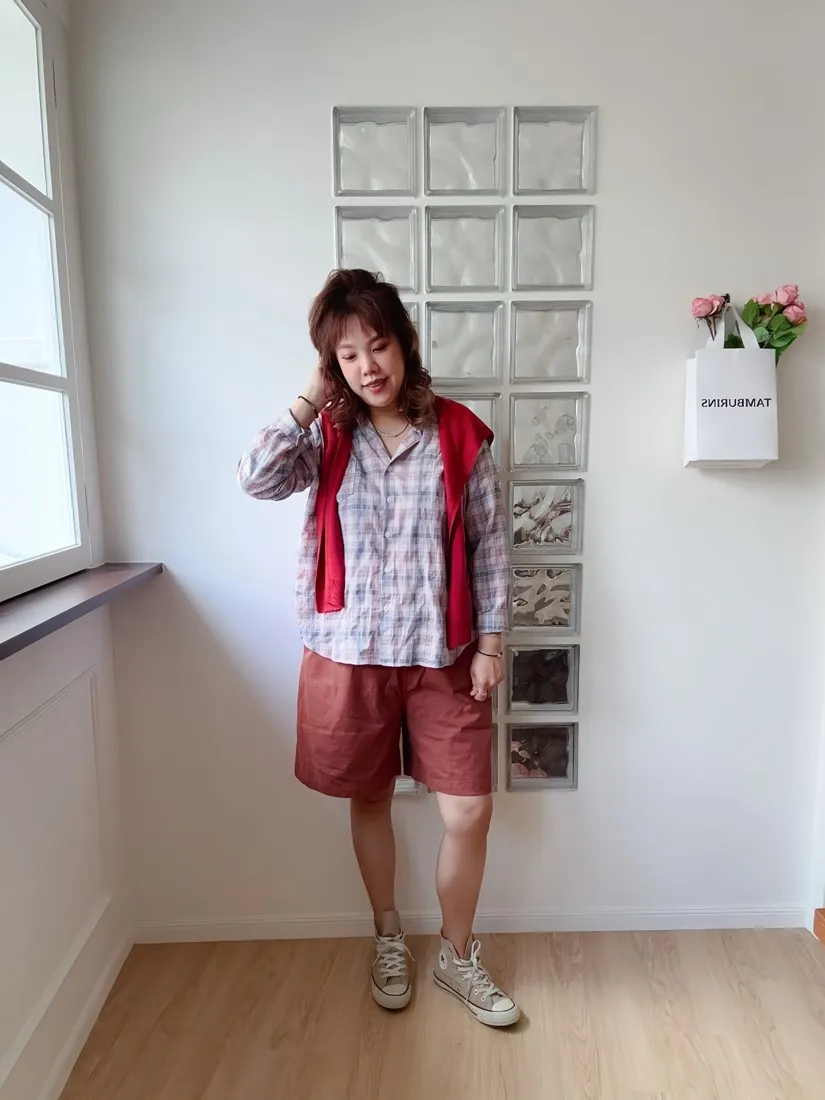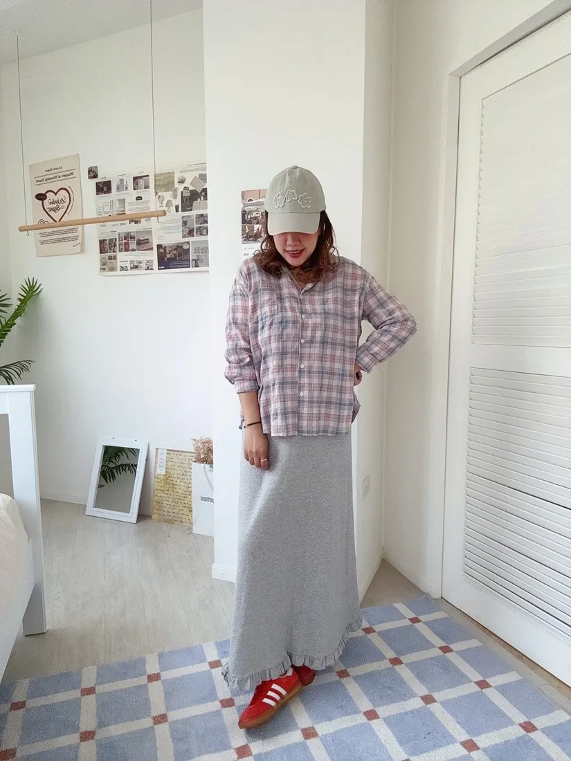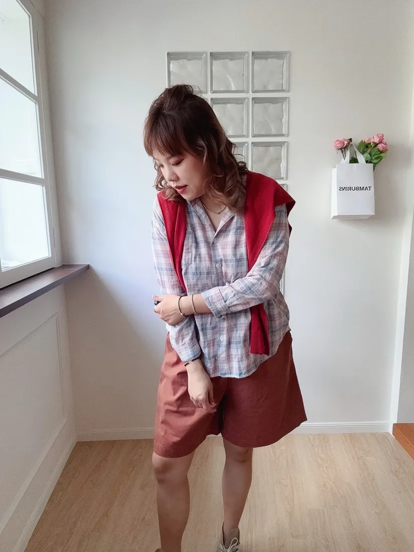 ✓ 低飽和的粉藍格,穿上很有溫柔感