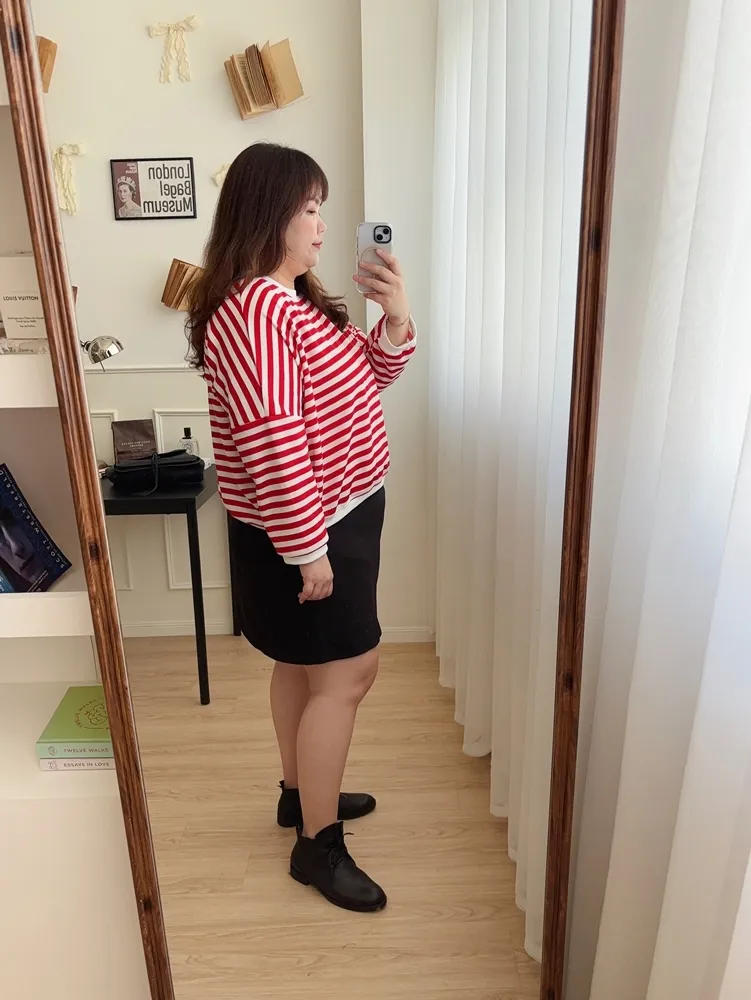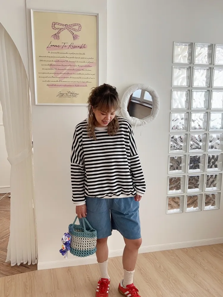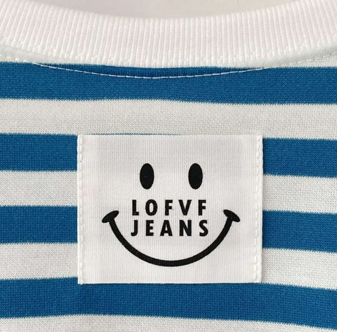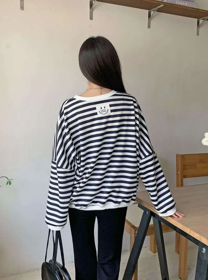 每年都會有的笑臉標籤條紋上衣