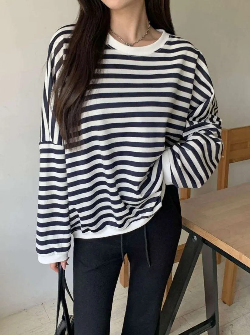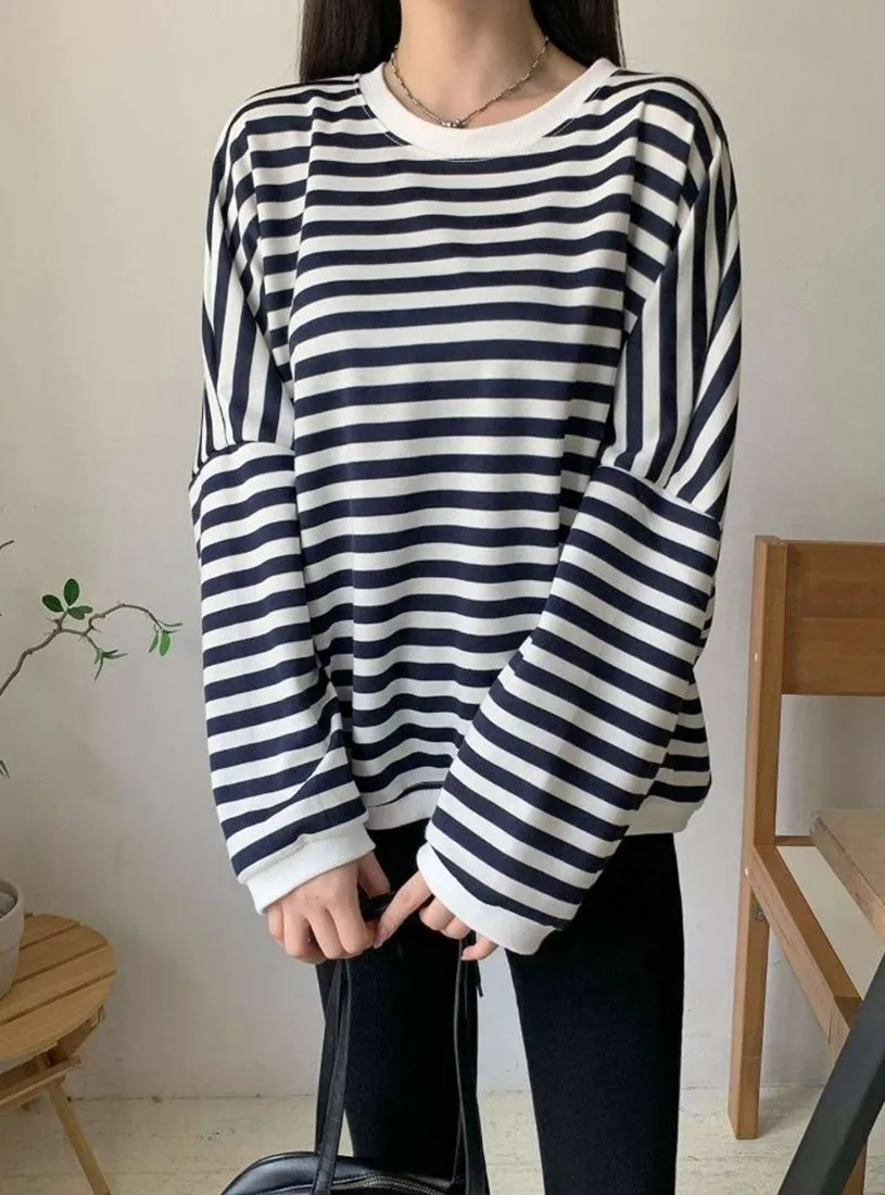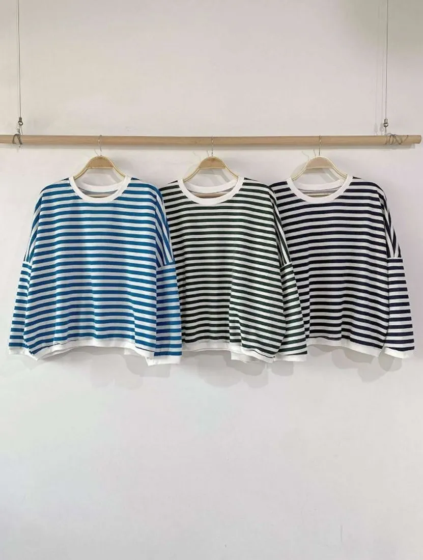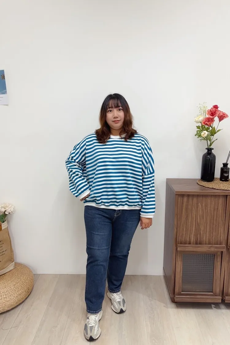 每年都會有的笑臉標籤條紋上衣