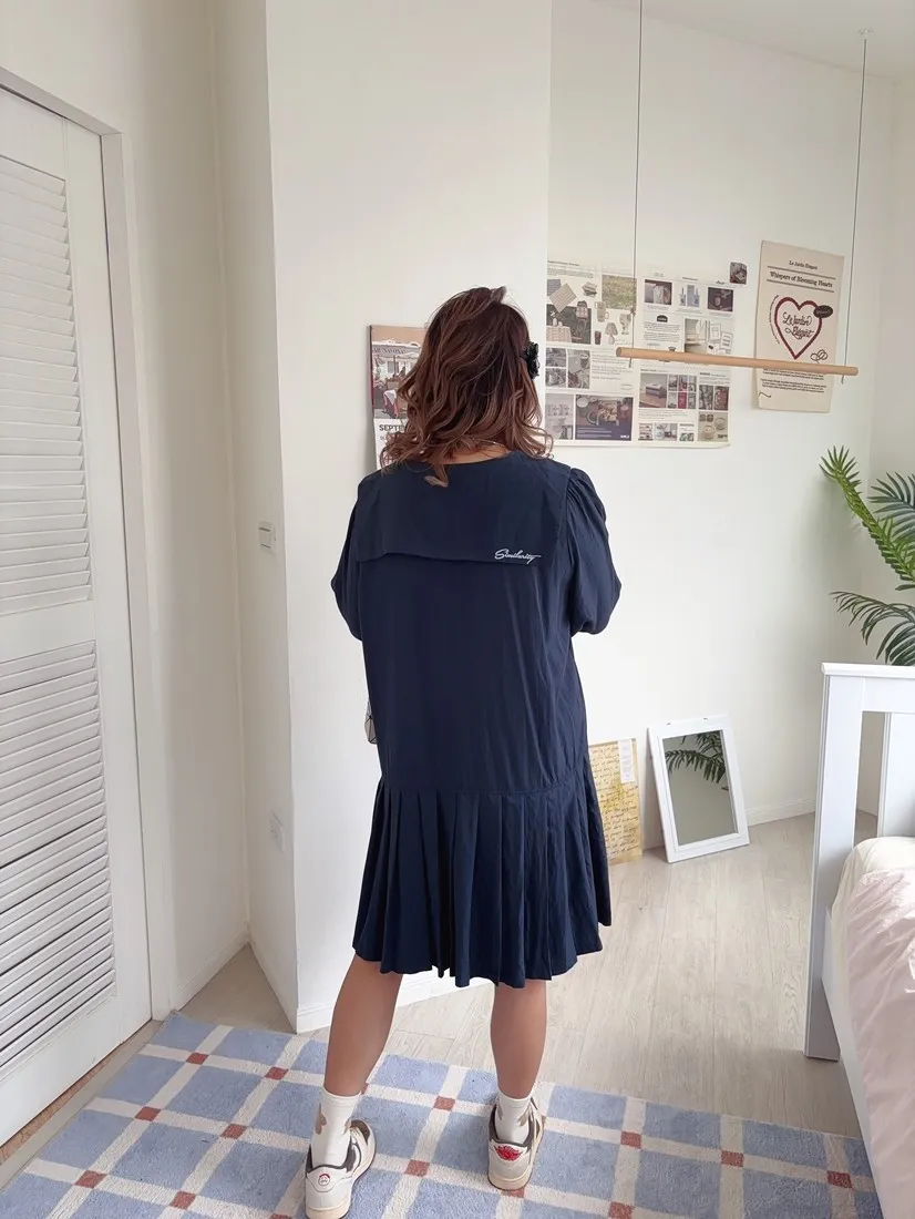 ✓ 水手領設計,領口有加寬設計,穿上更加舒服;領子背面刺繡字母圖案