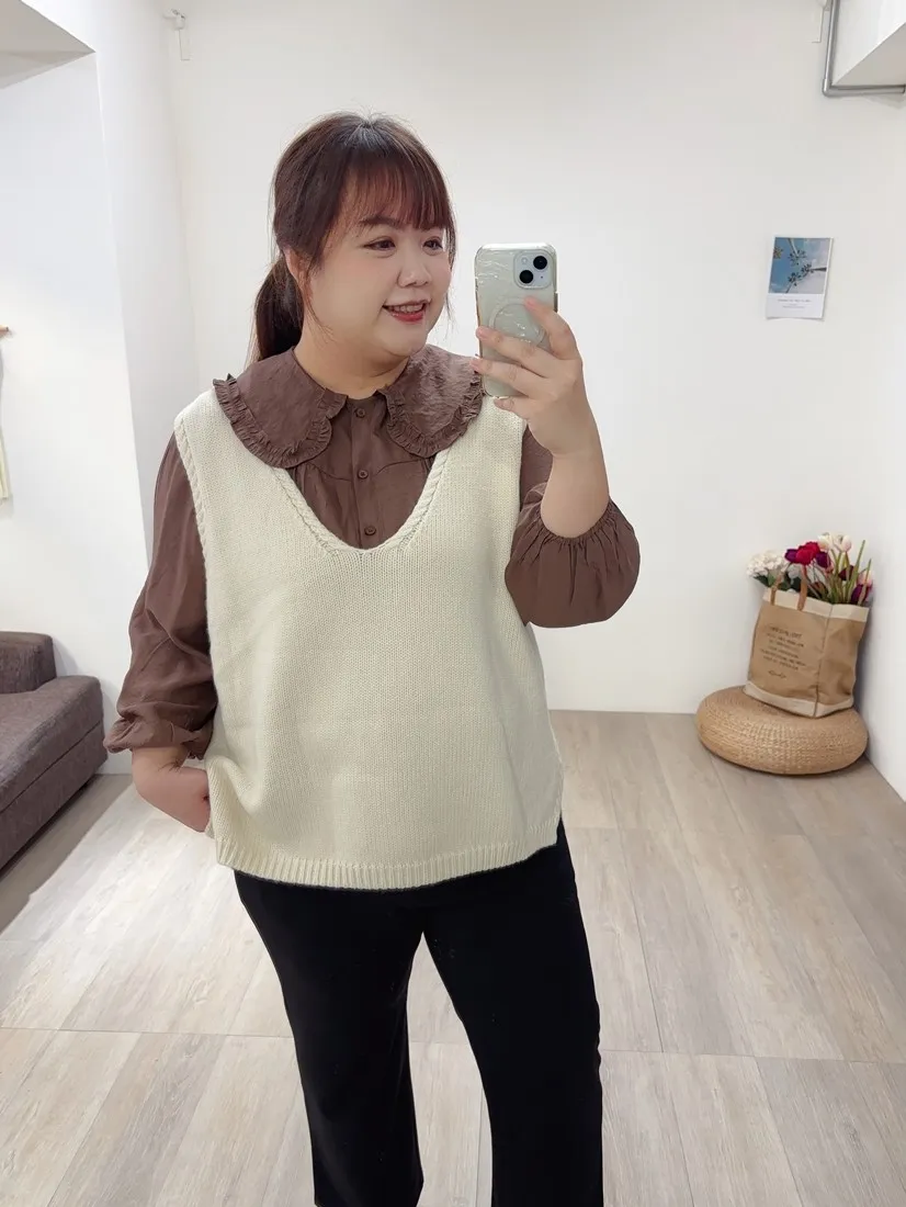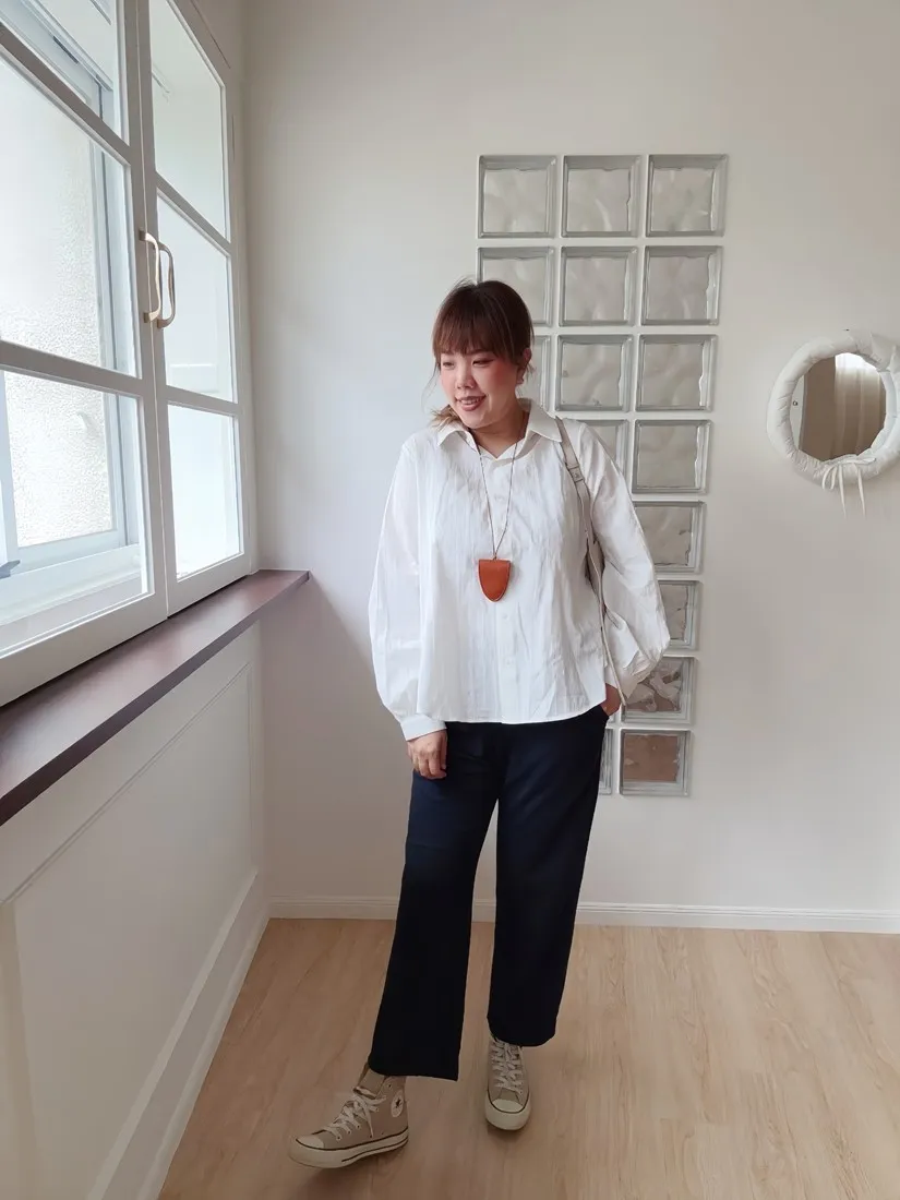 也因為布料沒有彈性,整體穿起來版型會比較小,請再重新看一次尺寸表選擇尺寸哦