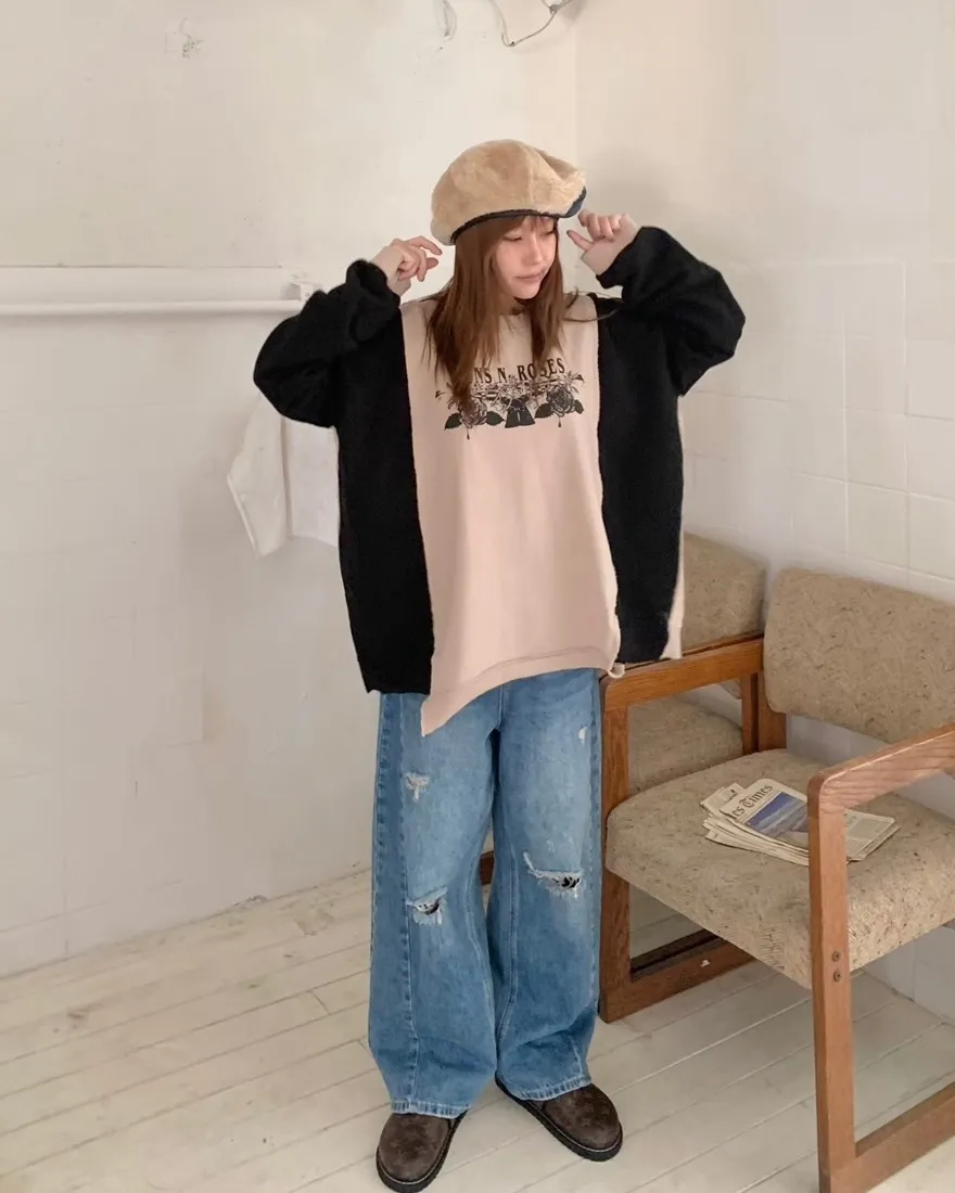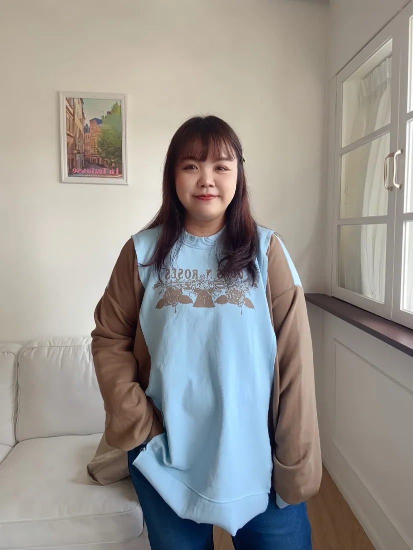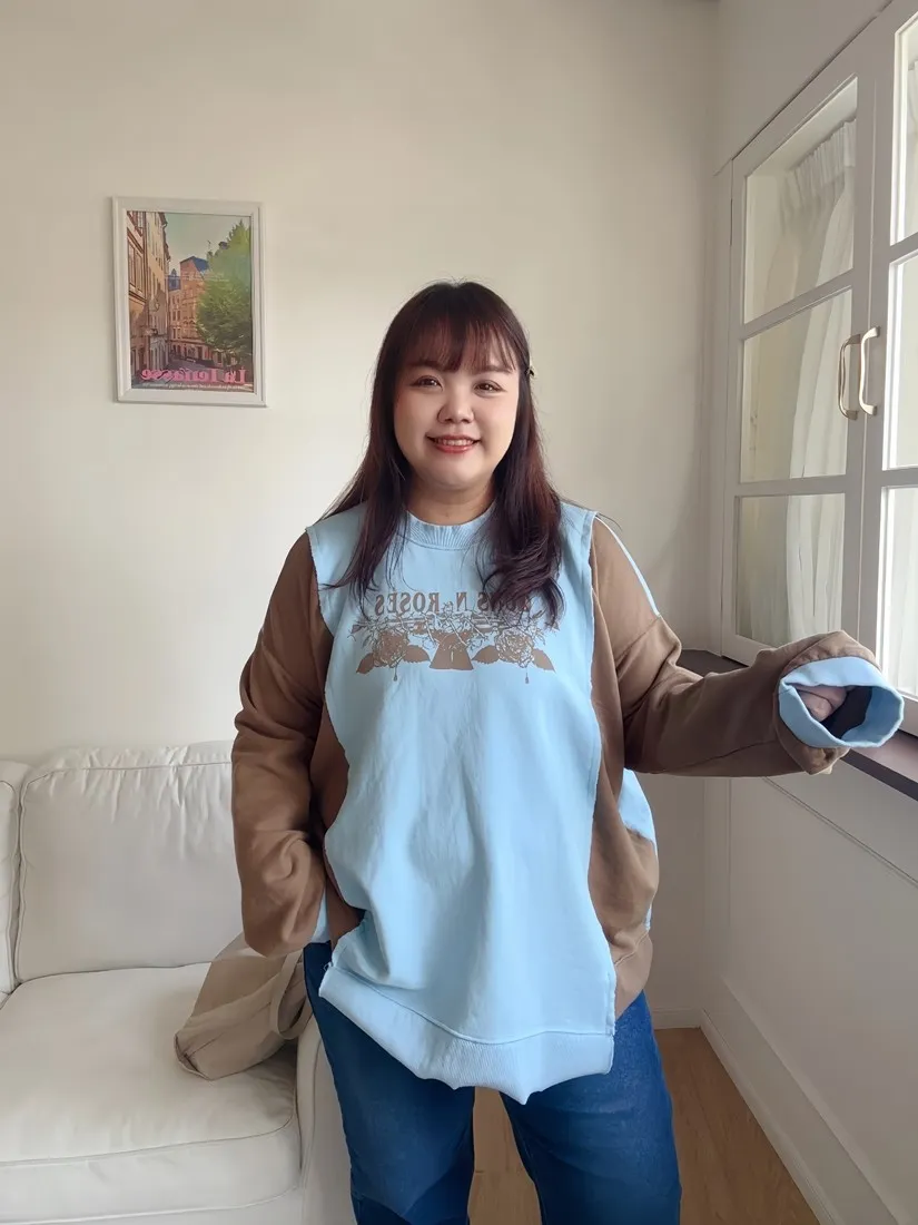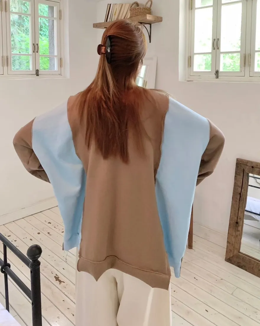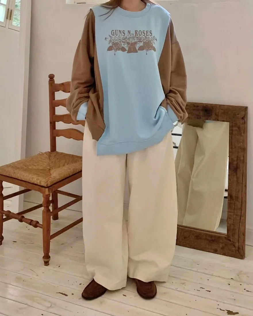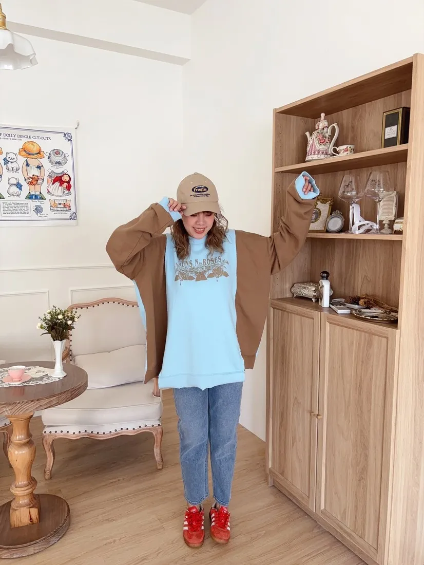 ✓ 寬鬆方形版型,拼接不同顏色,讓大大的衣服切割成小小塊,整體就不會被放大哦