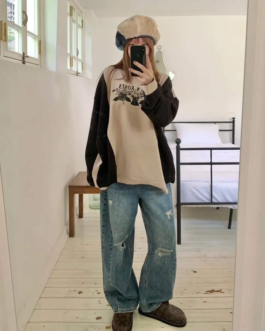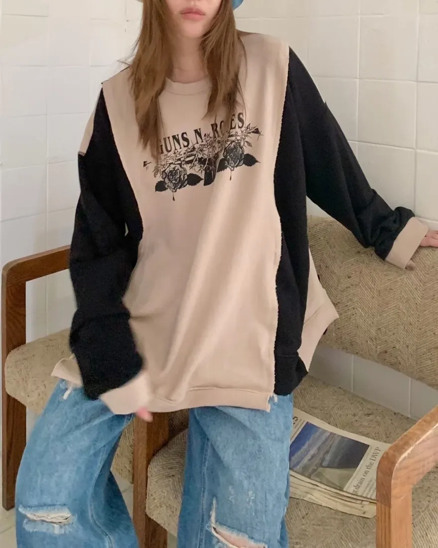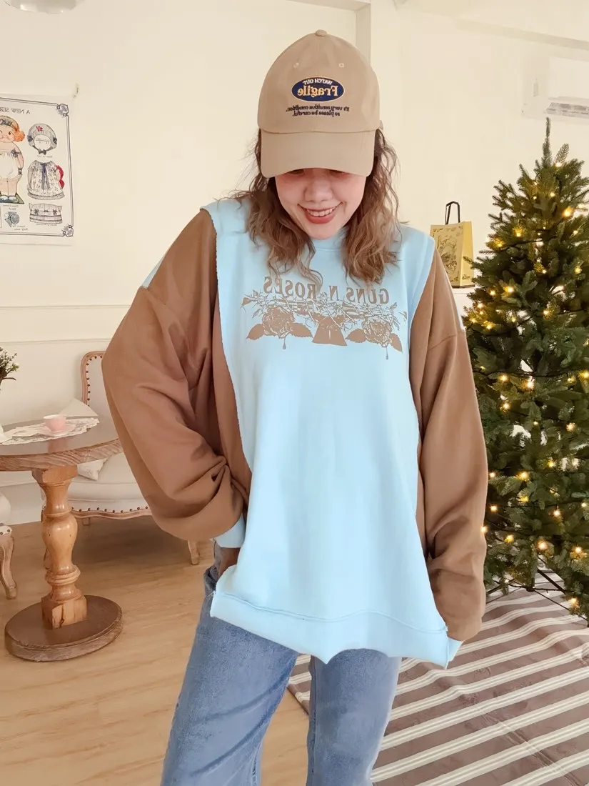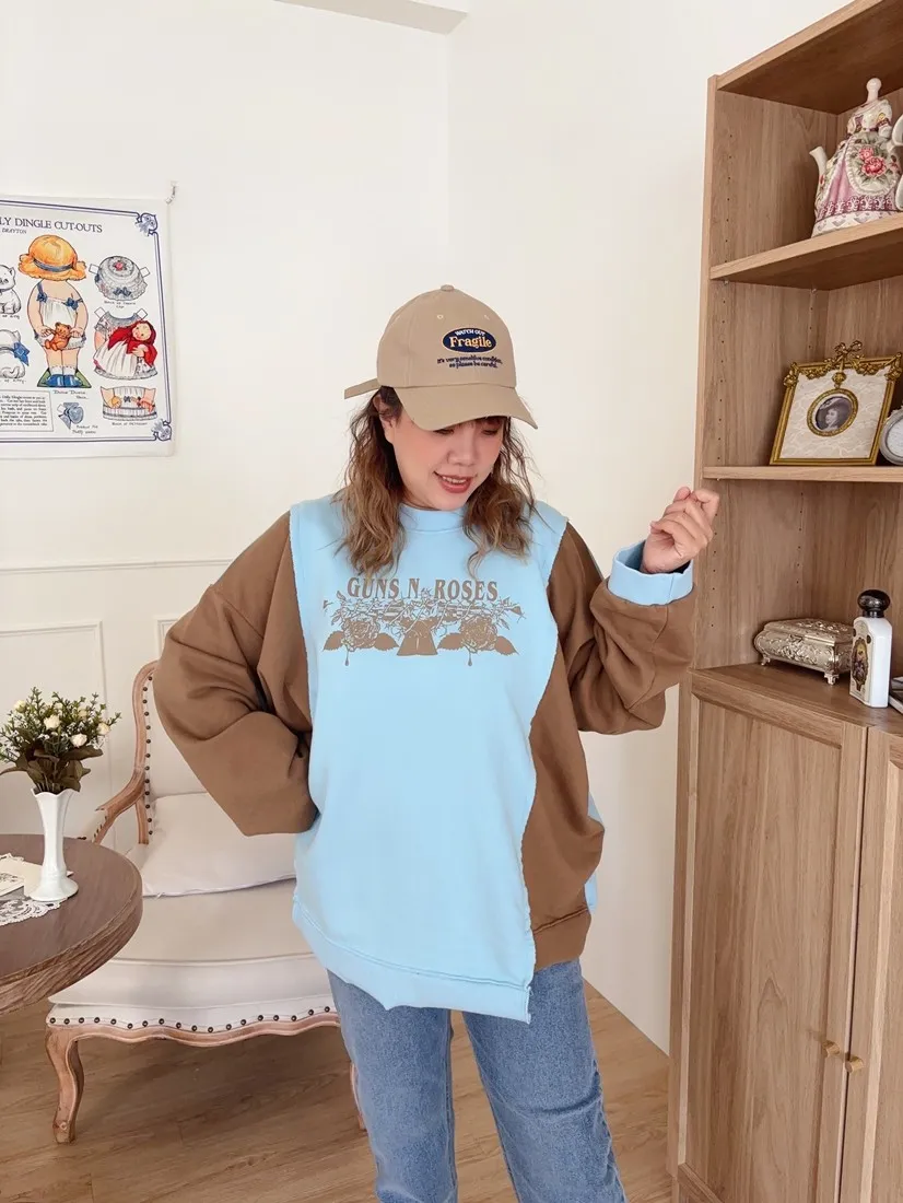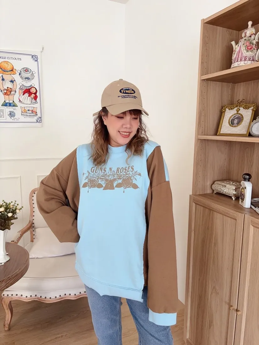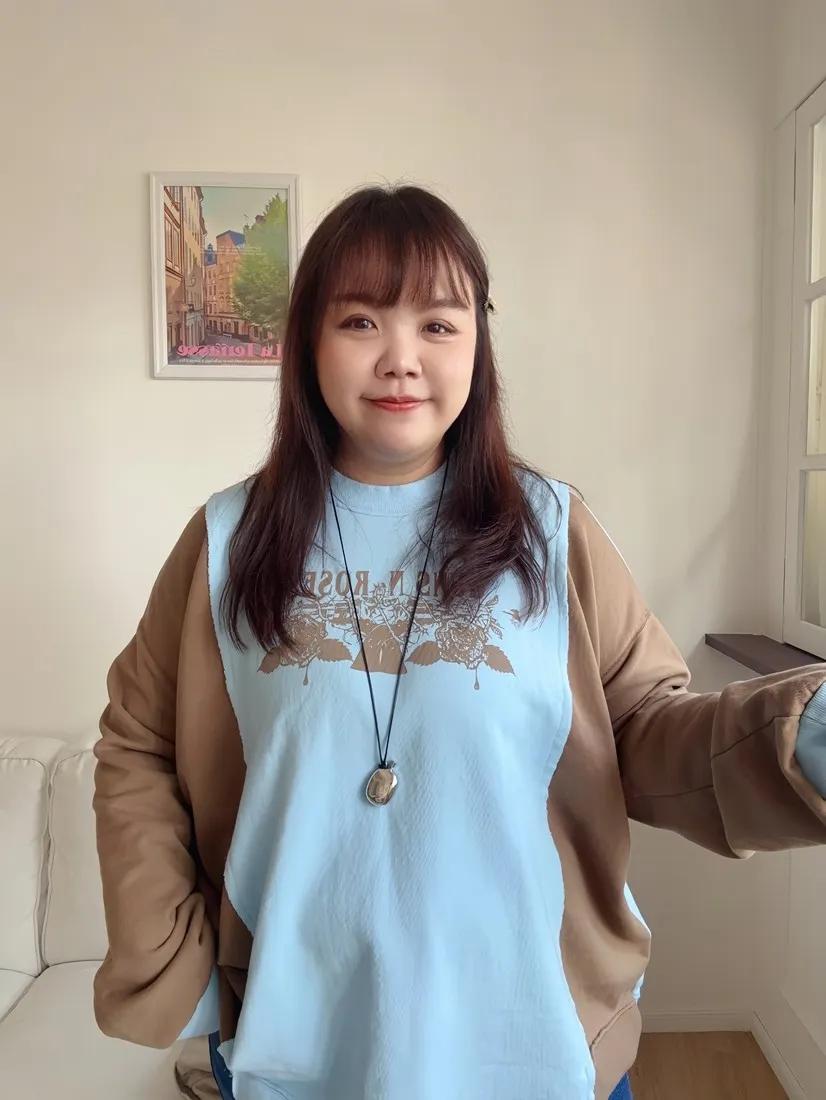 ✓ 寬鬆方形版型,拼接不同顏色,讓大大的衣服切割成小小塊,整體就不會被放大哦