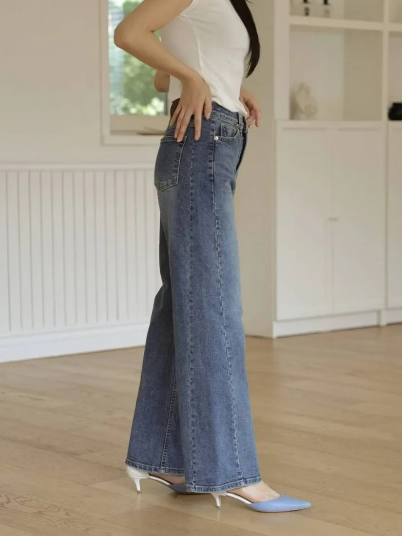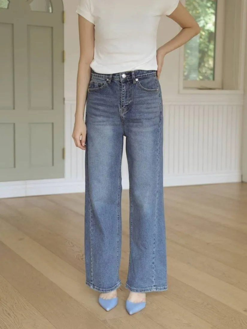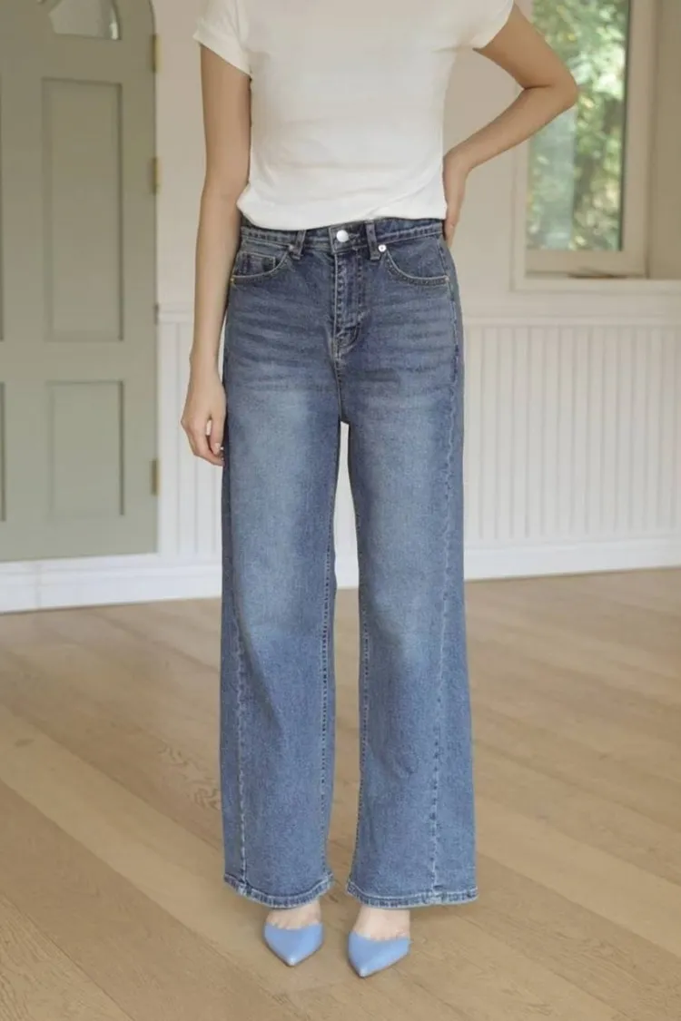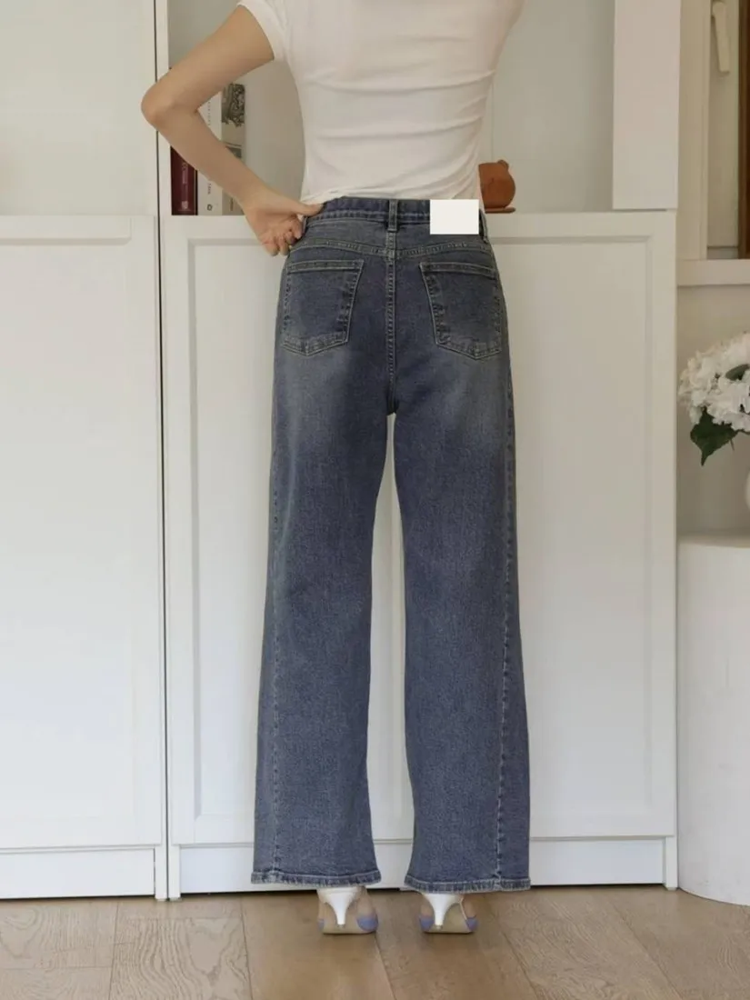 ✓ 直筒褲型,側邊往內車縫線,製造微喇叭褲型感,穿上更加有立體感