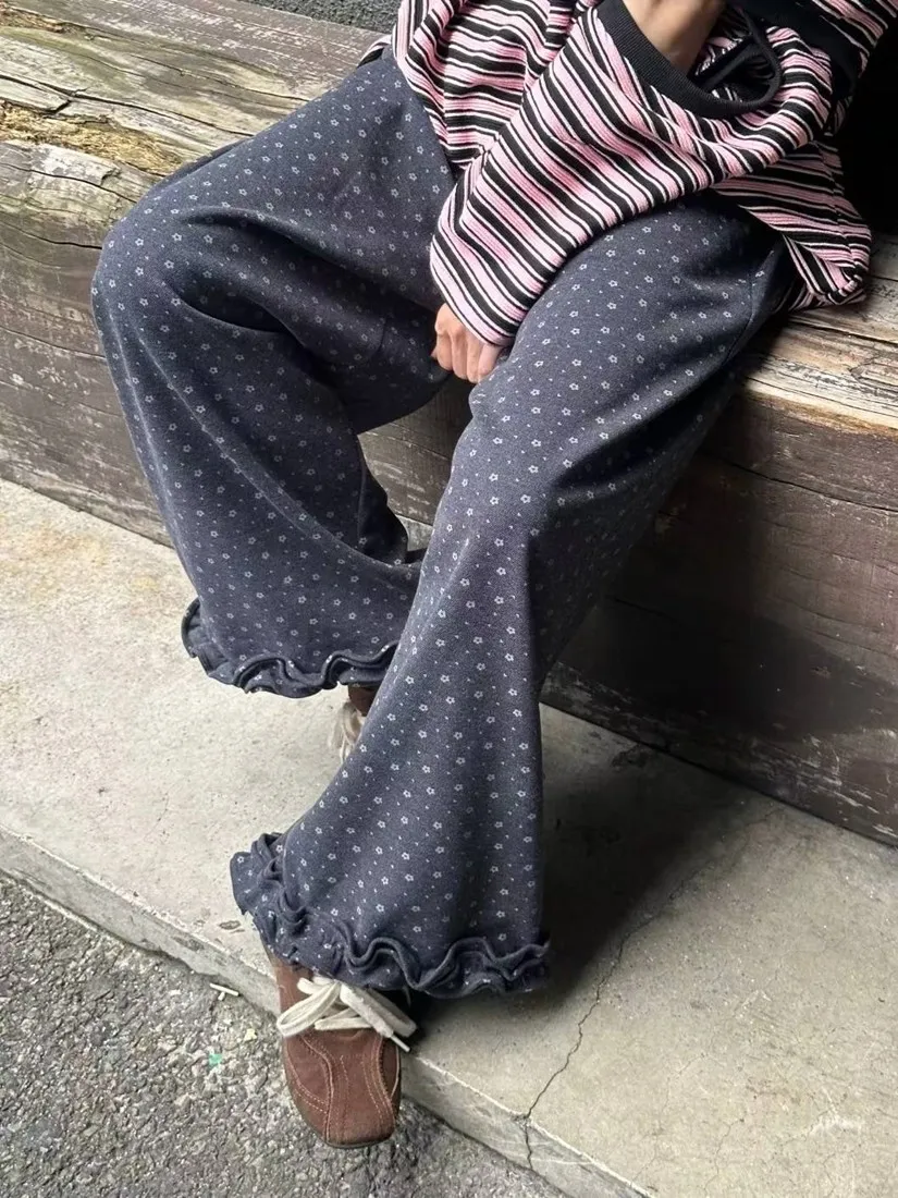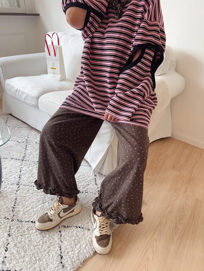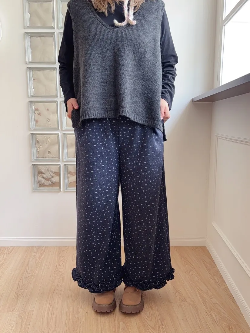 ✓ 滿版小花布料,褲管花邊設計,穿起來非常可愛