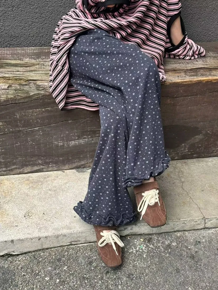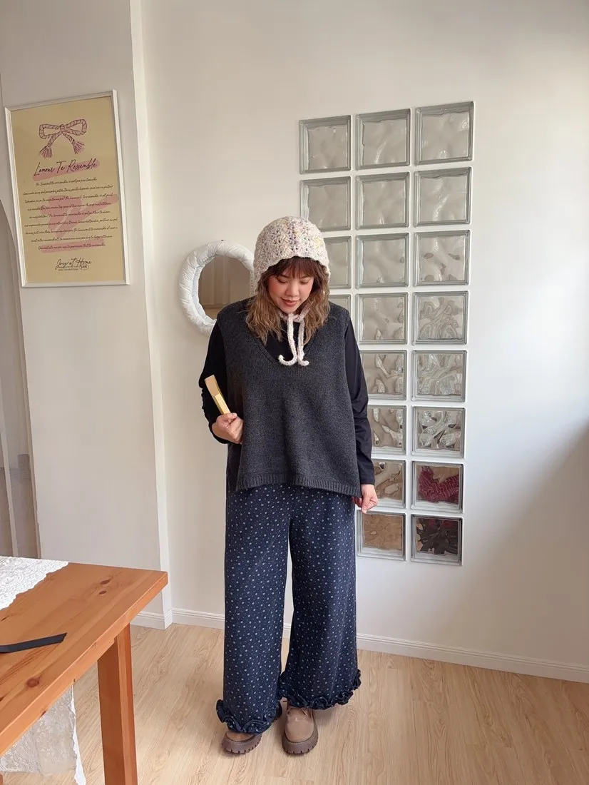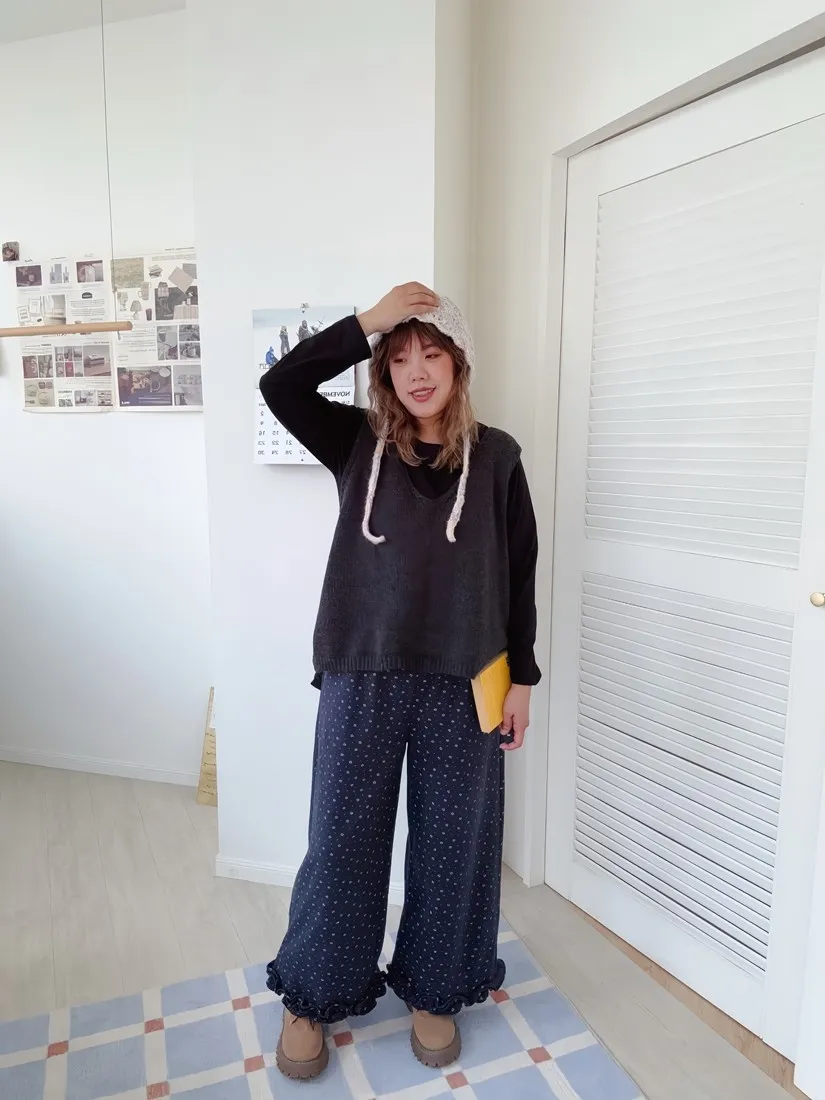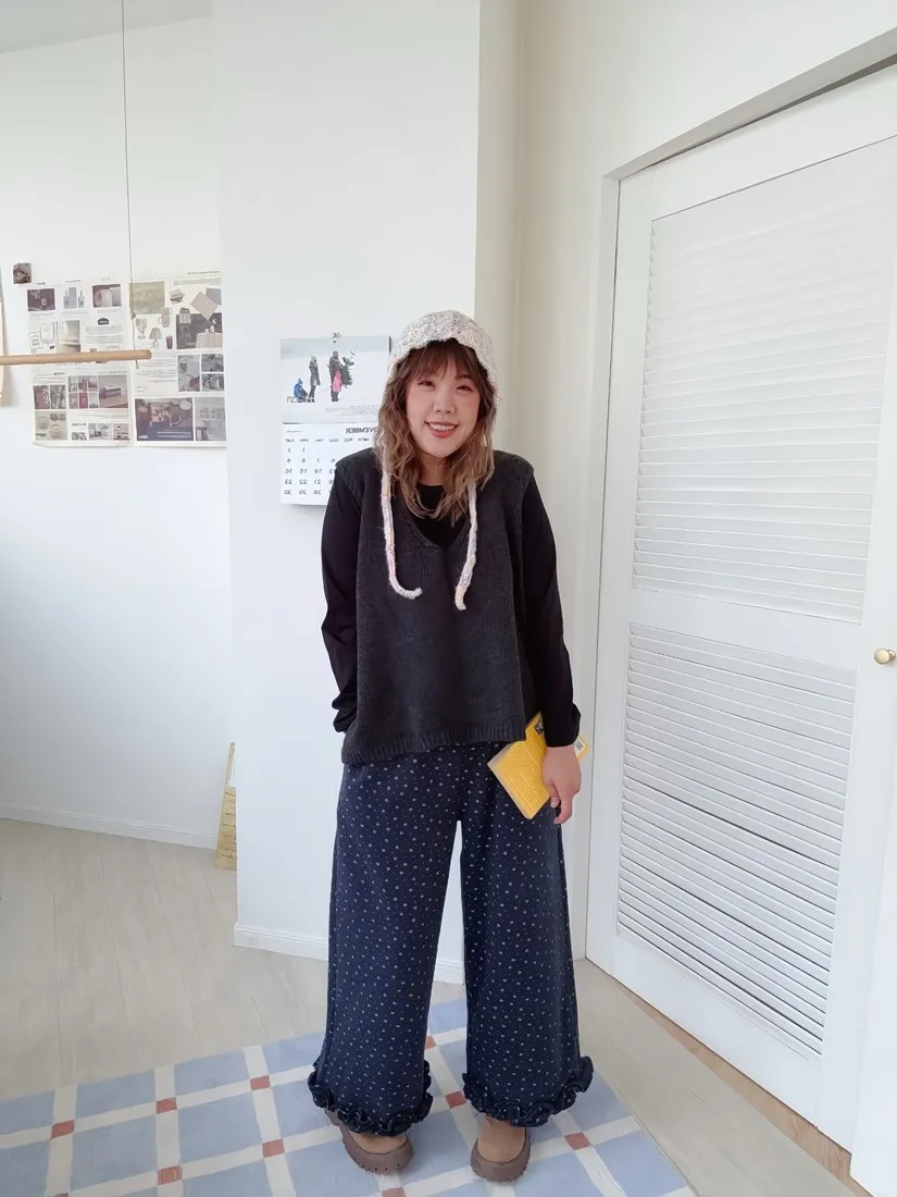 ✓ 滿版小花布料,褲管花邊設計,穿起來非常可愛