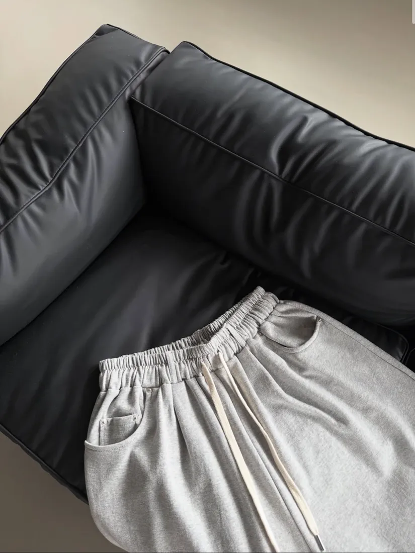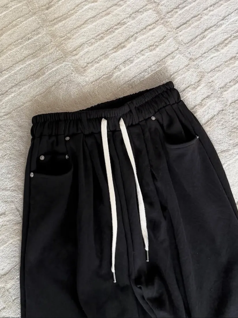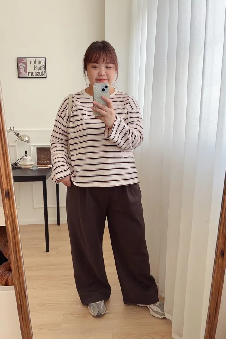 ✓ 直筒褲版型,腹部打褶設計,褲長偏長