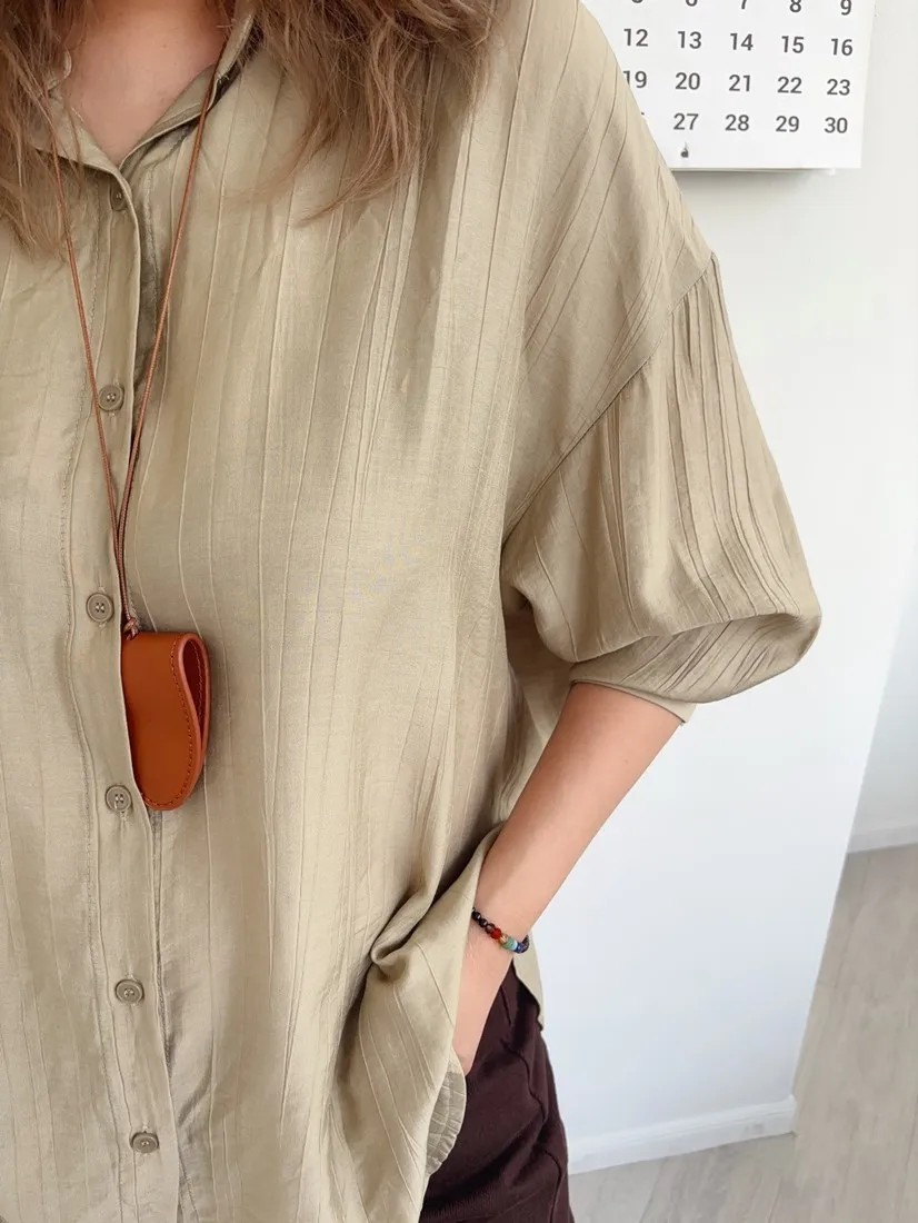 夏天熱賣款『2504058絲滑紋路襯衫』