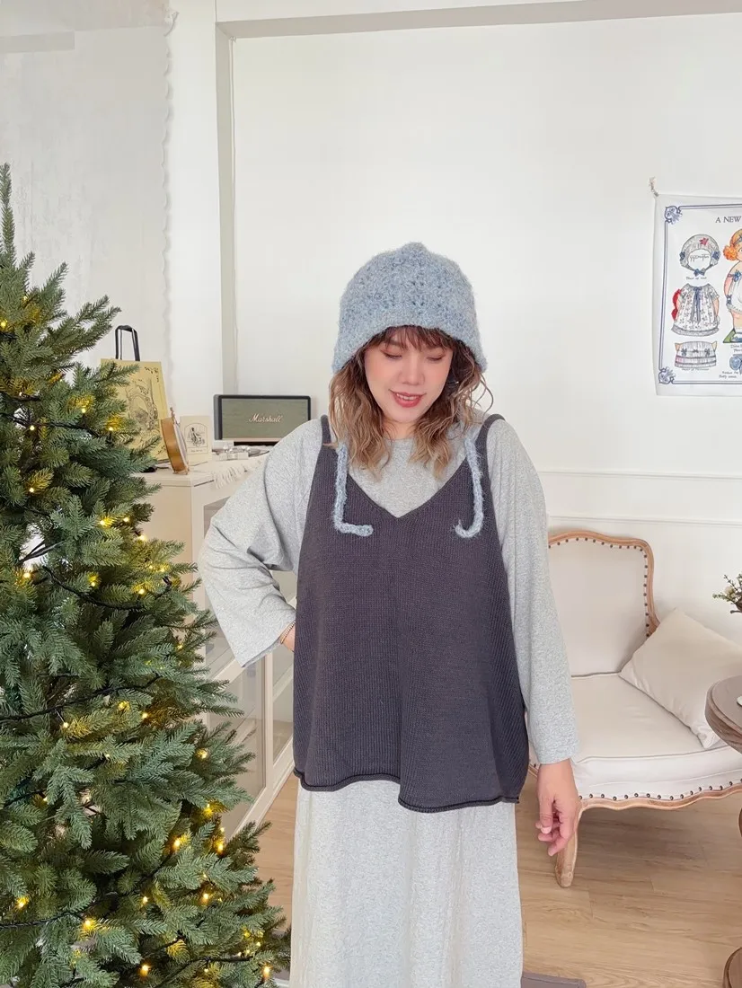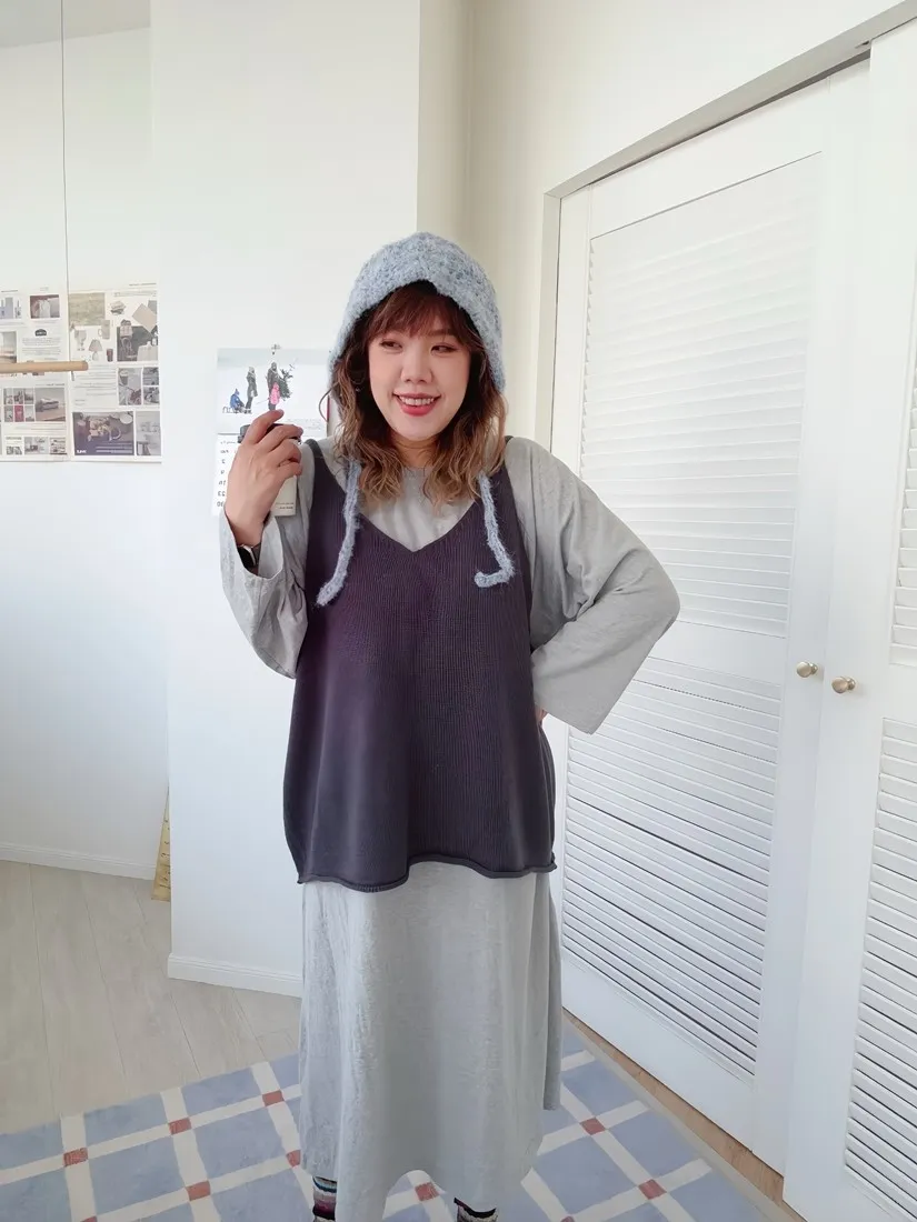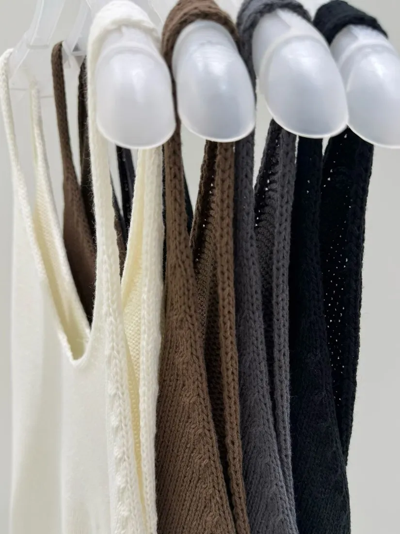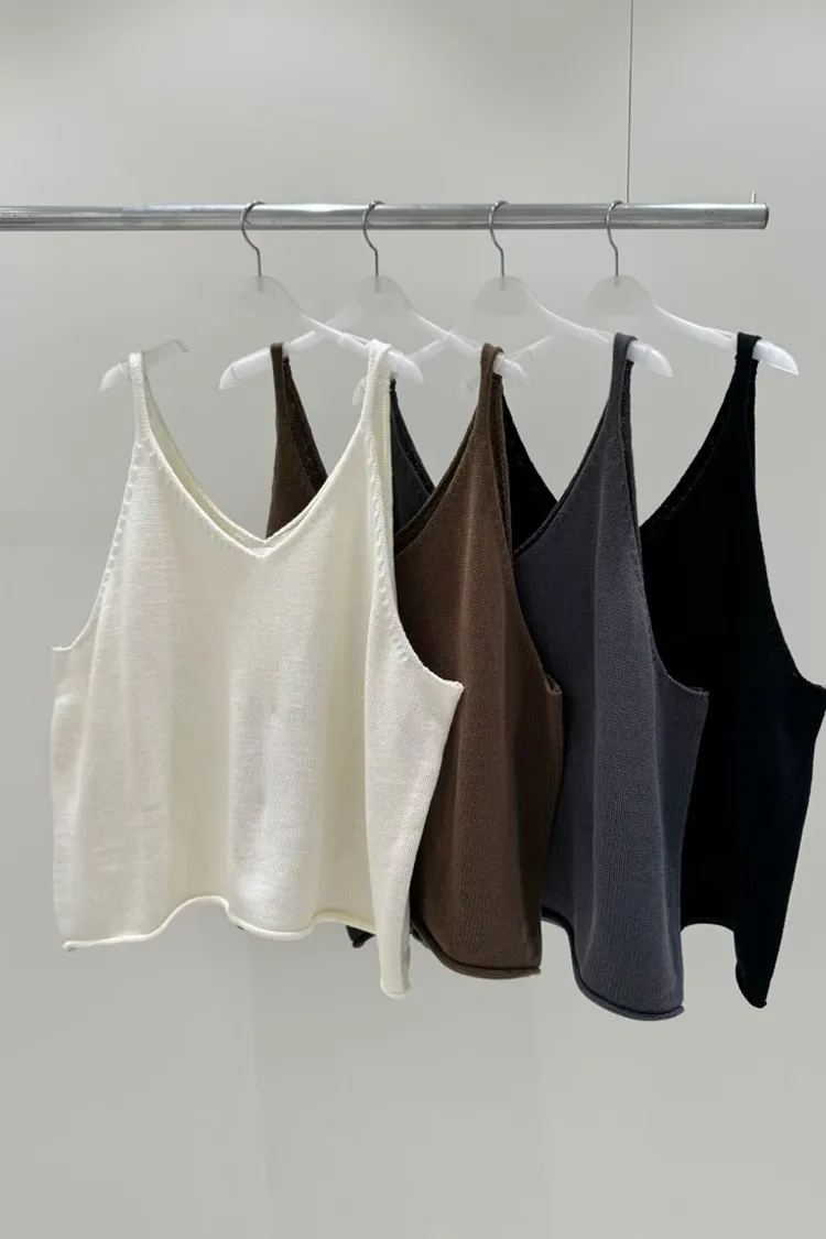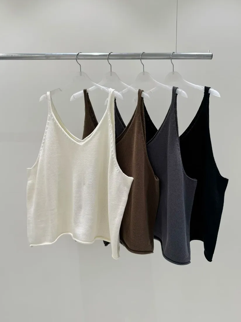 ✓ 細肩帶針織背心,下擺捲邊設計,更增添可愛感
