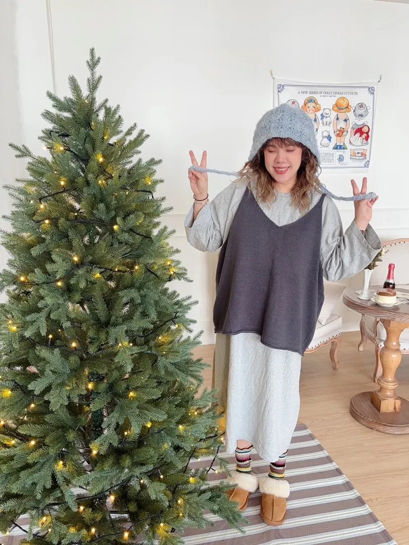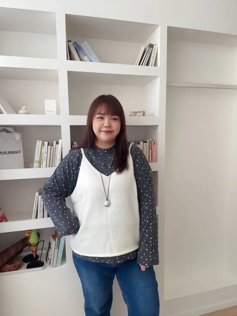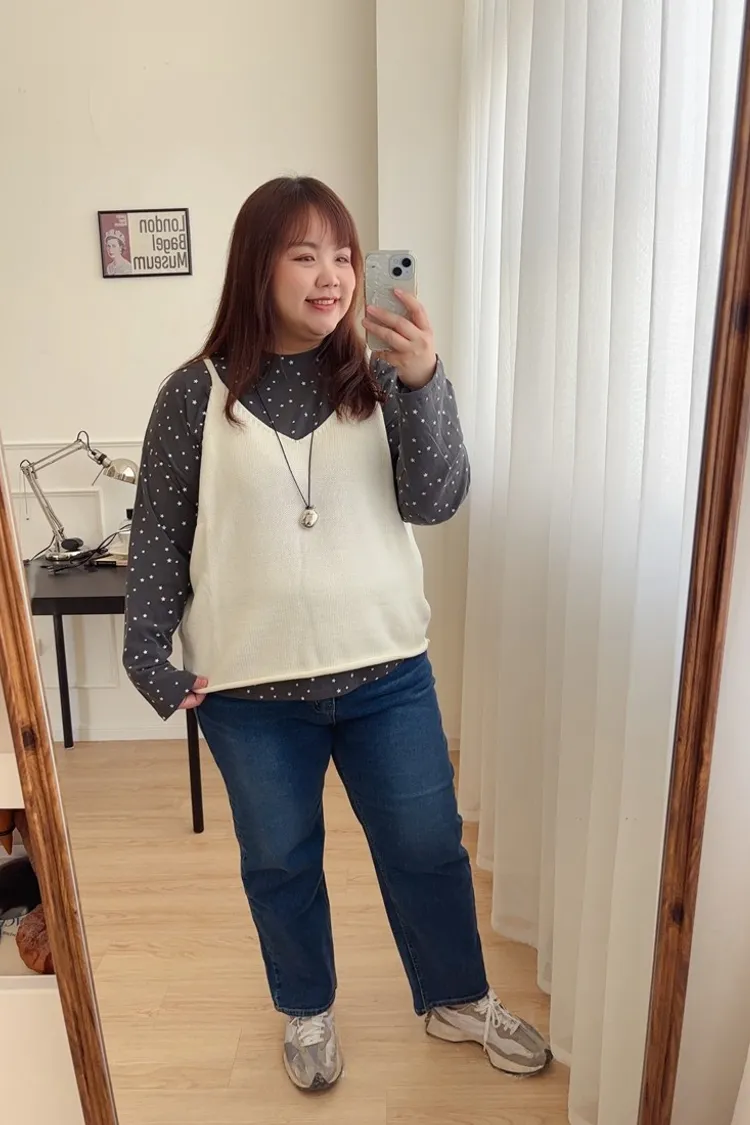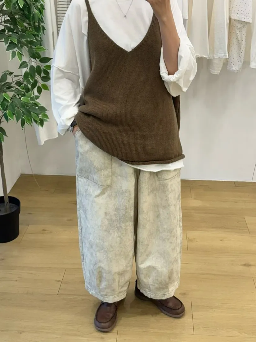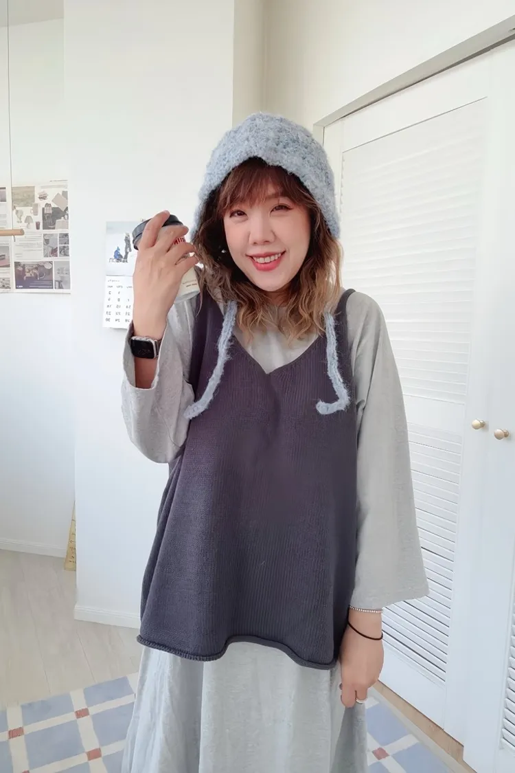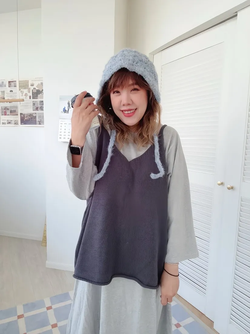 ✓ 細肩帶針織背心,下擺捲邊設計,更增添可愛感