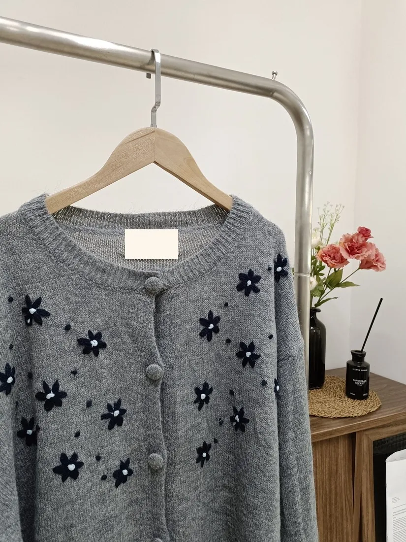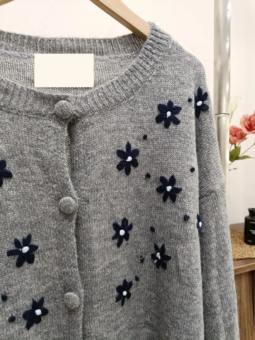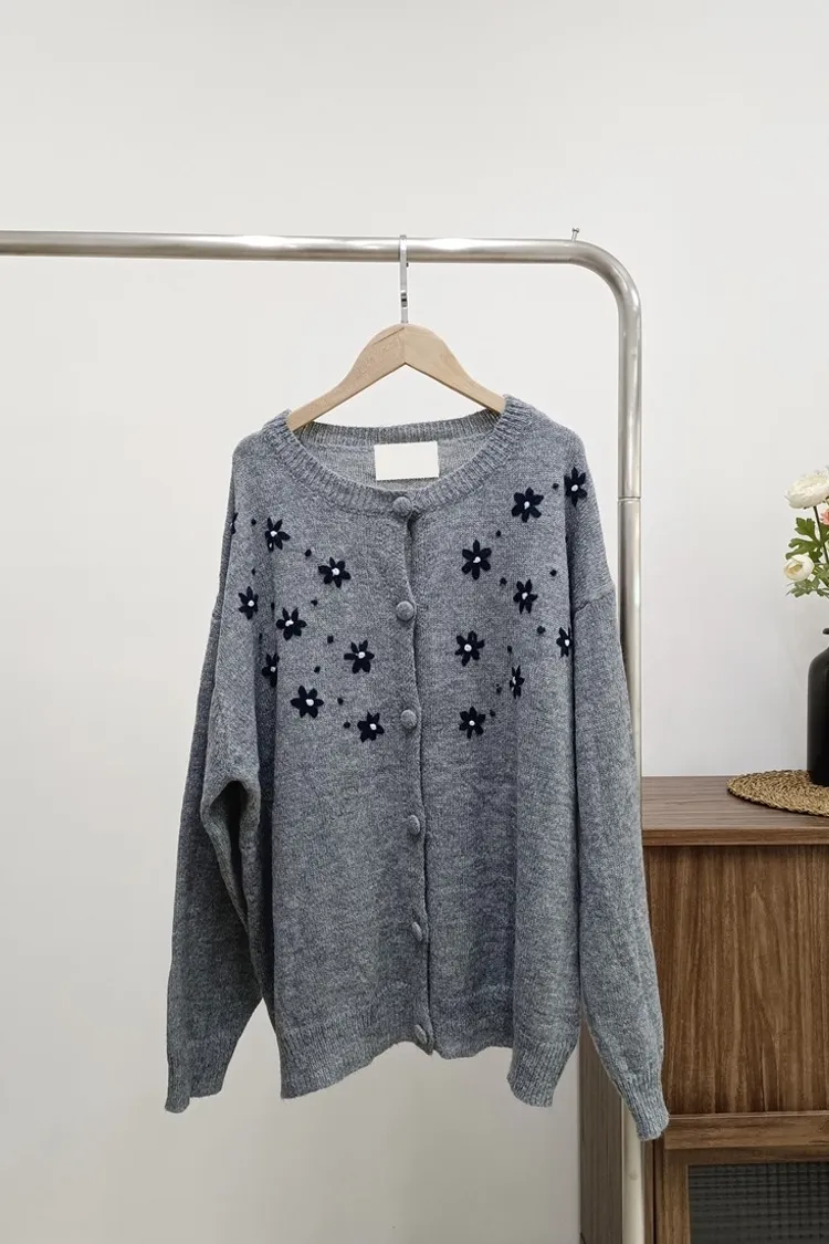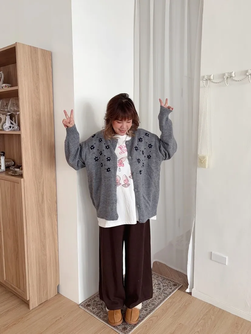 ✓ 可愛圓圓布釦,立體毛線小花綴飾