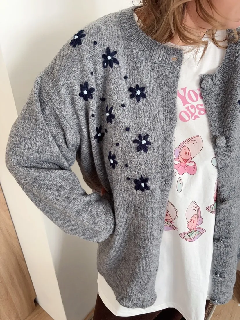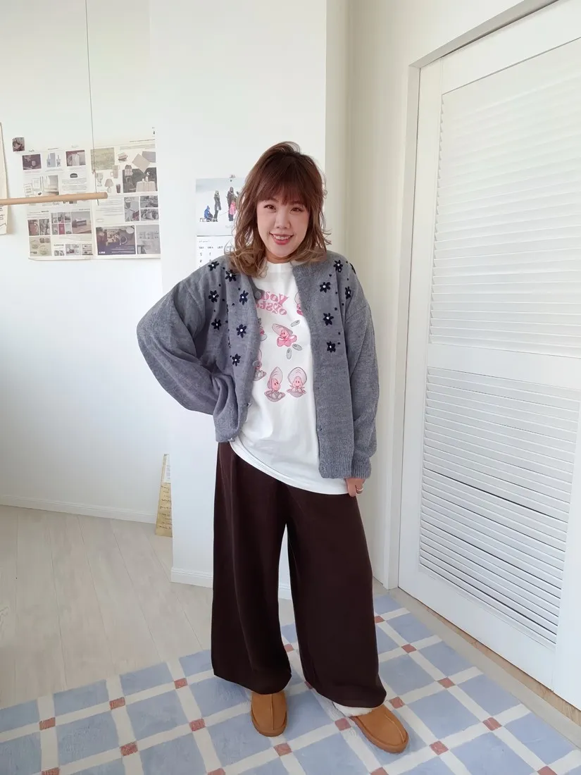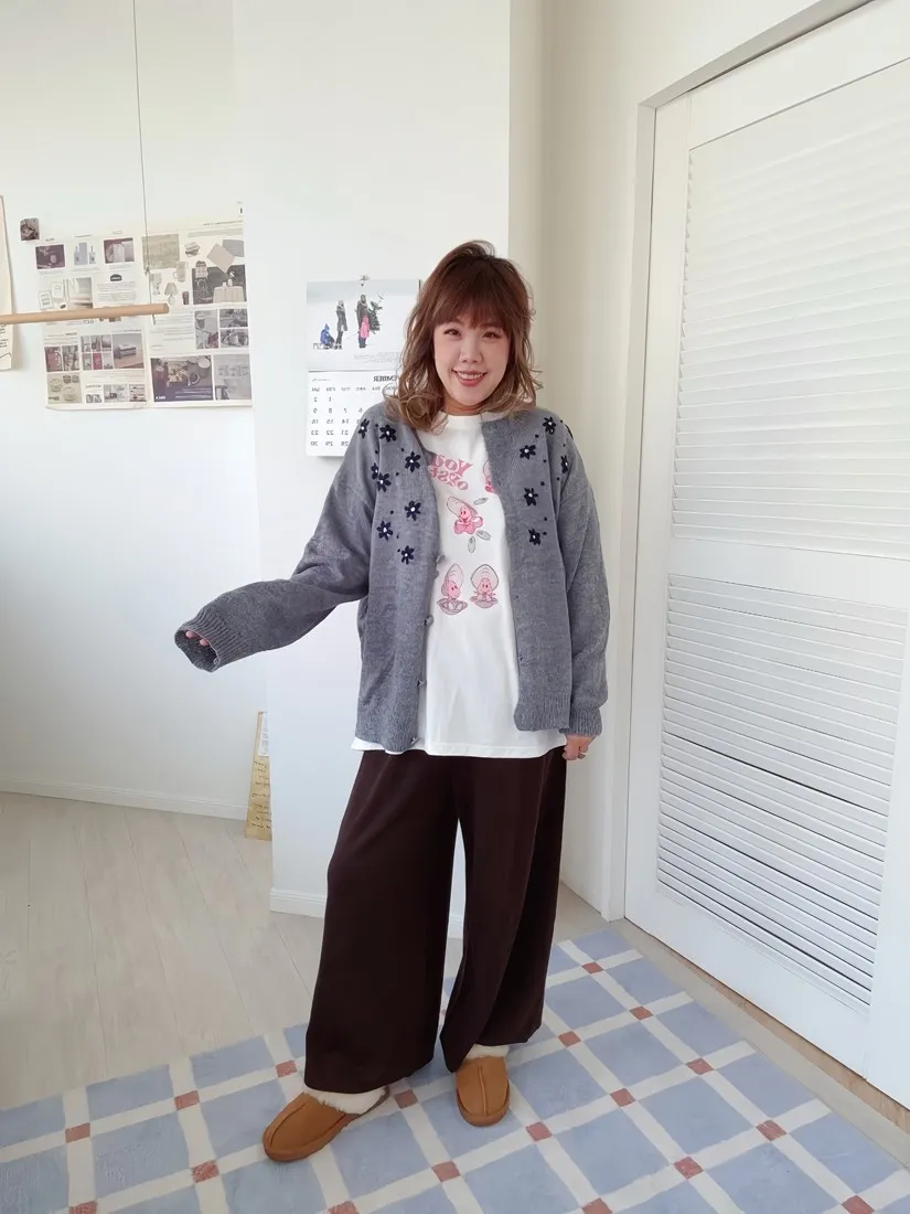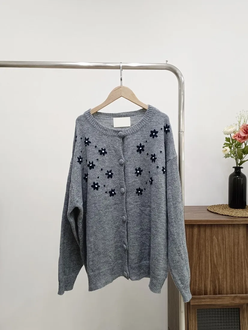 ✓ 可愛圓圓布釦,立體毛線小花綴飾