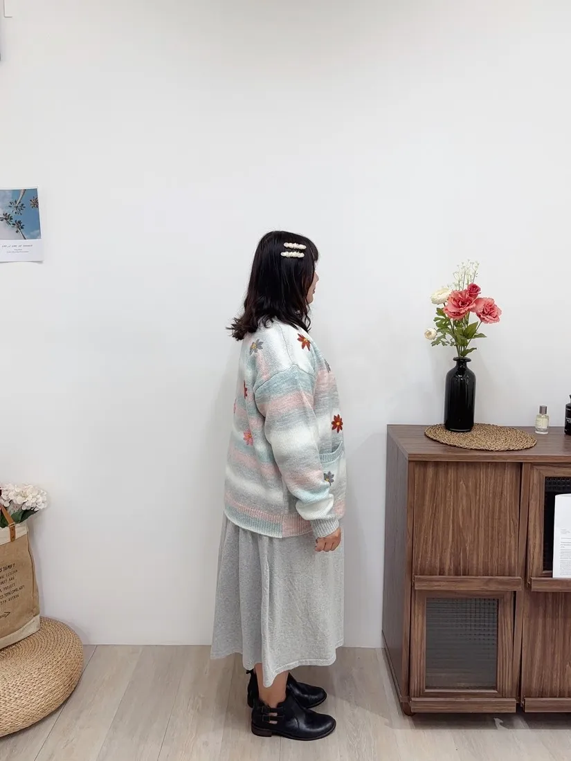 ✓ 漸層毛衣顏色,立體毛線小花綴飾