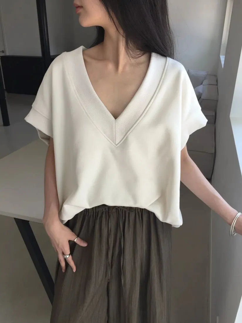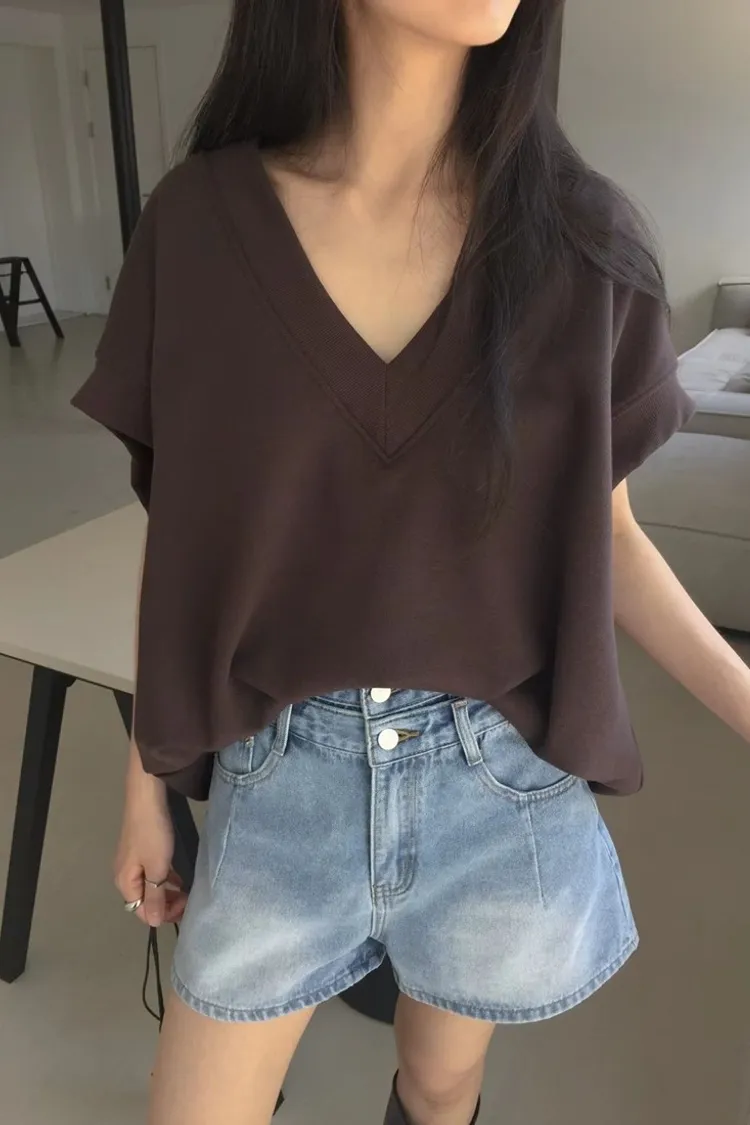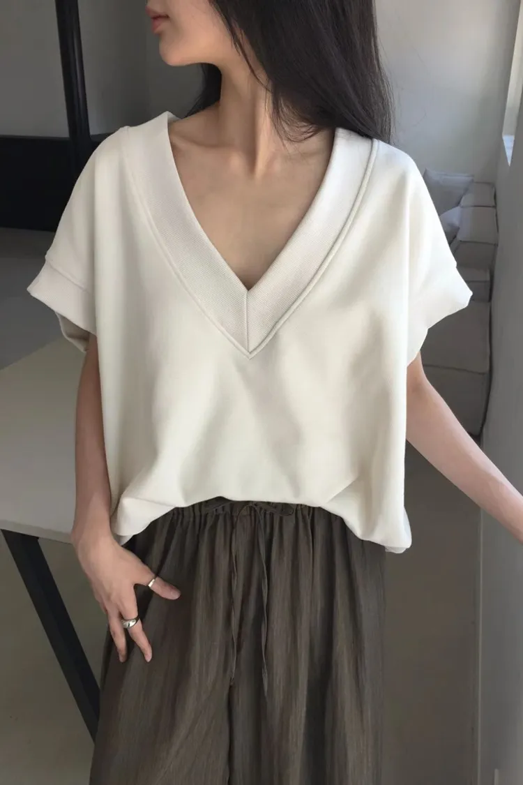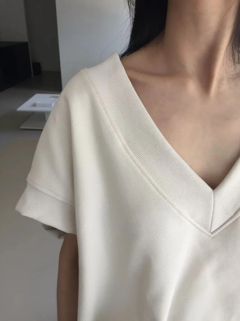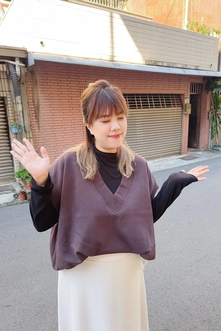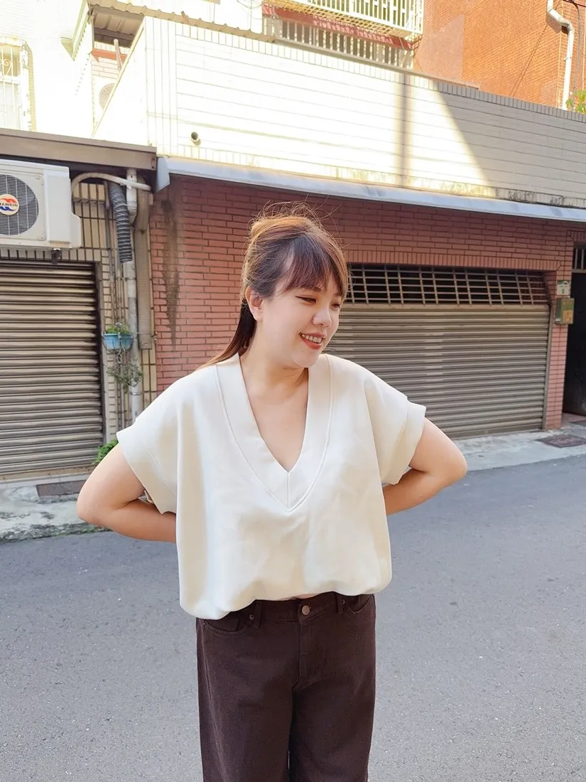 ✓ V字領口,衣長偏短