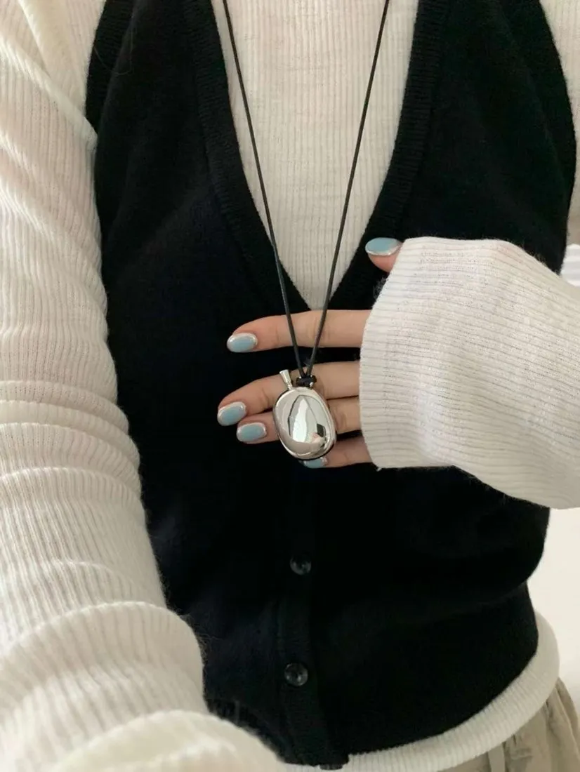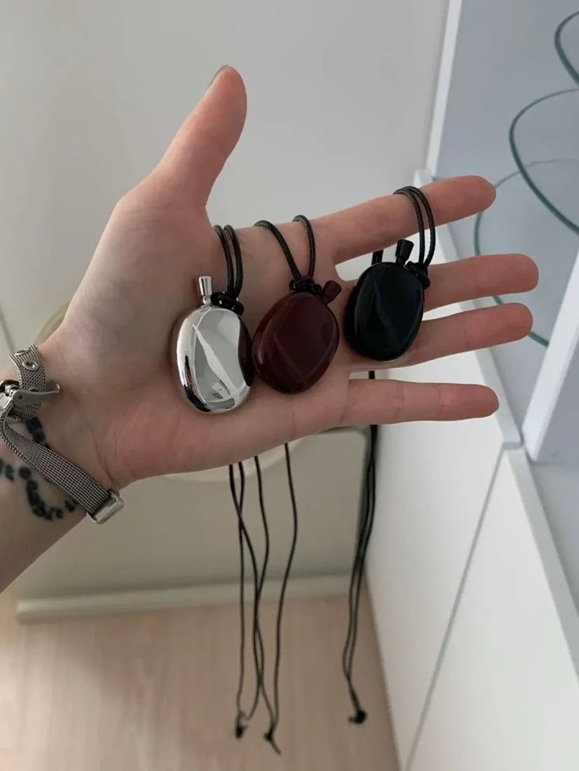 .個性香水瓶吊墜圖案,銀色百搭,酒紅、黑色個性感,秋冬搭配毛衣讓整體穿搭更加分哦!