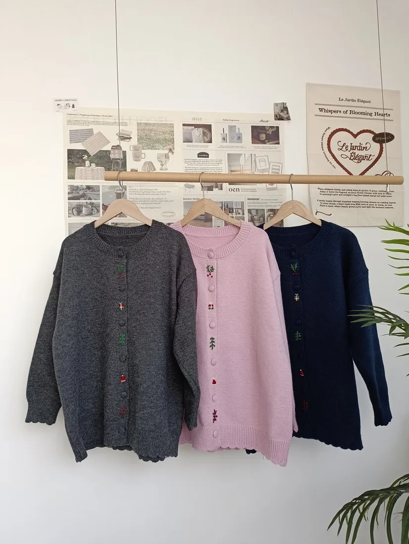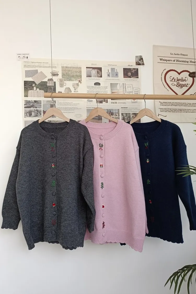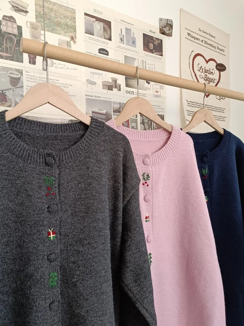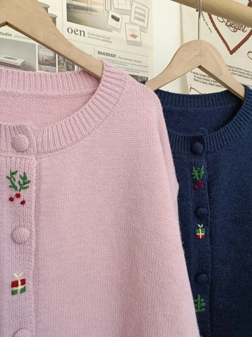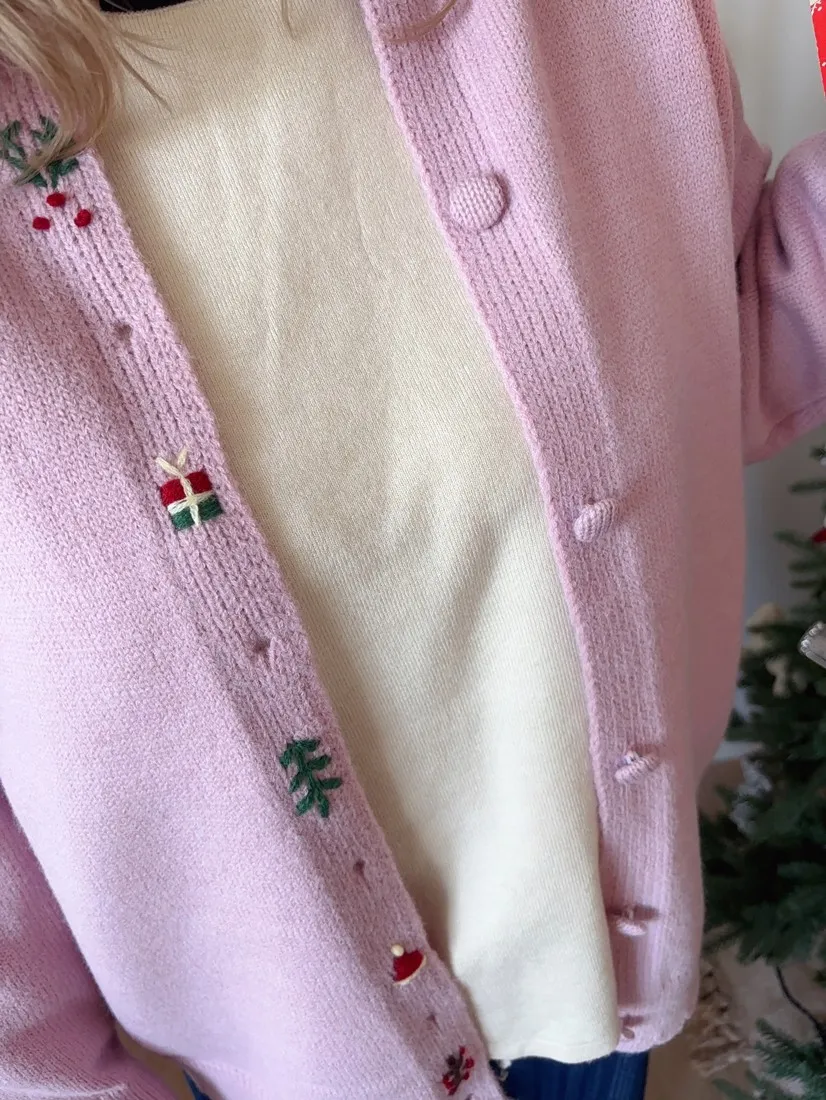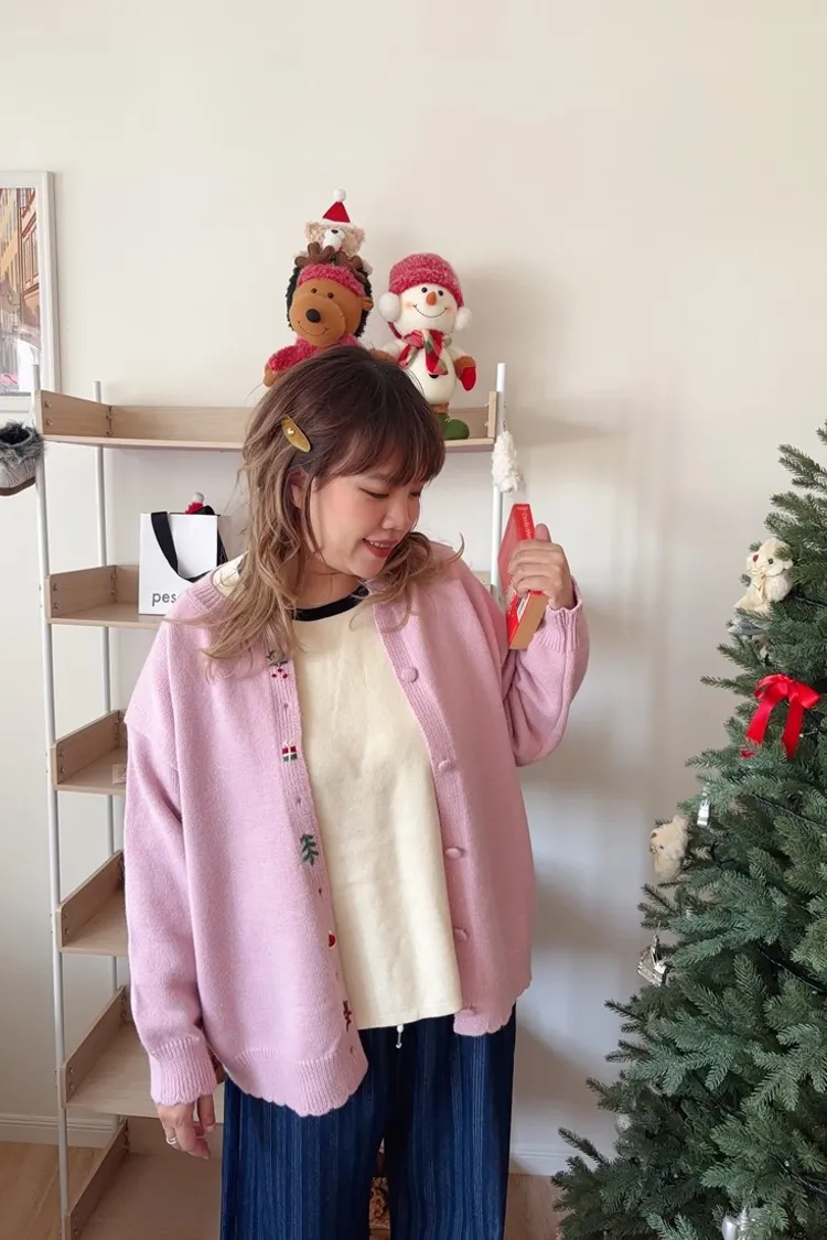 ✓ 釦子邊可愛聖誕圖案毛線裝飾