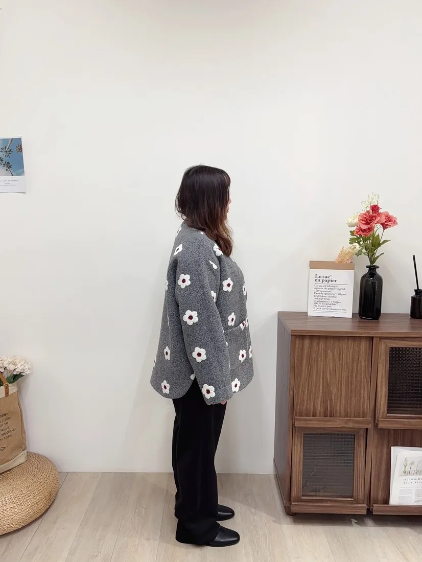 ✓ 表面毛料材質,毛線刺繡小白花圖案,超級可愛;內裡還有再車縫一層麂皮材質,非常有質感