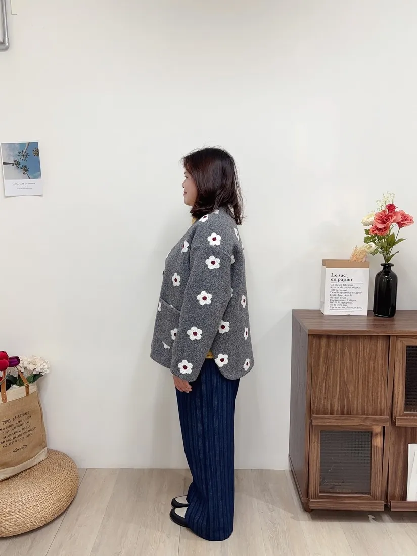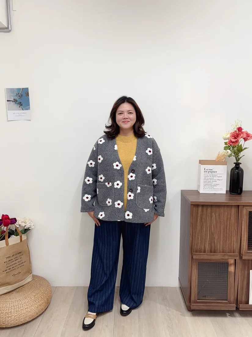 最亮眼的就是滿滿小白花毛線刺繡