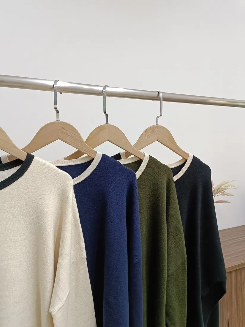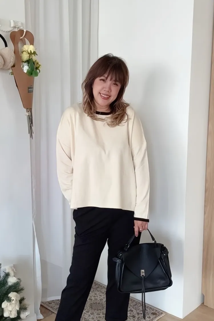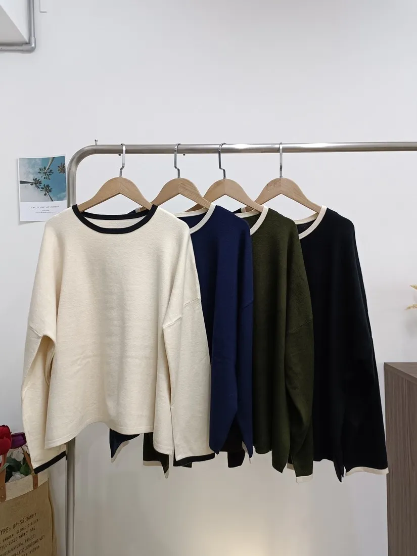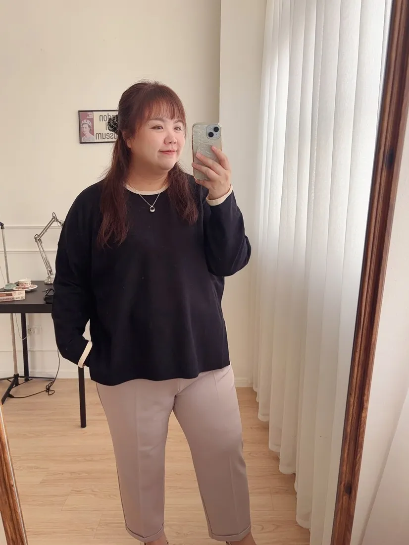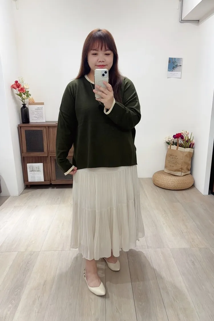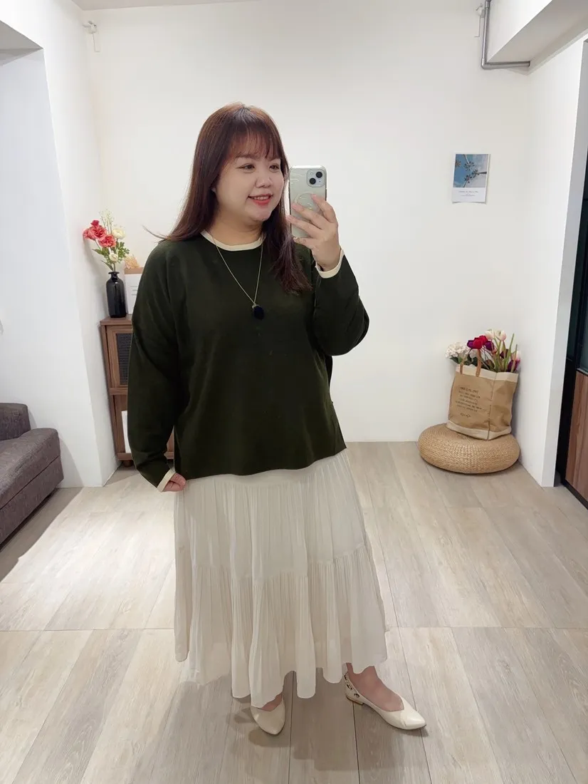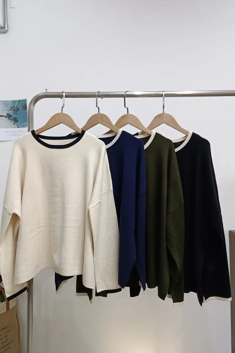 簡單又舒服的針織上衣,加上滾邊設計,增加整件針織的明亮感