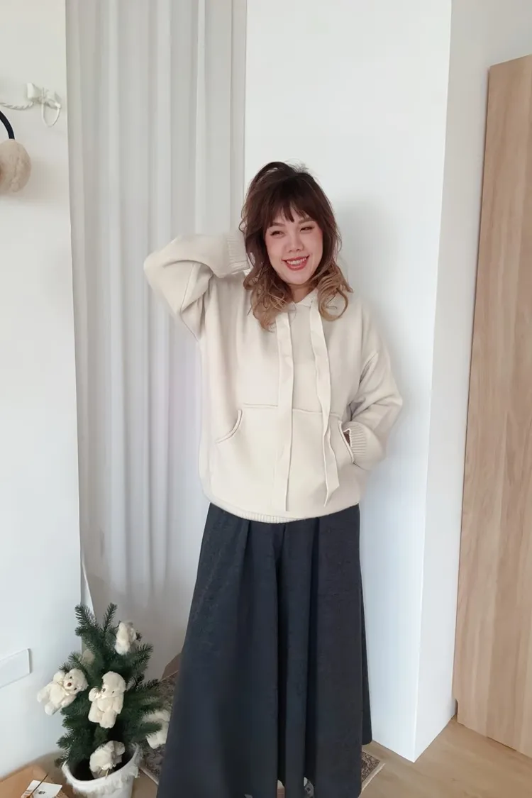 ✓ 連帽設計,帽沿的繩子比較長,可以放下來或是繫個蝴蝶結哦